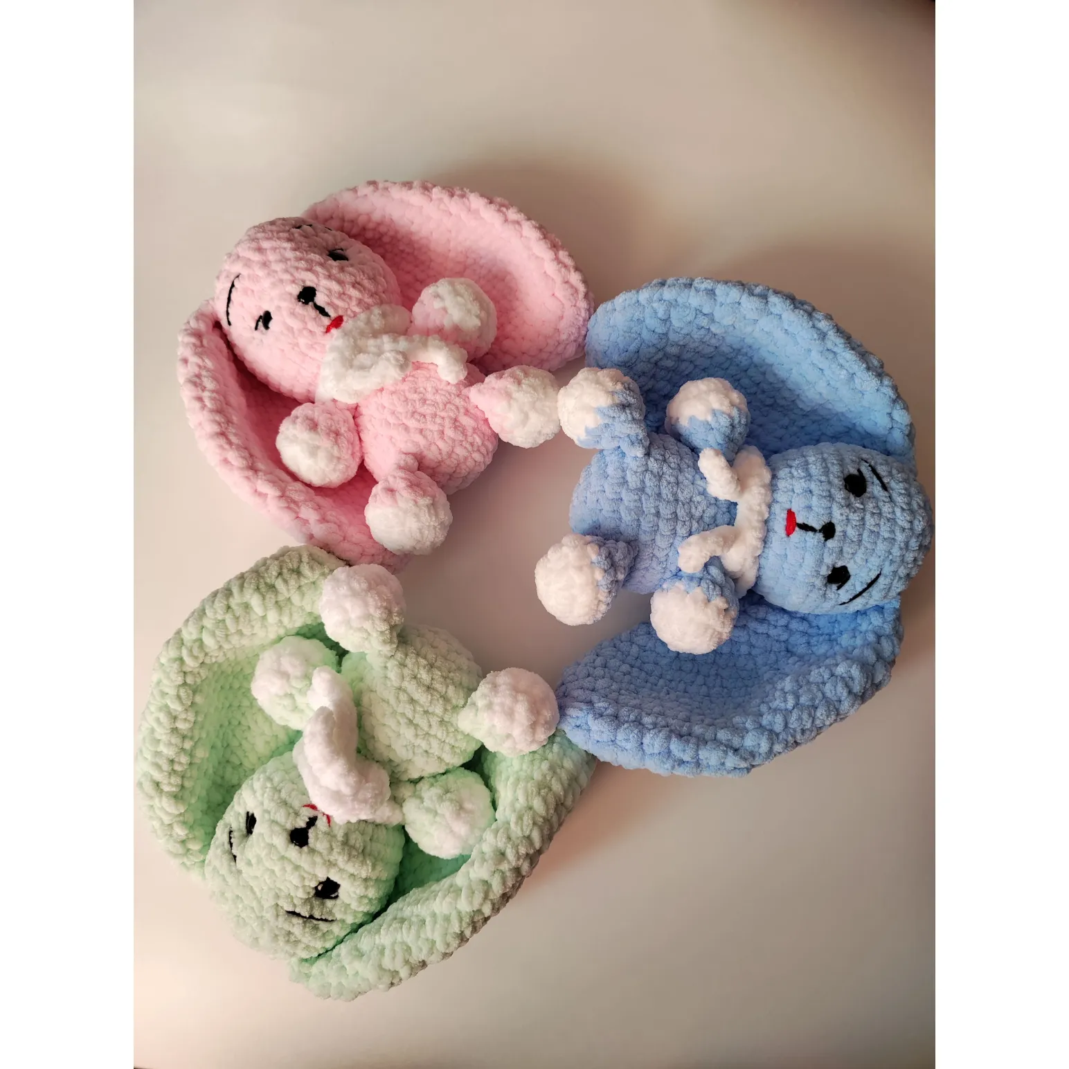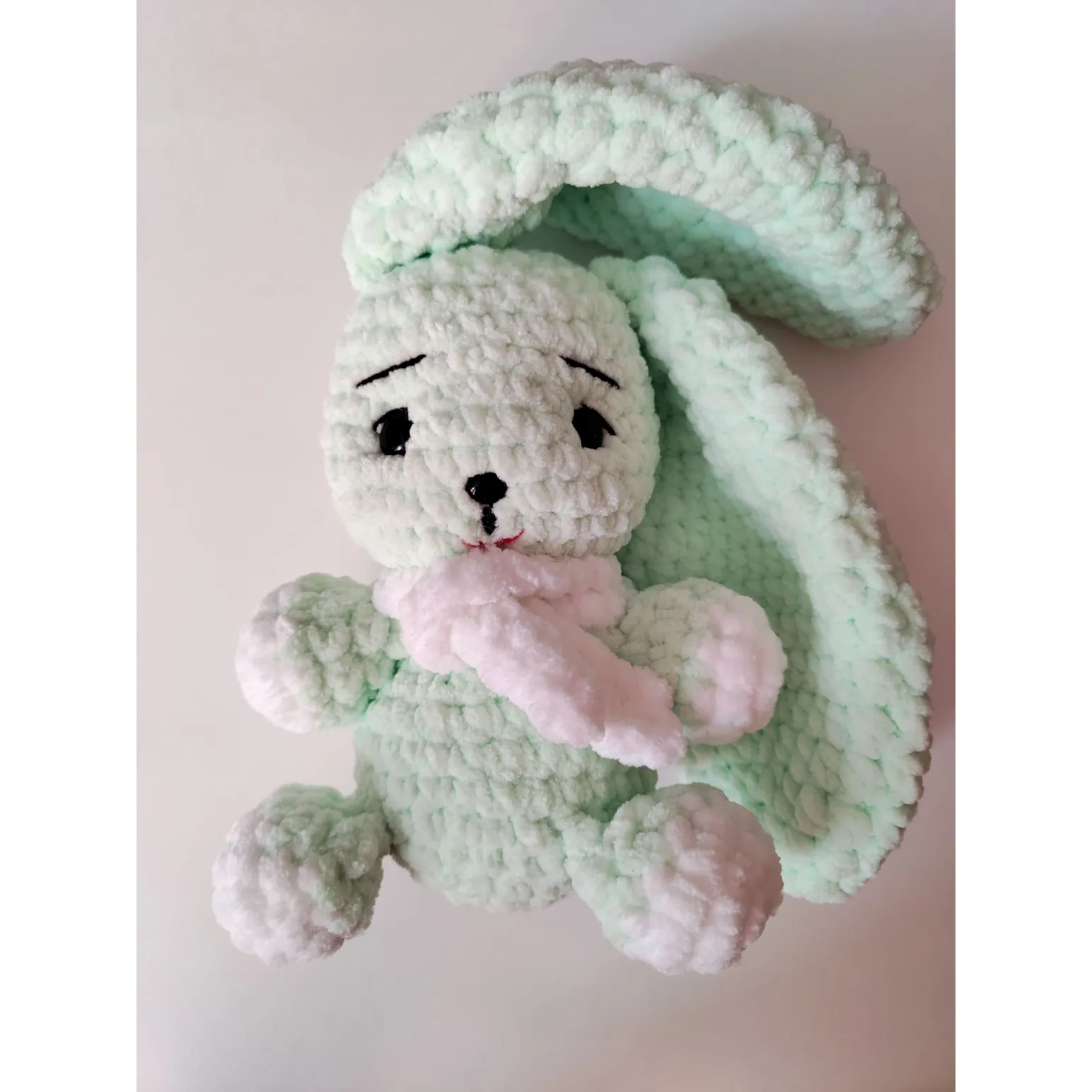 Невероятно нежный, мягкий зайка, связанный из гипоаллергенной пряжи, приятно тактильный, наполнен синтепухом, глазки и носик на безопасном креплении.