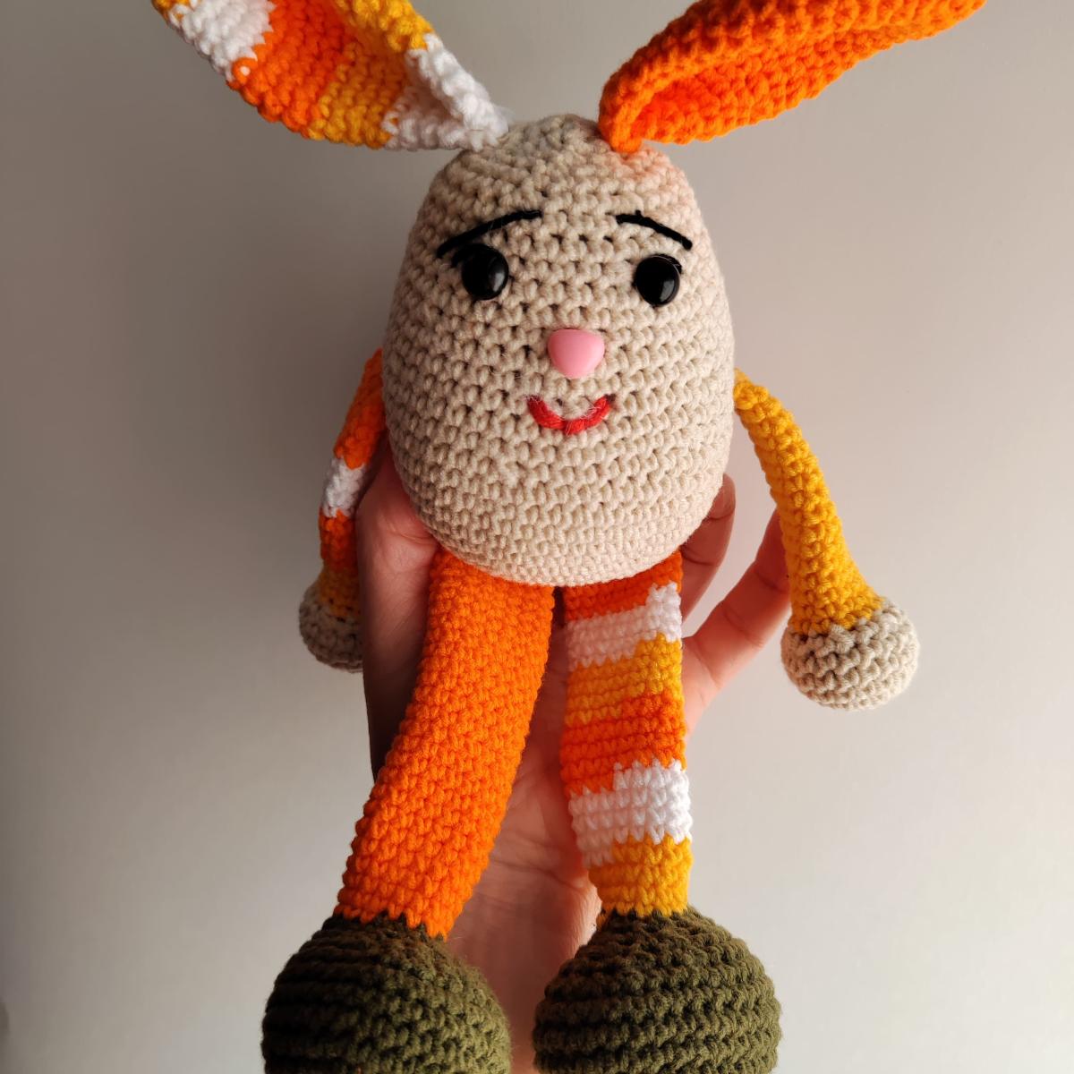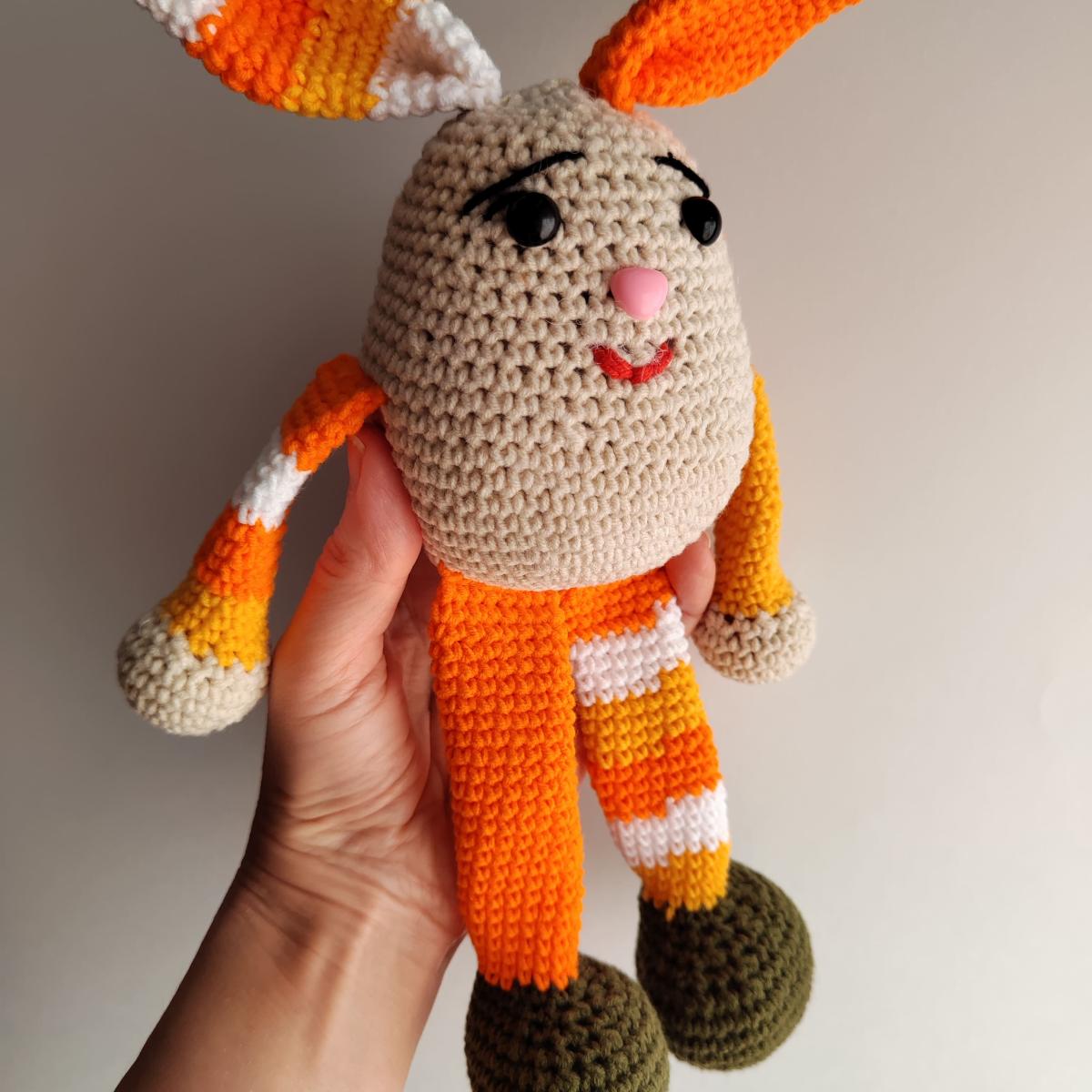 Разноцветный зайка выполнен из пряжи YarnArt Jeans(Турция) хлопок, акрил. Пряжа гипоаллергенная, не колется,приятная на ощупь,не выцветает.Игрушка наполнена холофайбером, глазки и носик на безопасном креплении. Яркий зайка будет любимой игрушкой Вашего ребенка.Игрушка лёгкая, можно брать с собой на прогулку, в садик, не займет много места в кроватке Вашего ребенка.