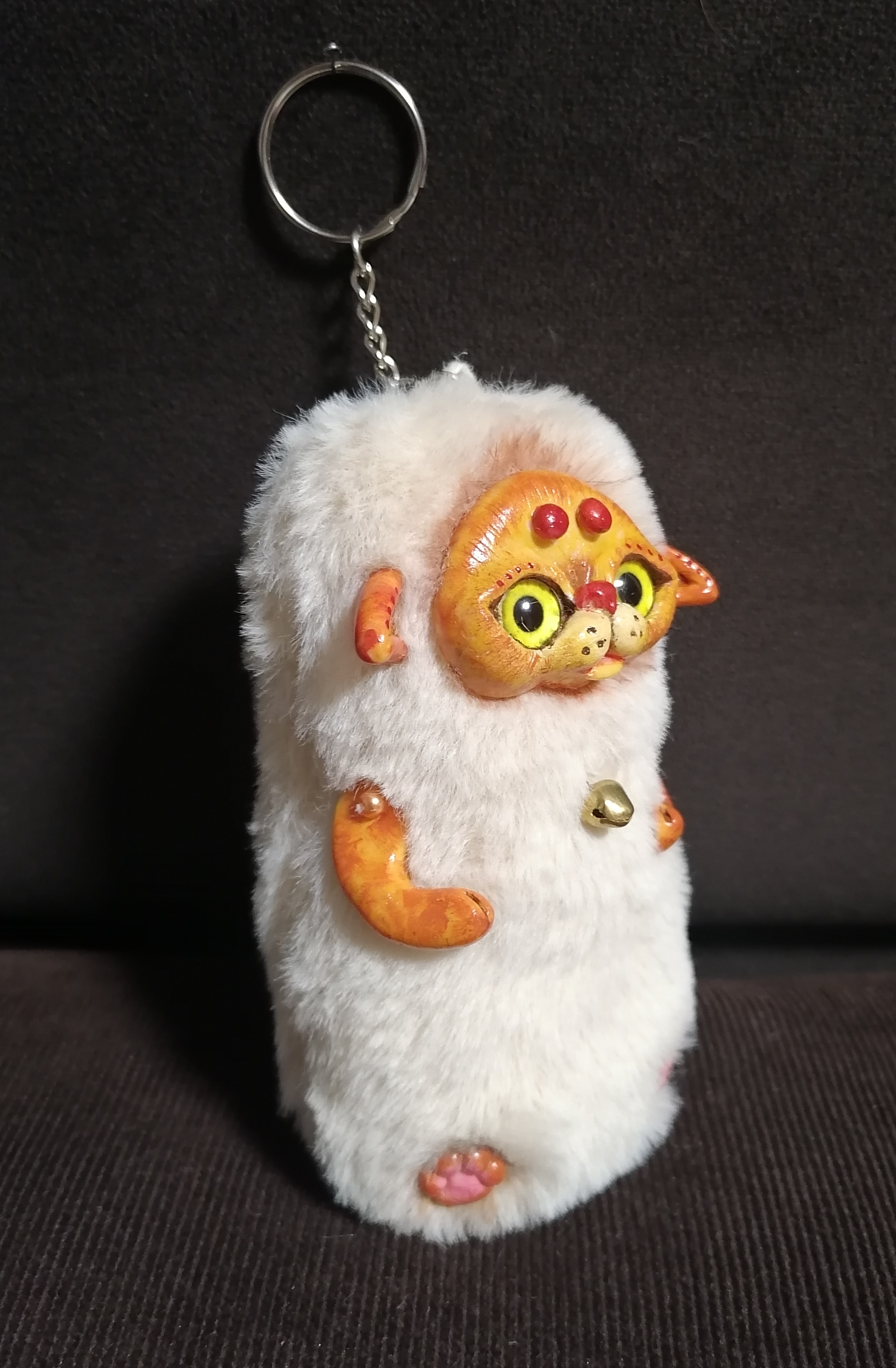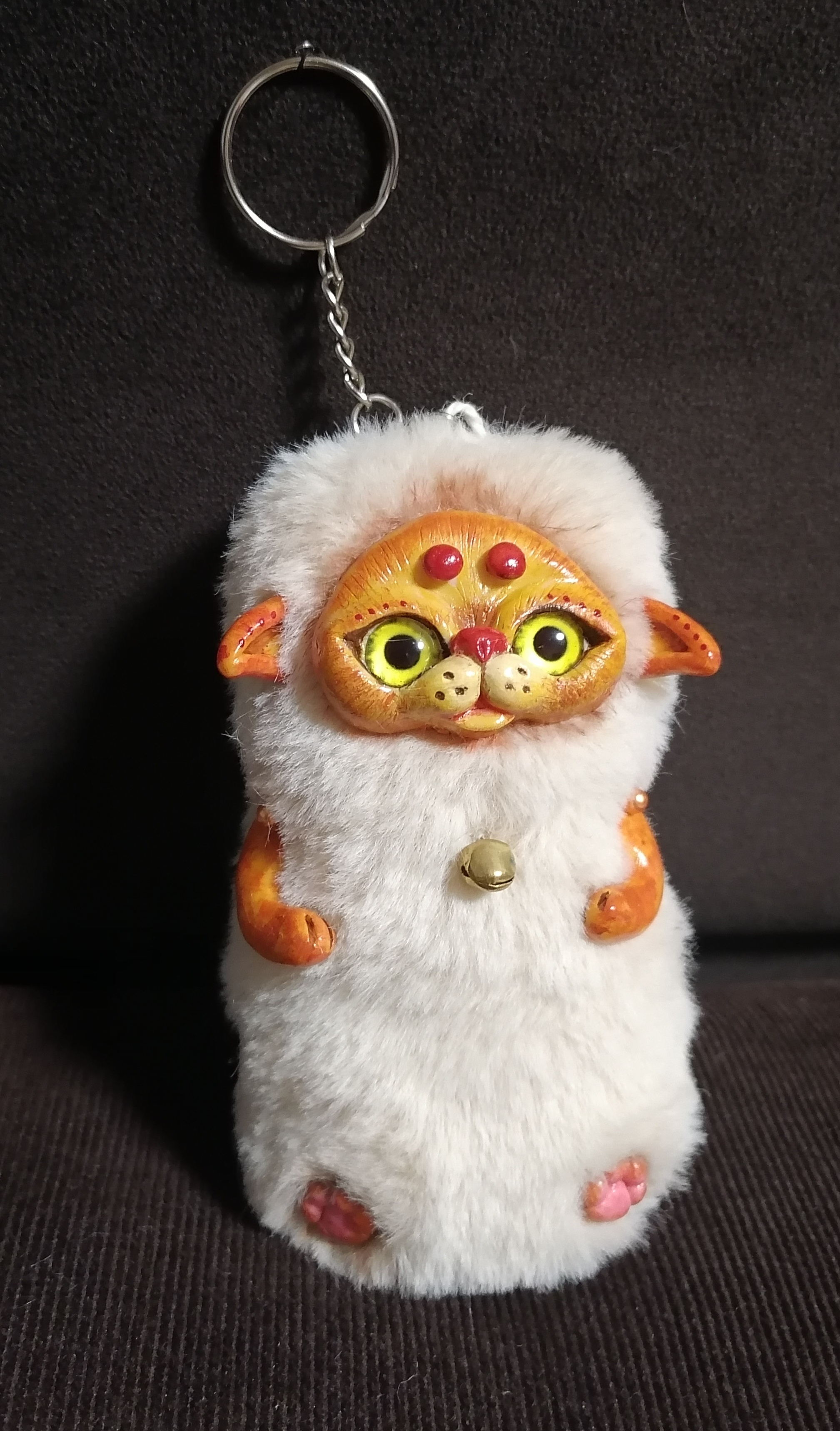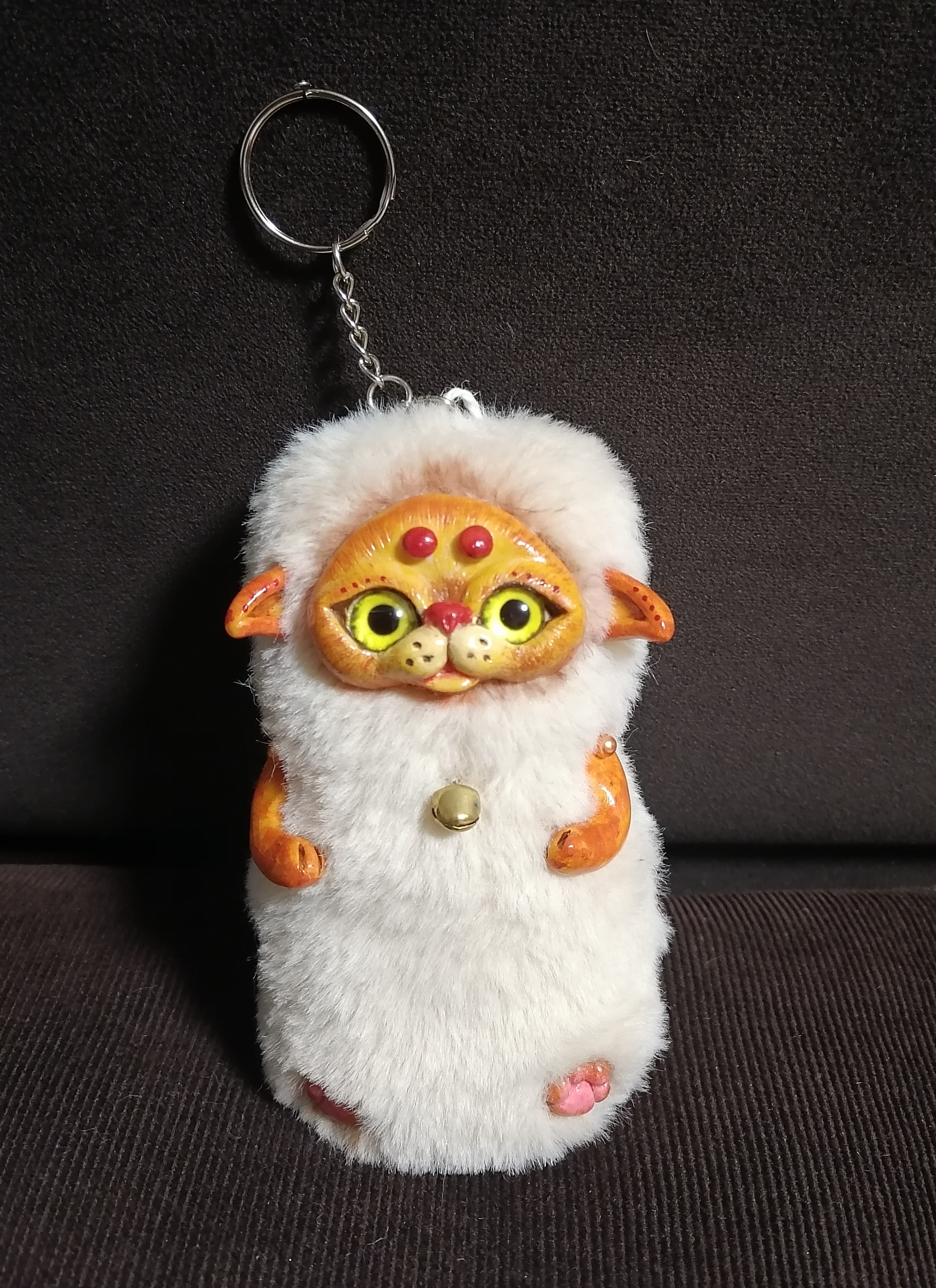 Игрушка из меха и полимерной глины. Можно использовать как брелок или интерьерную игрушку (цепочка съемная). Размер около 14 см.