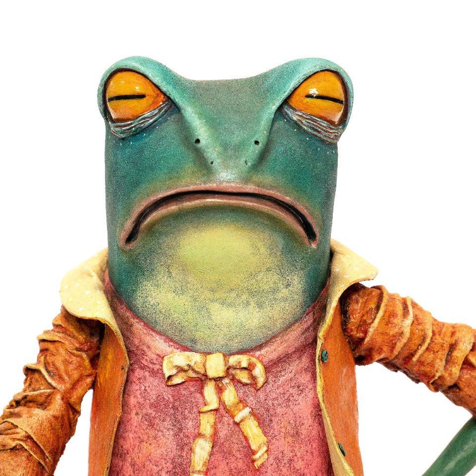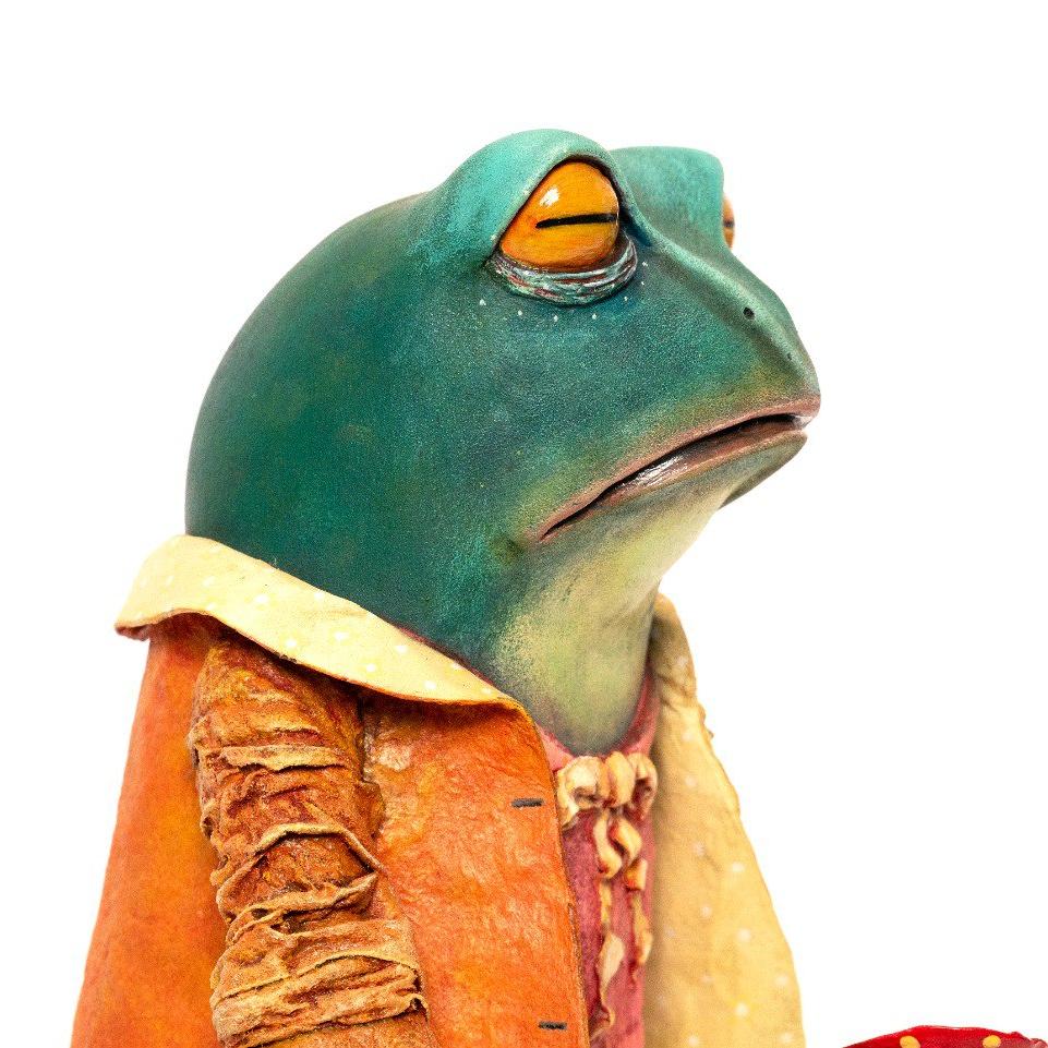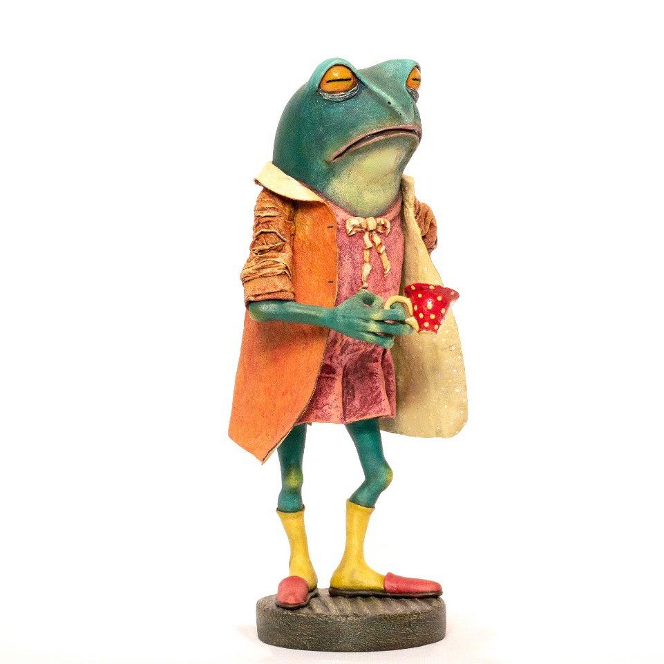 Материалы: папье-маше, полимерная глина La Doll, акриловые краски, акварель, сухая пастель, арматура, сосна. Размер: 43 см.