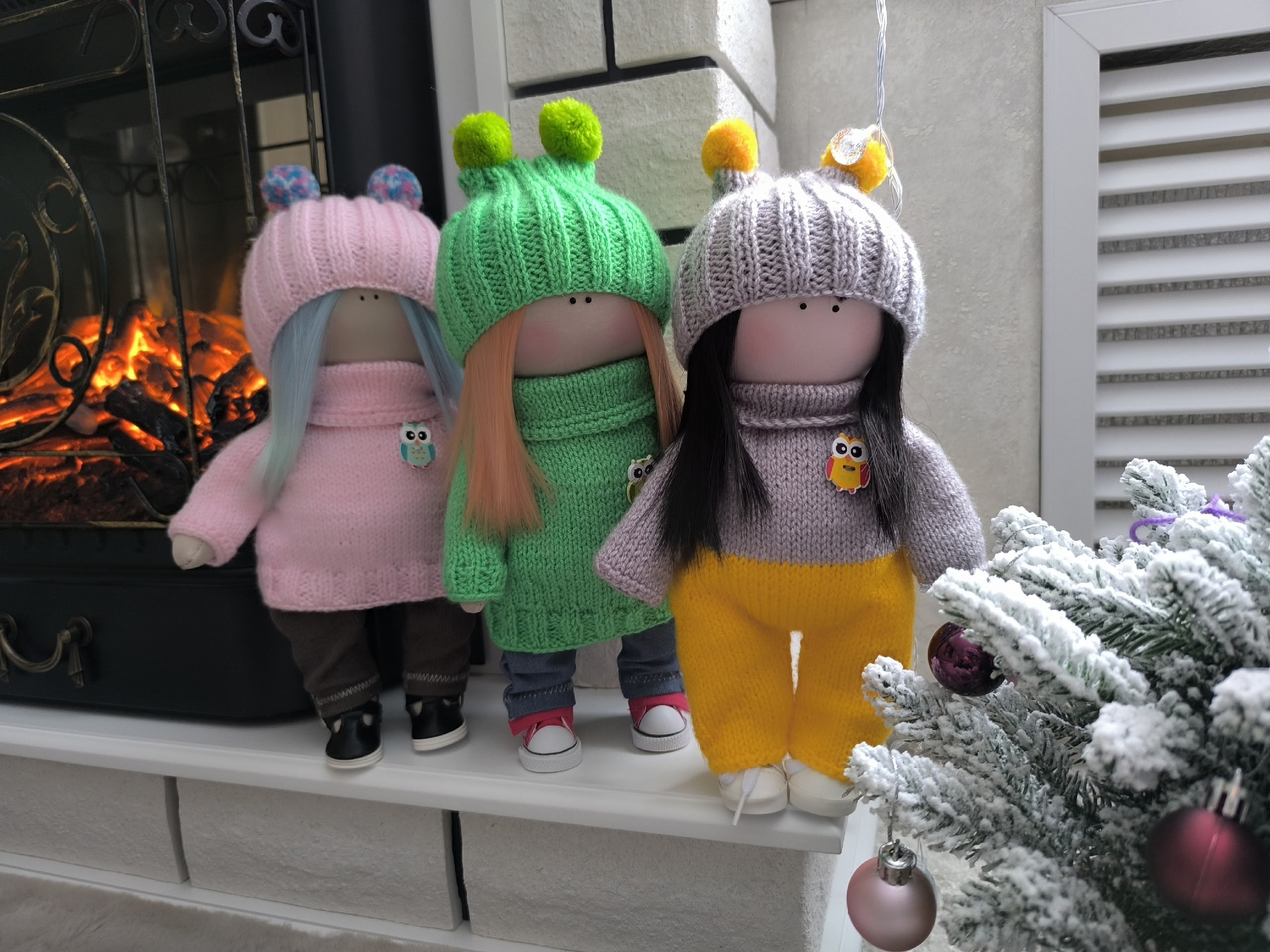 Кукла интерьерная ручная работа. Высота куклы примерно 27 см. Голова, руки и ноги поворачиваются. Волосы легко расчёсываются. Кукла может сидеть, может стоять засчет обуви. Одежда съёмная. Кукла создаёт уют в доме, поднимает настроение... Продается в подарочной упаковке.