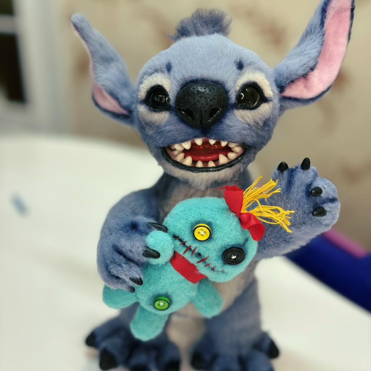 Стич ,авторская игрушка ! Всеми любимый персонаж ,инопланетянин! Сделан из искусственного меха под норку. Внутри пластиковый скелет ,а значит он полностью подвижный и ножки,ручки ,голова ,уши ,даже каждый пальчик на руке .Рот и нос из запекаемой полимерной глины , а глазки стеклянные . Рост игрушки 26 см . Поедет со своей любимой игрушкой Чучей ! Готов к переезду в новый дом , в любящие ручки