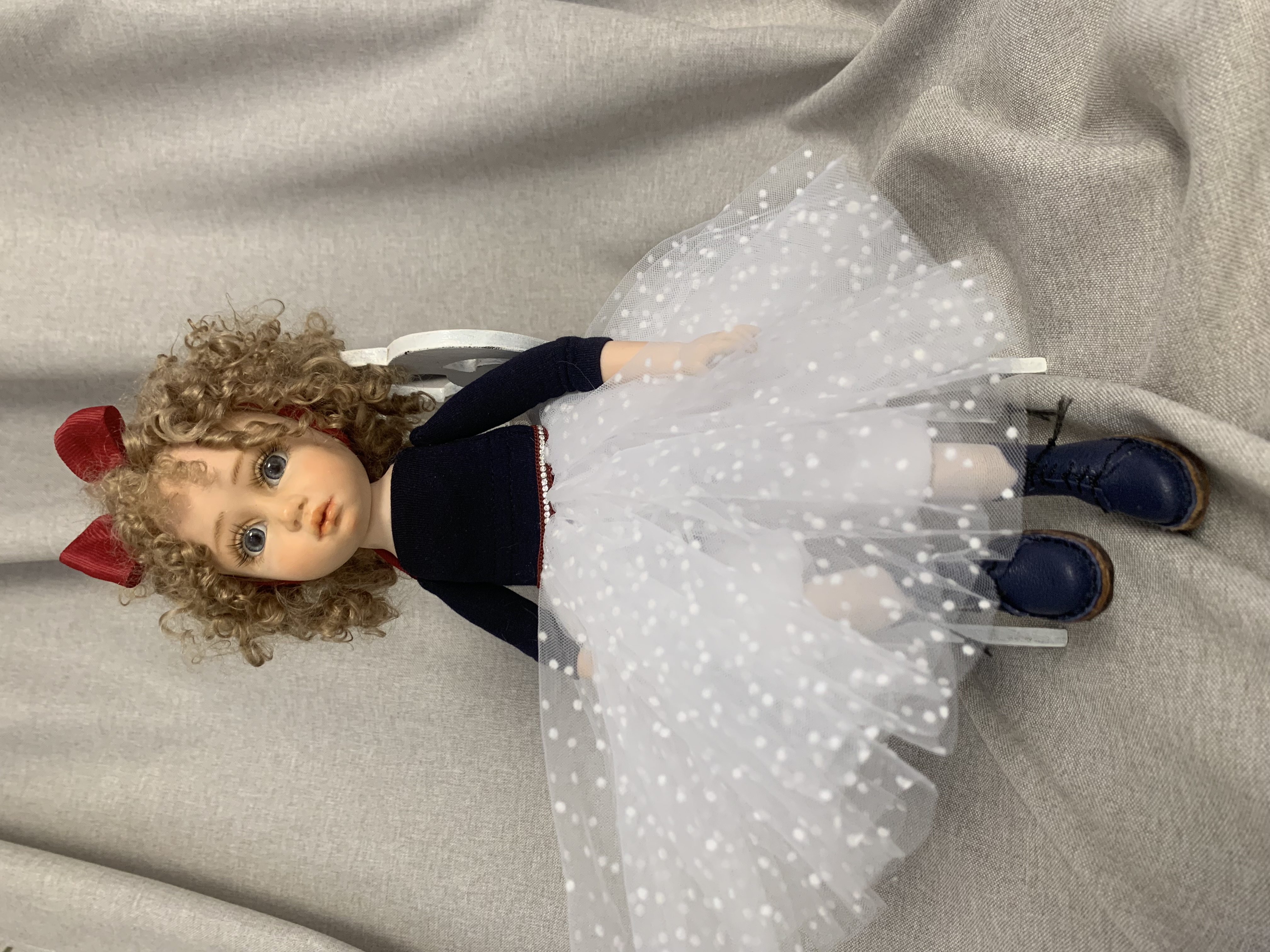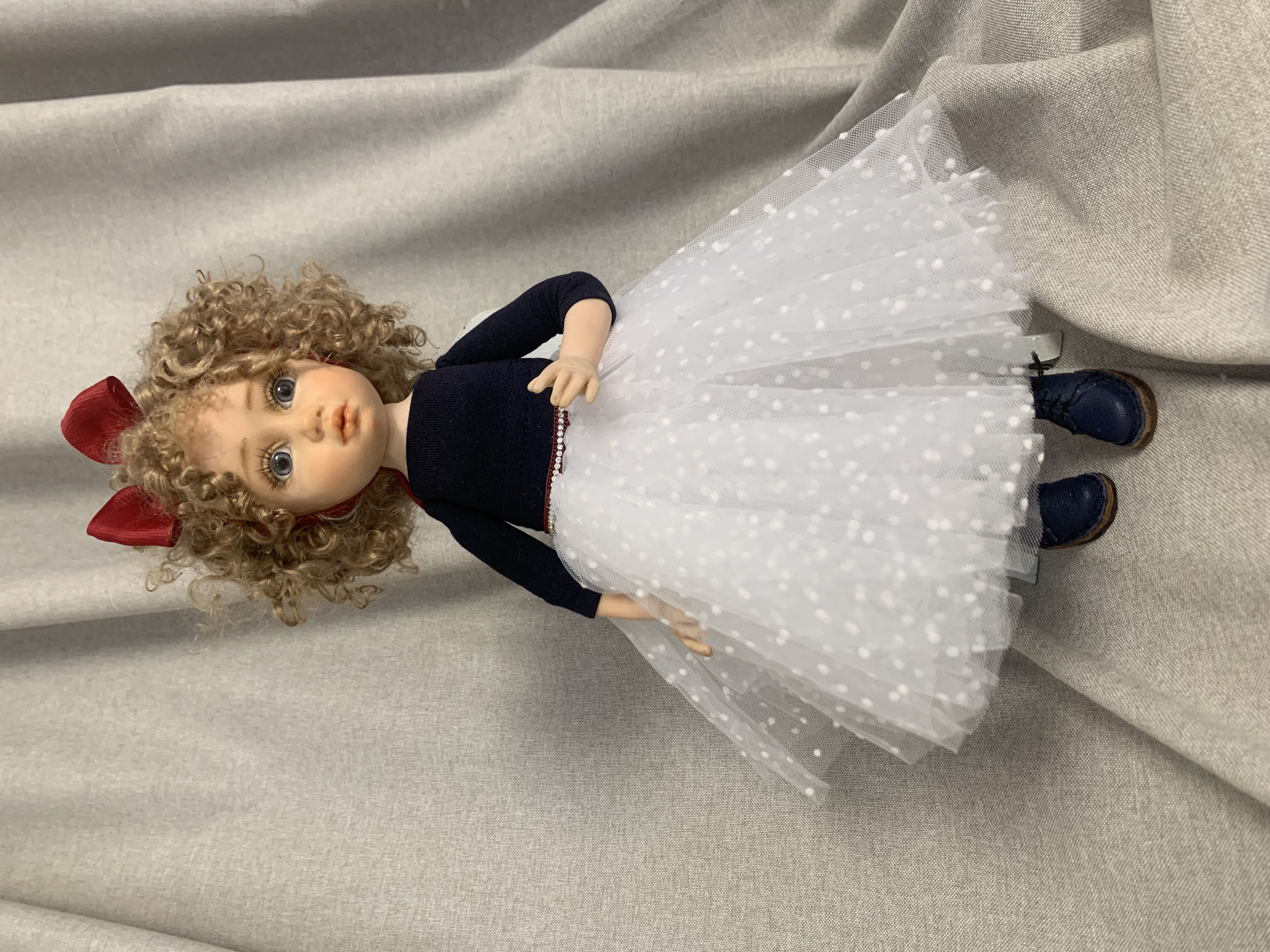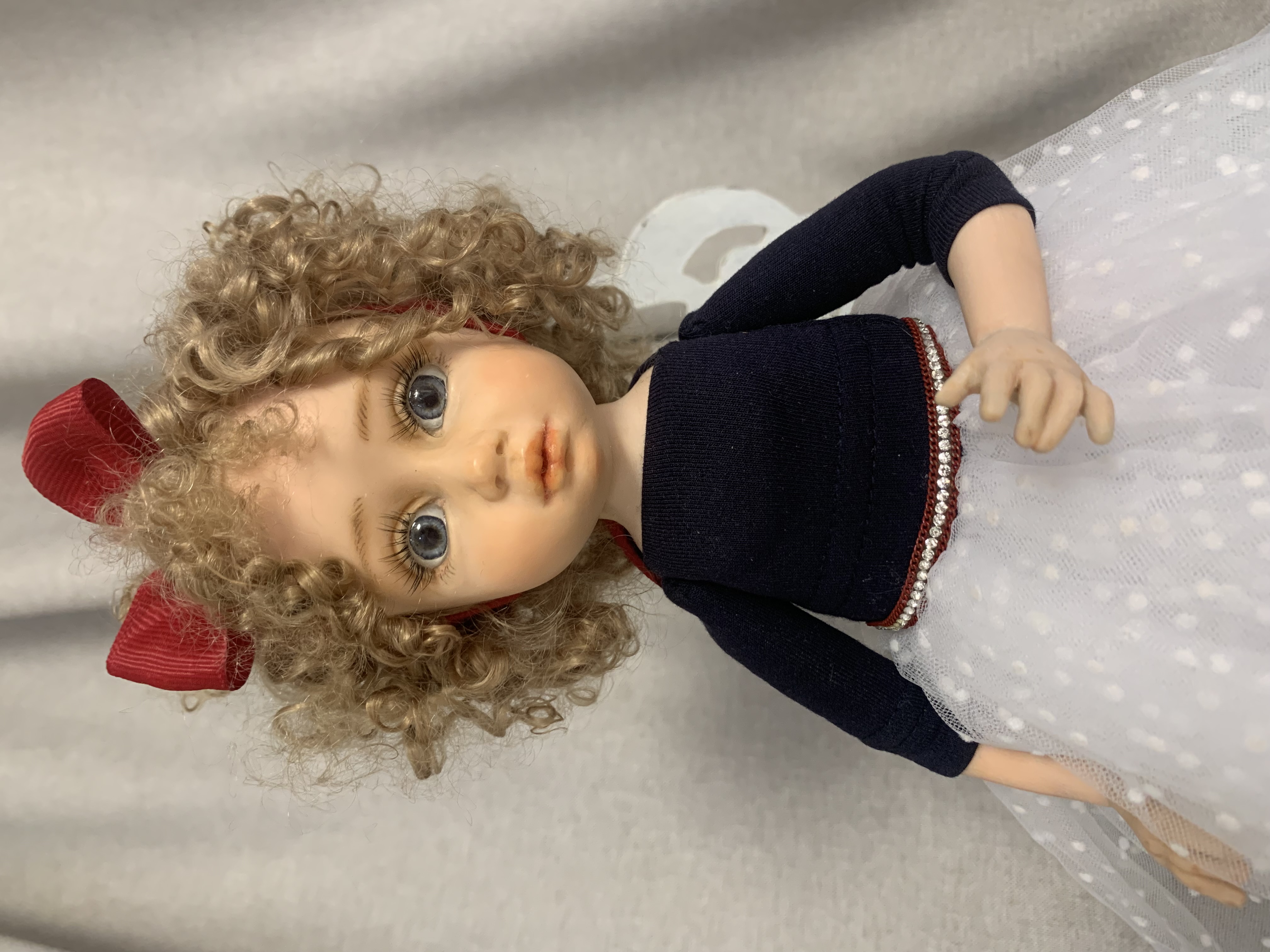 Авторская кукла,полностью ручная работа,в единственном экземпляре..Изготовлена из :полимерная глина Fumo,наполнитель опилки и стеклянный утяжелитель,волосы козочки,одежда несъемная.