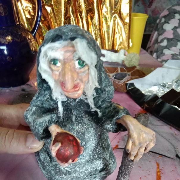"Эта злая колдунья, с ядовитым яблоком в руках, является не просто ватной игрушкой, а настоящим произведением искусства. Ее образ поражает своей детализацией и реалистичностью, олицетворяя все зло и коварство, которыми наполнено ее черное сердце.