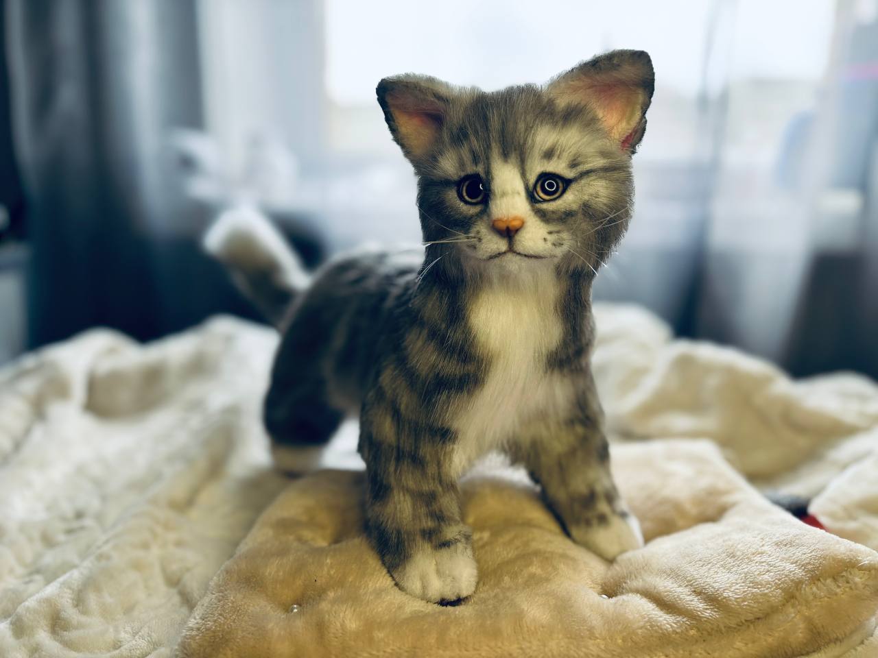 Котик сшит из искусственного меха.