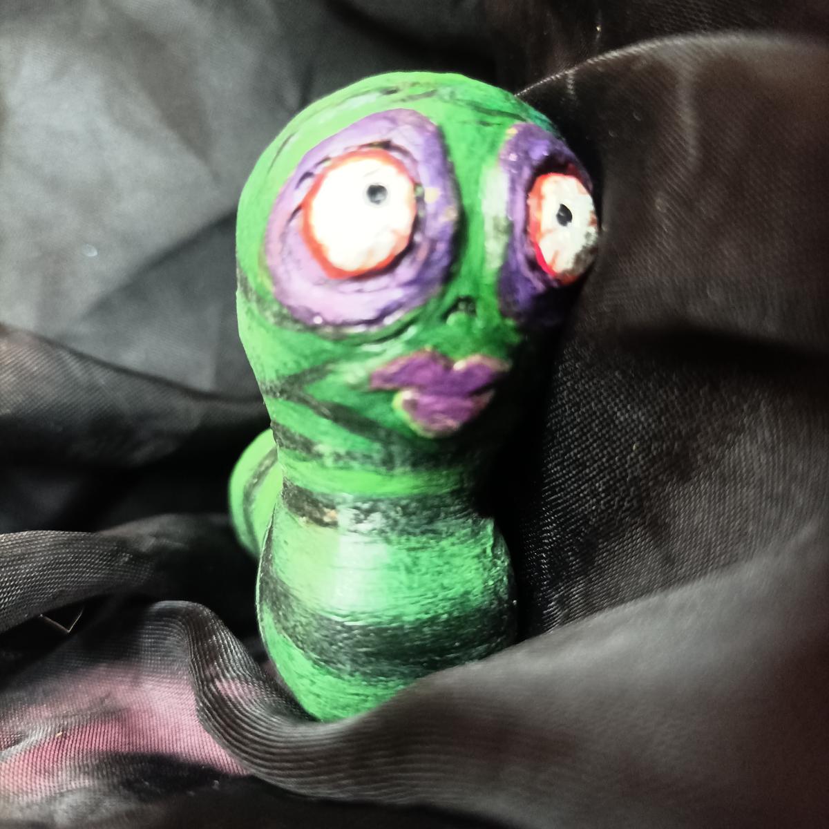 милый маленький червячок Меггот, сделан из самозатвердевающей глины, покрыт акрилом и лаком.
