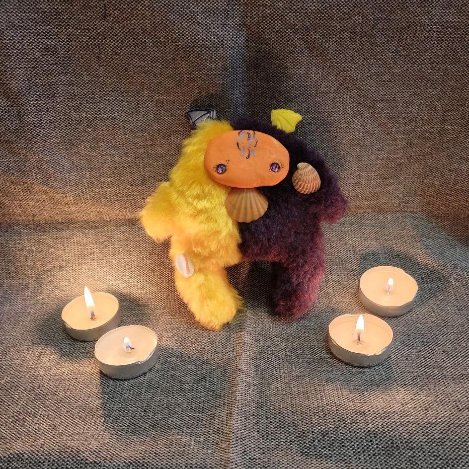 Изделие подойдет как для интерьера,так и для игр. Материалы: ткань, эпоксидная смола,полимерная глина, пластик, искусственный мех, акрил