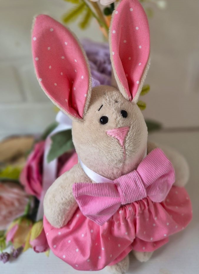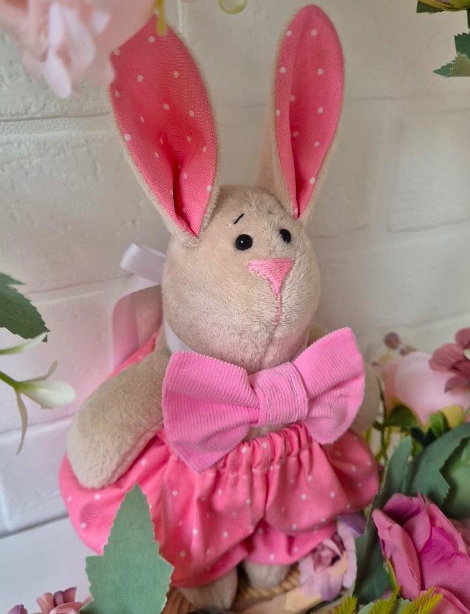 Весенний кролик в розовых штанишках, мягкая игрушка 25 см, ручная работа