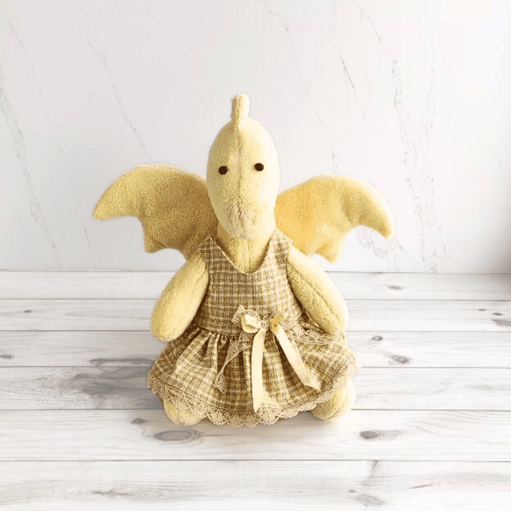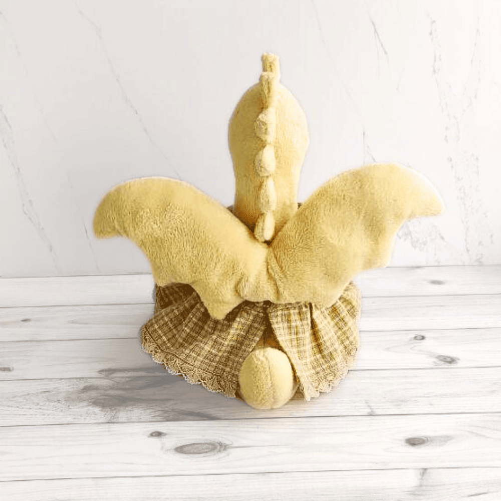 Изделие сделано из плюша, набито холлофайбером, крылья и платье сьемное, лапки и ножки пришиты на пуговках. Дракончик стоять не может , только сидит, в единственном экземпляре, повторений невозможно.