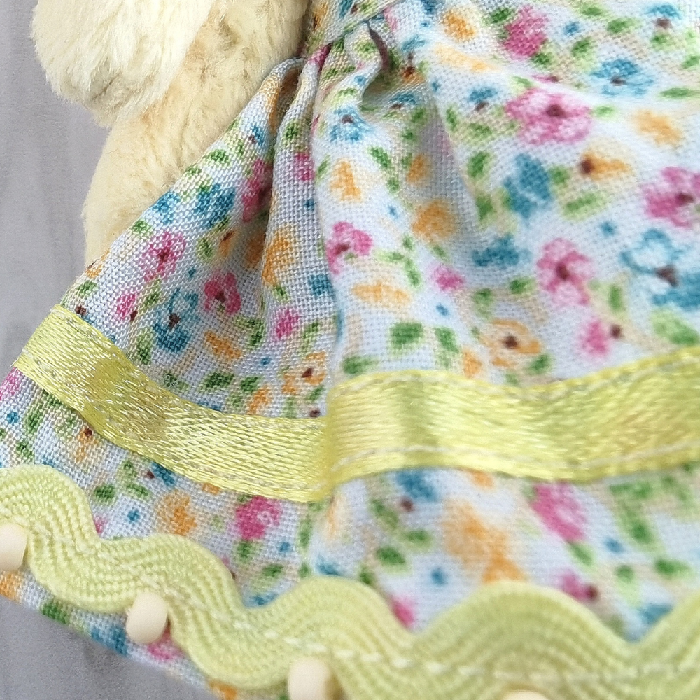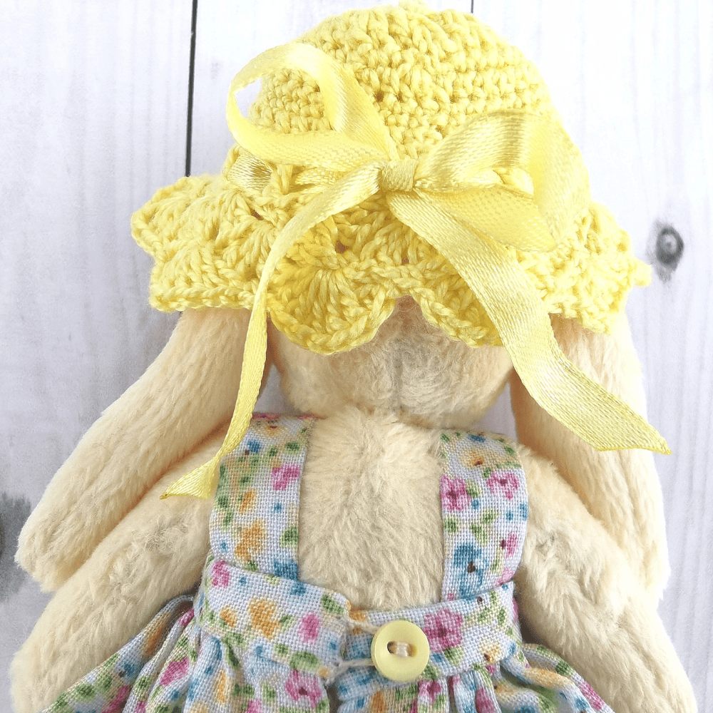 Зайка из плюша, сделан в технике тедди,одежда съемная,сарафан сшит из х\б и украшено тесьмой, атласной лентой, бисером, панама связана из ниток ириса, глазки из бисера, нос вышит из ниток мулине.Высота изделия 18см.Материалы: плюш, сатин, ирис, тесьма , атласная лента.Изделие рекомендуем на подарок своим близким и для интерьера дома и дачи. Игра с плюшевым заей открывает множество возможностей для развития воображения, творческого мышления и социальных навыков. Дети могут придумывать разные истории, создавать сценарии для игр и развивать моторику рук при одевании зайки. Также с помощью зайки можно обучать детей основам ухода за игрушками и развивать ответственность. Рекомендации по уходу: только сухая чистка для тела зайки, платье можно стирать, используя гель для душа или шампунь, не выкручивать, не выжимать, сушить в расправленном виде на чистом сухом полотенце, утюжить паром, для панамы используйте сухую чистку.