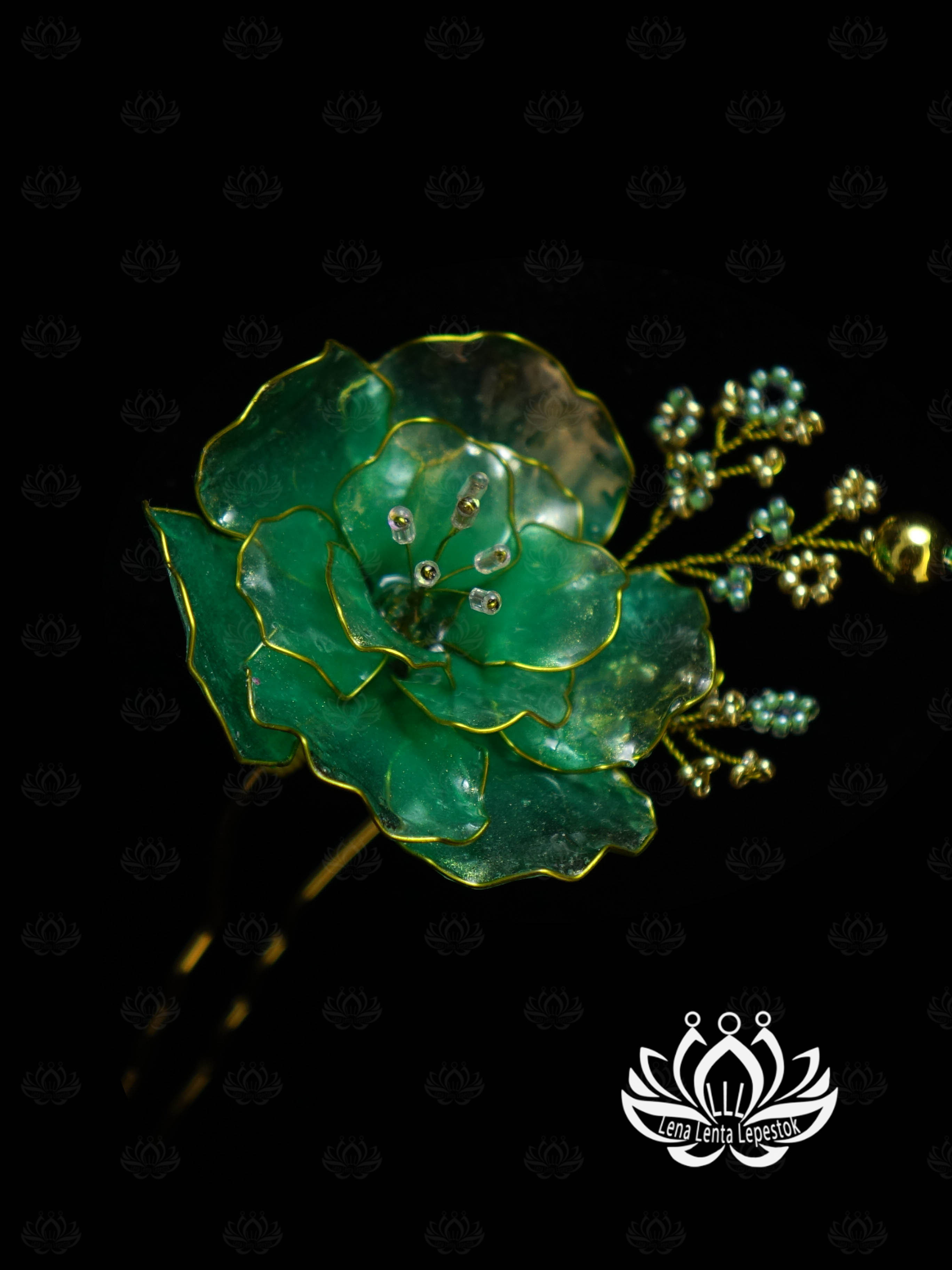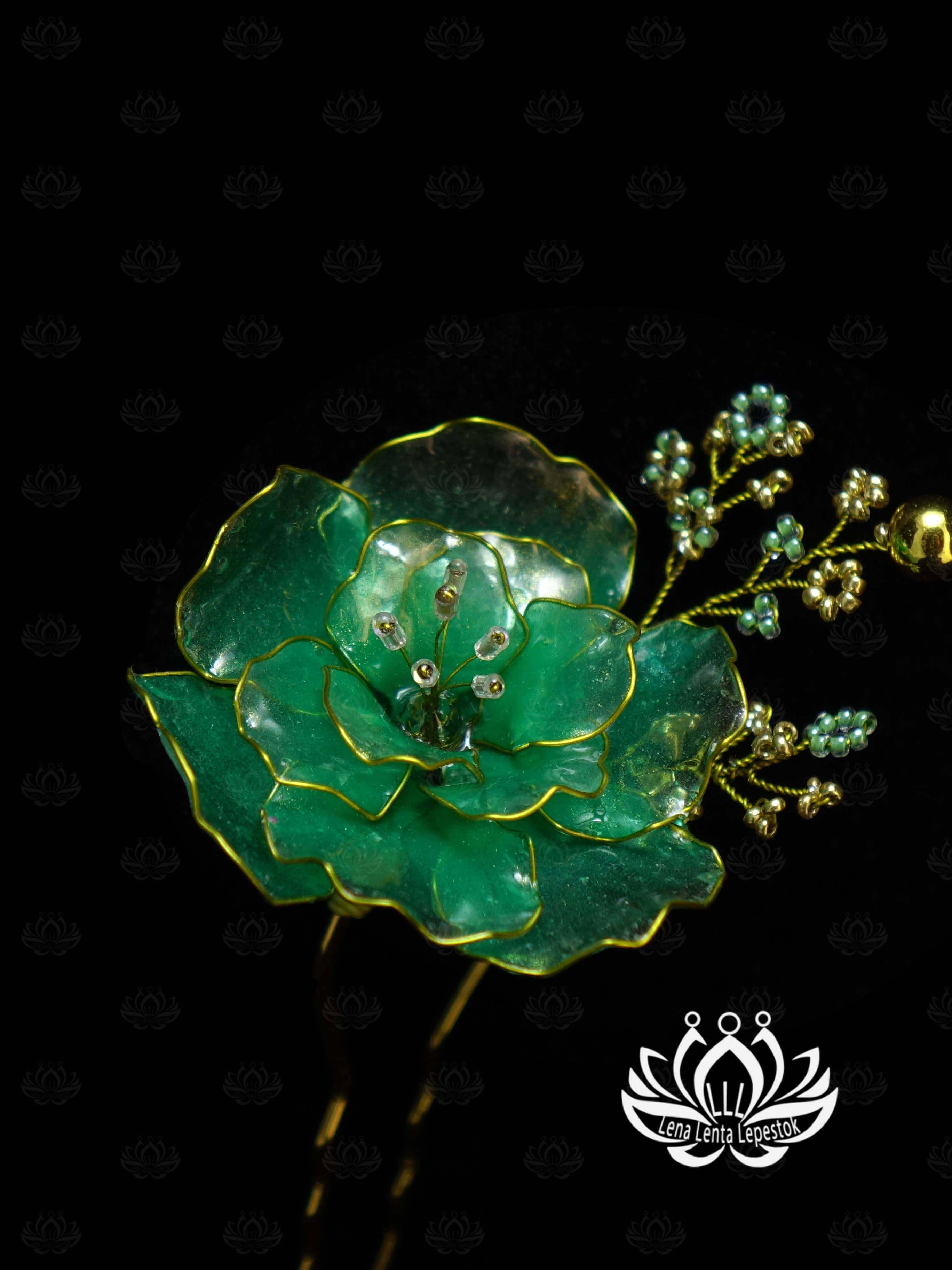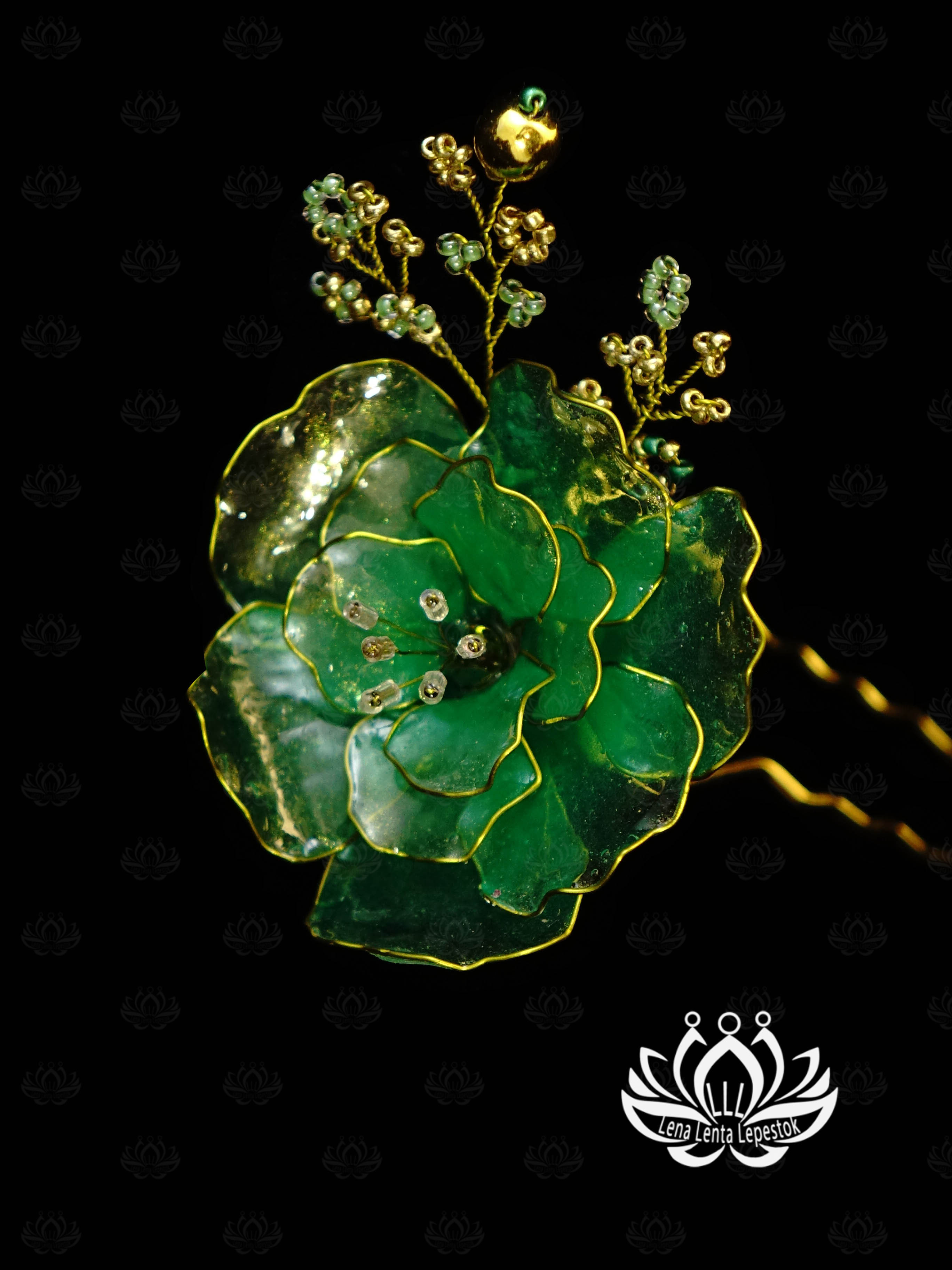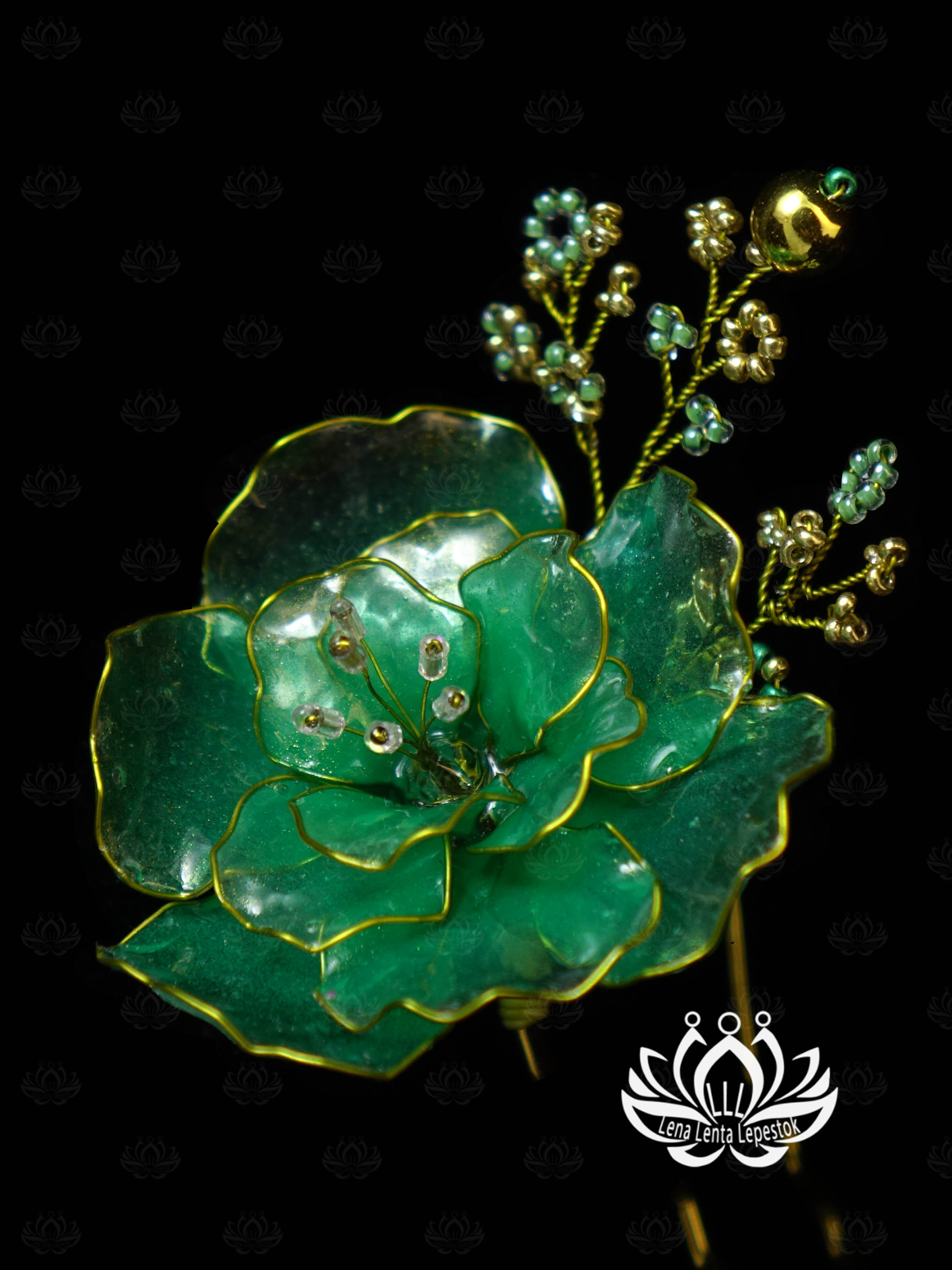 Представьте себе: цветок из ювелирной смолы Витраль, словно оживший изумруд! Большие лепестки, отливающие зеленым, полупрозрачные, словно кусочки волшебного стекла. Они блестят и переливаются, играя с солнечным светом, как капельки росы на весенних листьях!