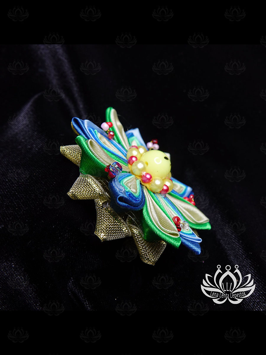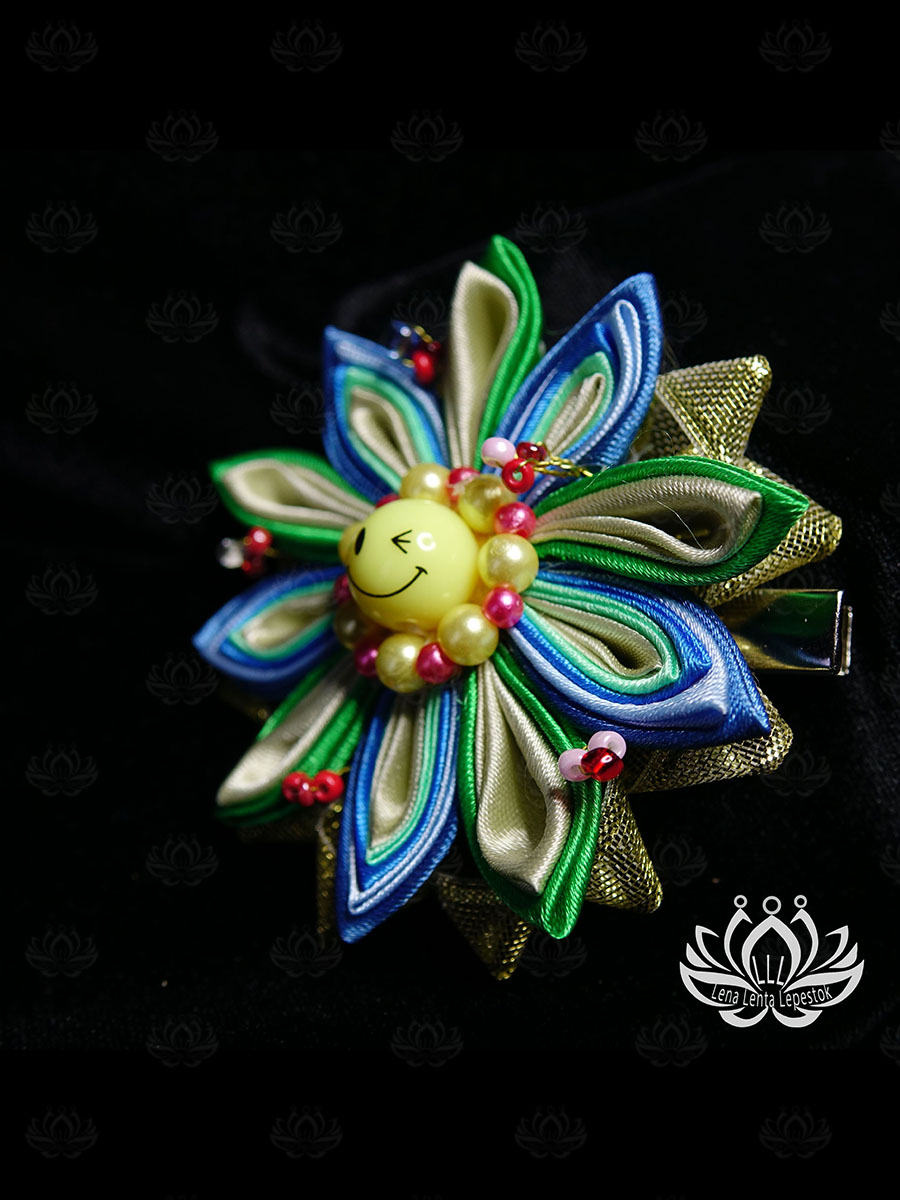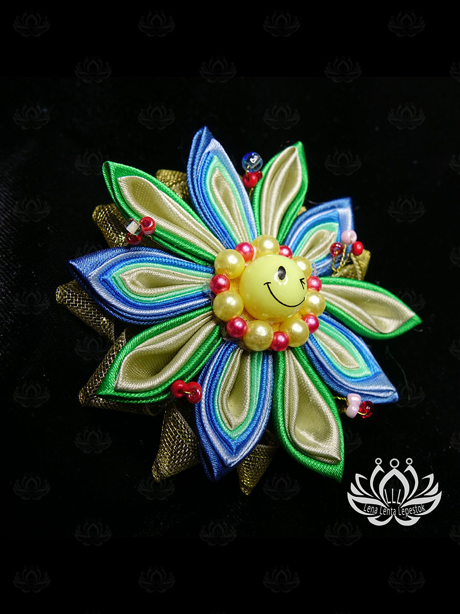 LenaLentaLepestok представляет: Заколка для волос ручной работы "Солнечный круг" разноцветный. Единственный экземпляр. Цветы Канзаши на волосы Ваши.