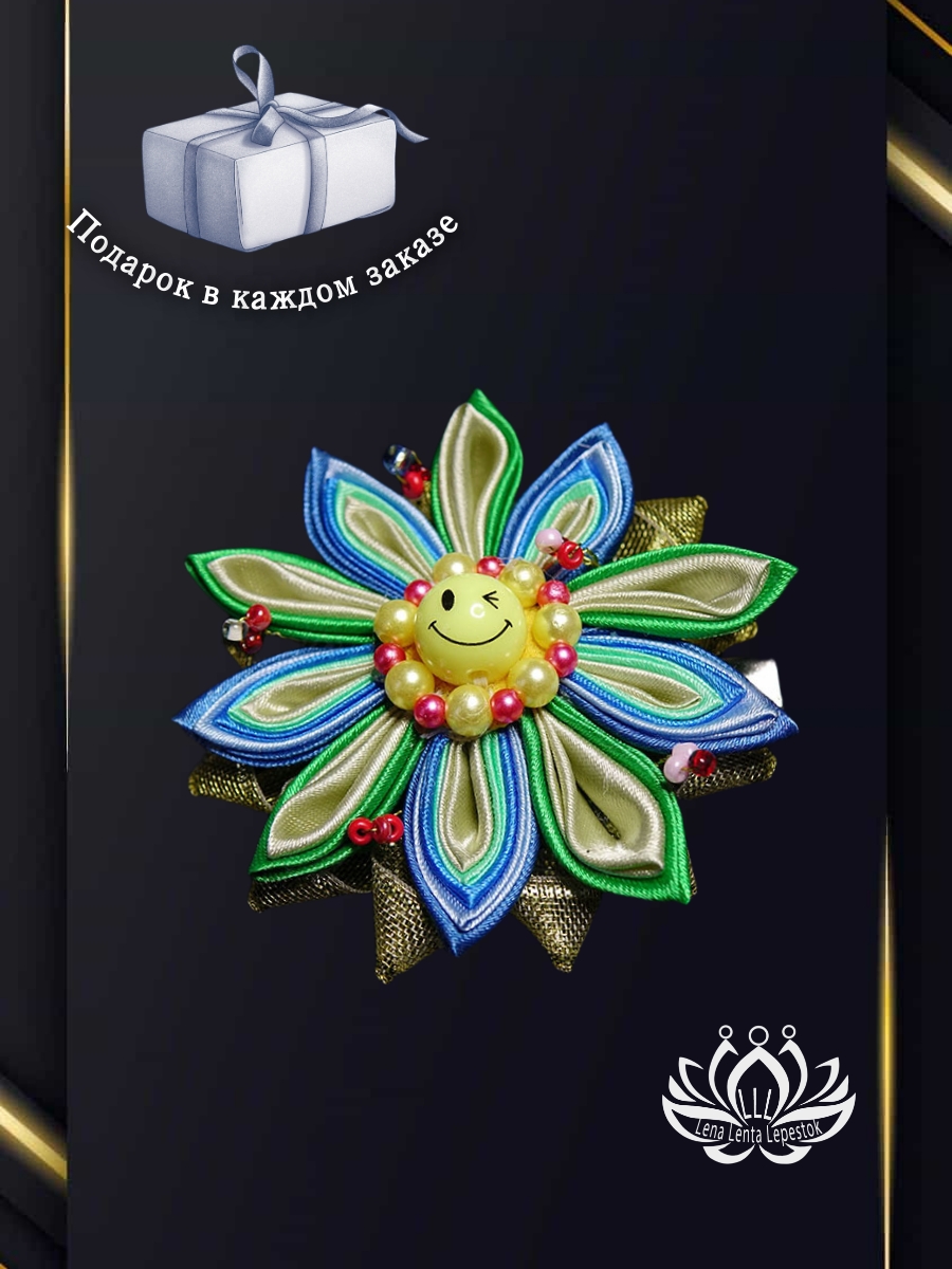 Встречайте восхитительную заколку для волос "Солнечный круг"! Это не просто украшение, а целая радуга, сплетенная вручную из атласных лент восьми сочных оттенков, чтобы превратить прическу в настоящий цветочный взрыв!