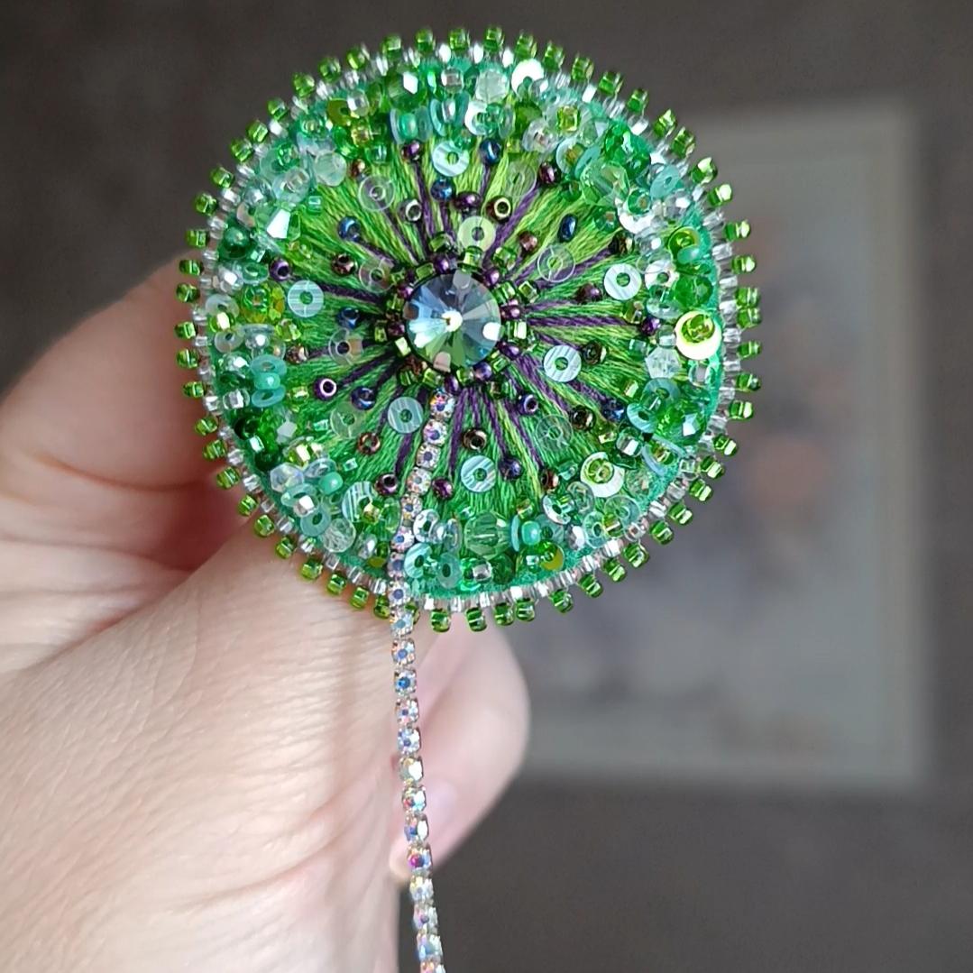Материалы: нитки мулине, вискоза (искусственный шелк), стразы, стразовая цепь, чешский бисер, японский бисер Тохо, пайетки итальянские и индийские, хрустальные бусины, изнанка экокожа, японская булавка.