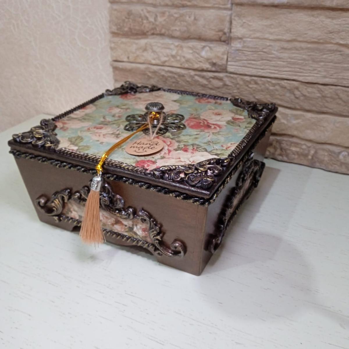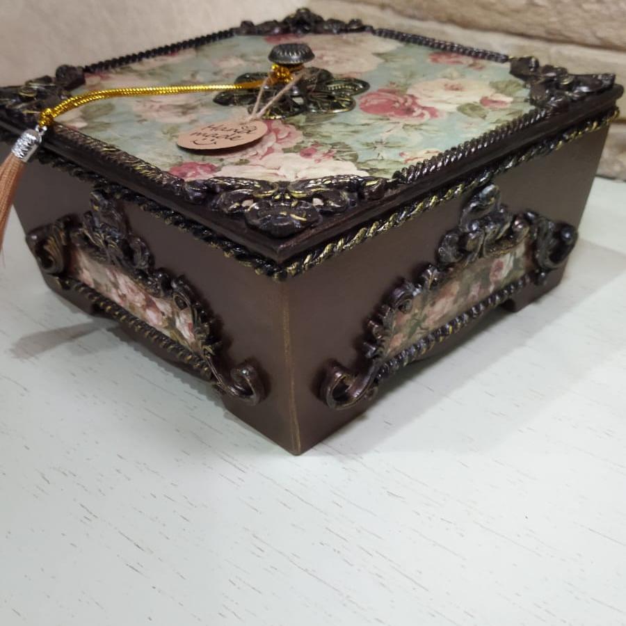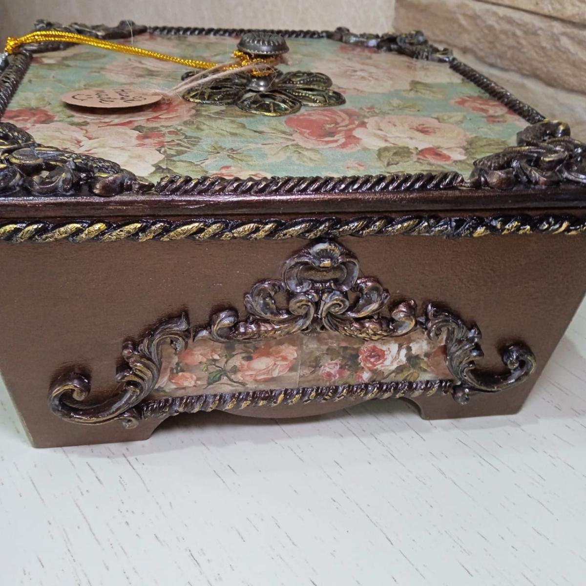 Шкатулочка " для ваших украшений или милых женских штучек.Такая красота в единственном экземпляре, так приятно иметь вещь изготовленную с душой и не конвеерном способом. Изготовлена способом декупаж.