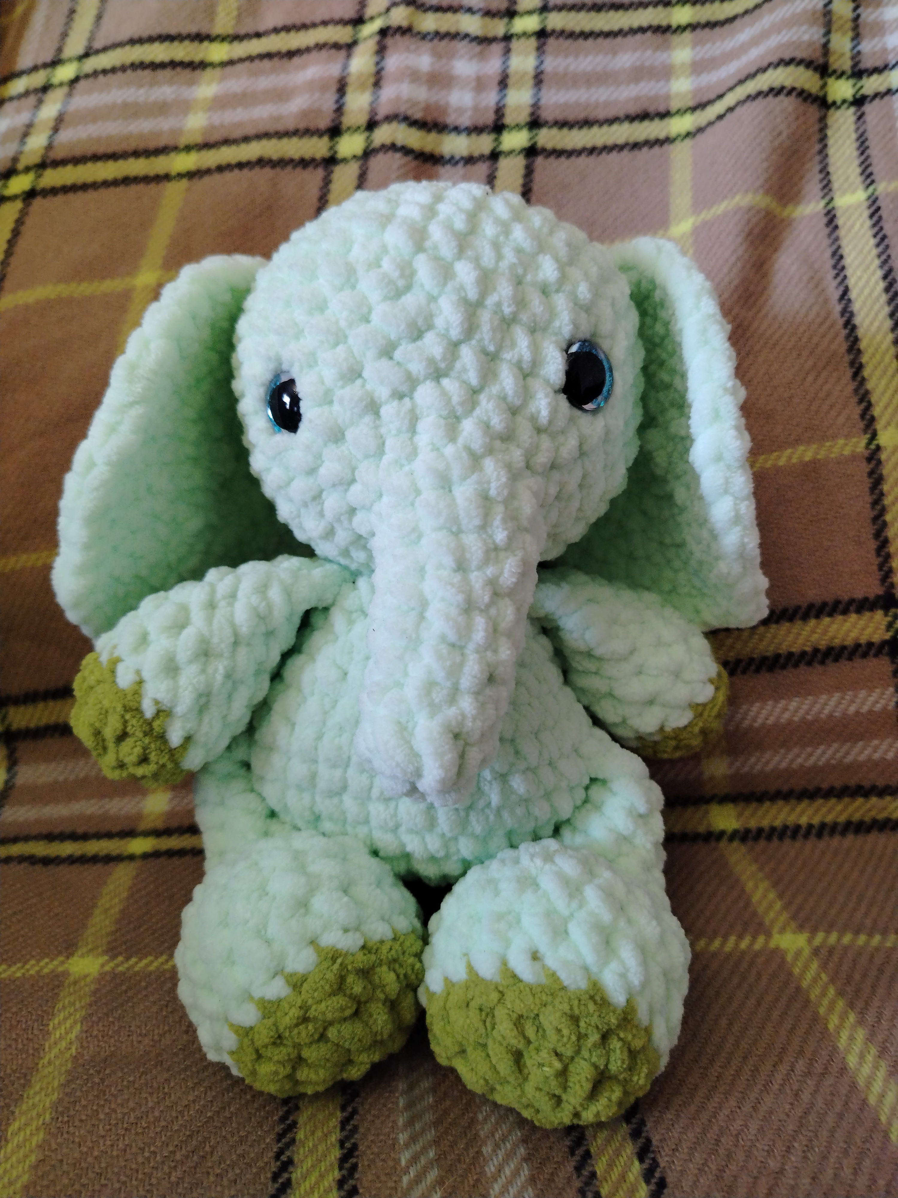 Игрушка слоник из плюшевой пряжи в технике Амигуруми. Наполнитель синтепух. Глазки с искоркой. 23 см.
