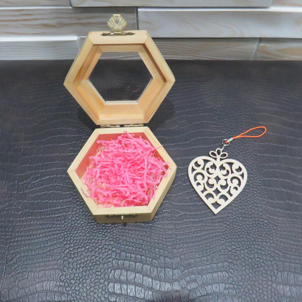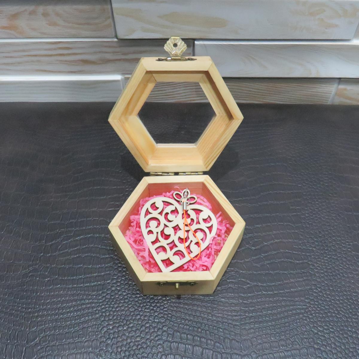 Искусство в деталях. Эта светлая шестигранная шкатулка скрывает внутри настоящее ажурное чудо. Под прозрачным стеклом крышки покоится резное сердце из дерева, выполненное в филигранной технике.