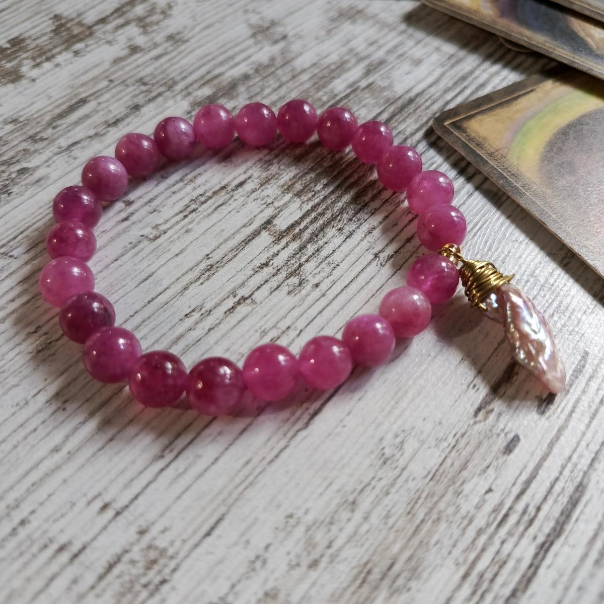 Сочетание розового халцедона и жемчуга Бива представляет собой гармоничный дуэт, сочетающий свойства сердечной и духовной энергии. Розовый халцедон способствует эмоциональному исцелению, развитию любви, сострадания и самопринятия, создавая ощущение спокойствия и гармонии в отношениях. Жемчуг Бива, связанный с чистотой, мудростью и духовным спокойствием, помогает укрепить интуицию, защитить от негативных воздействий и повысить внутреннюю ясность.
