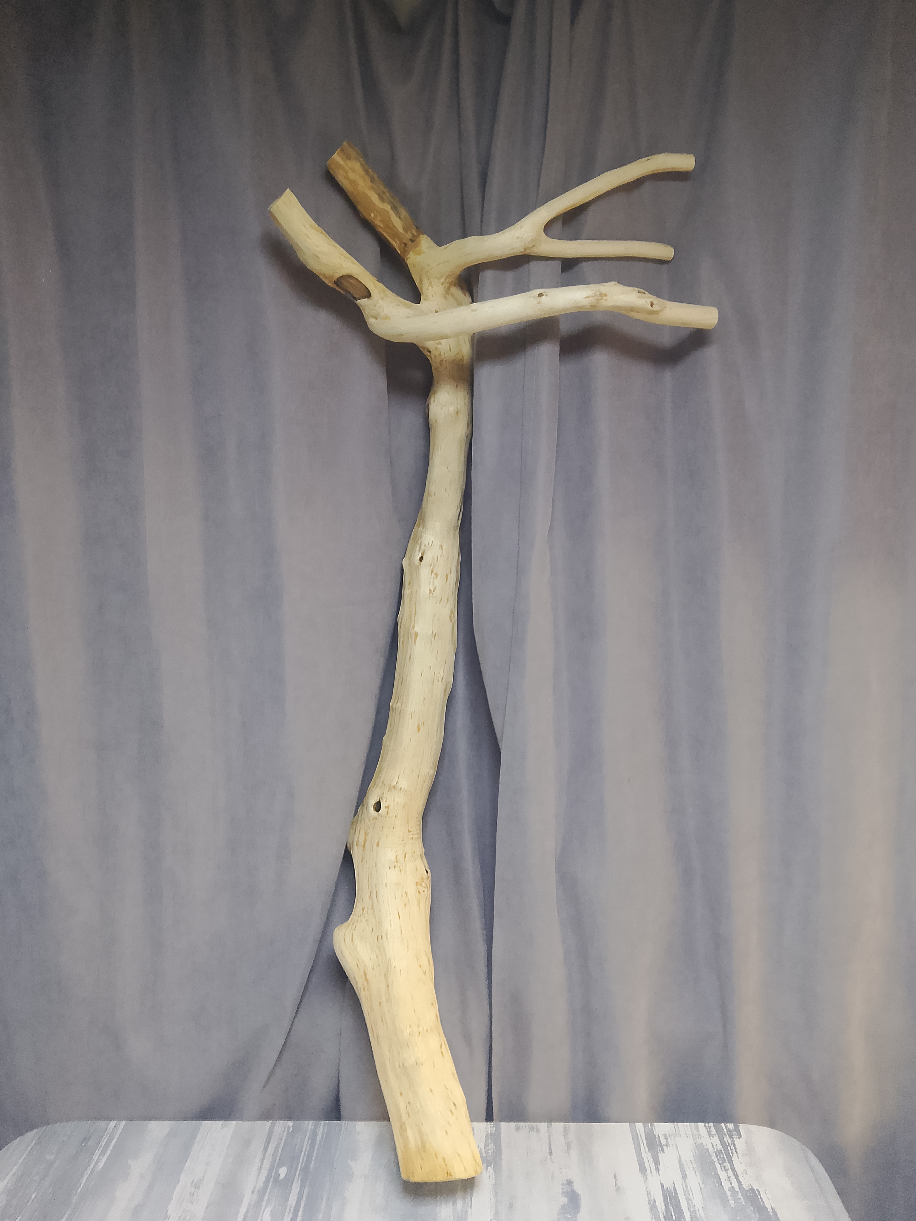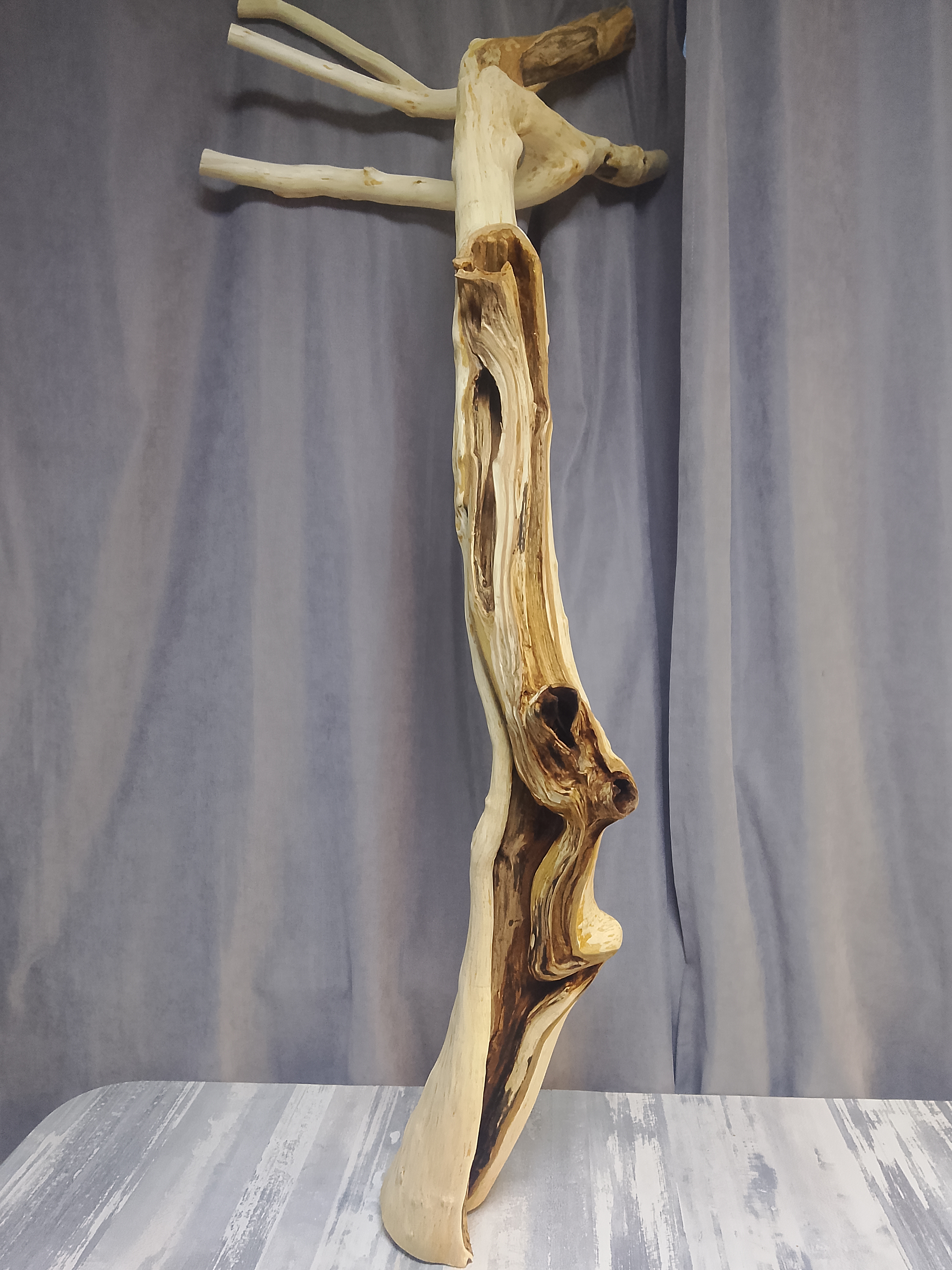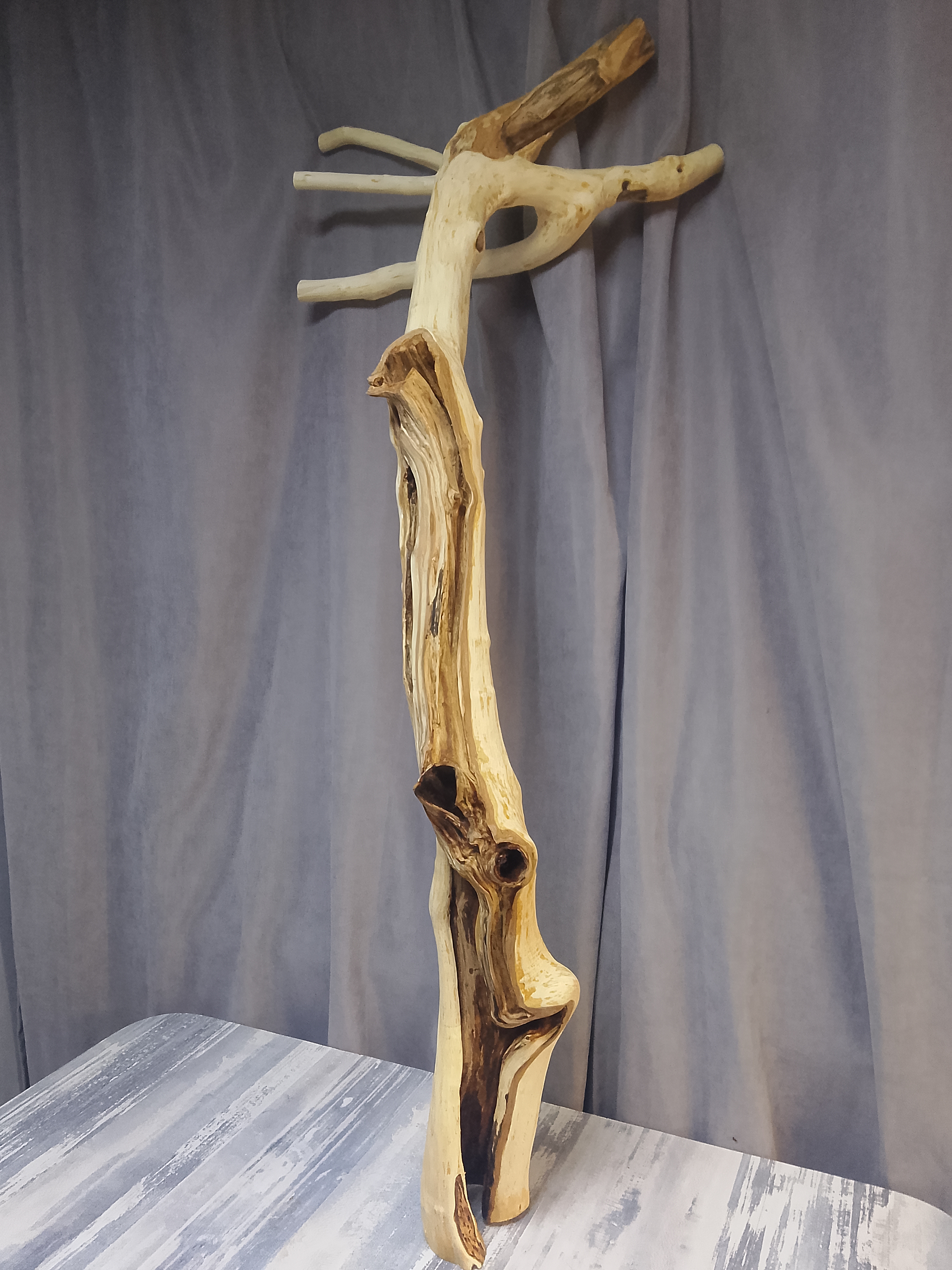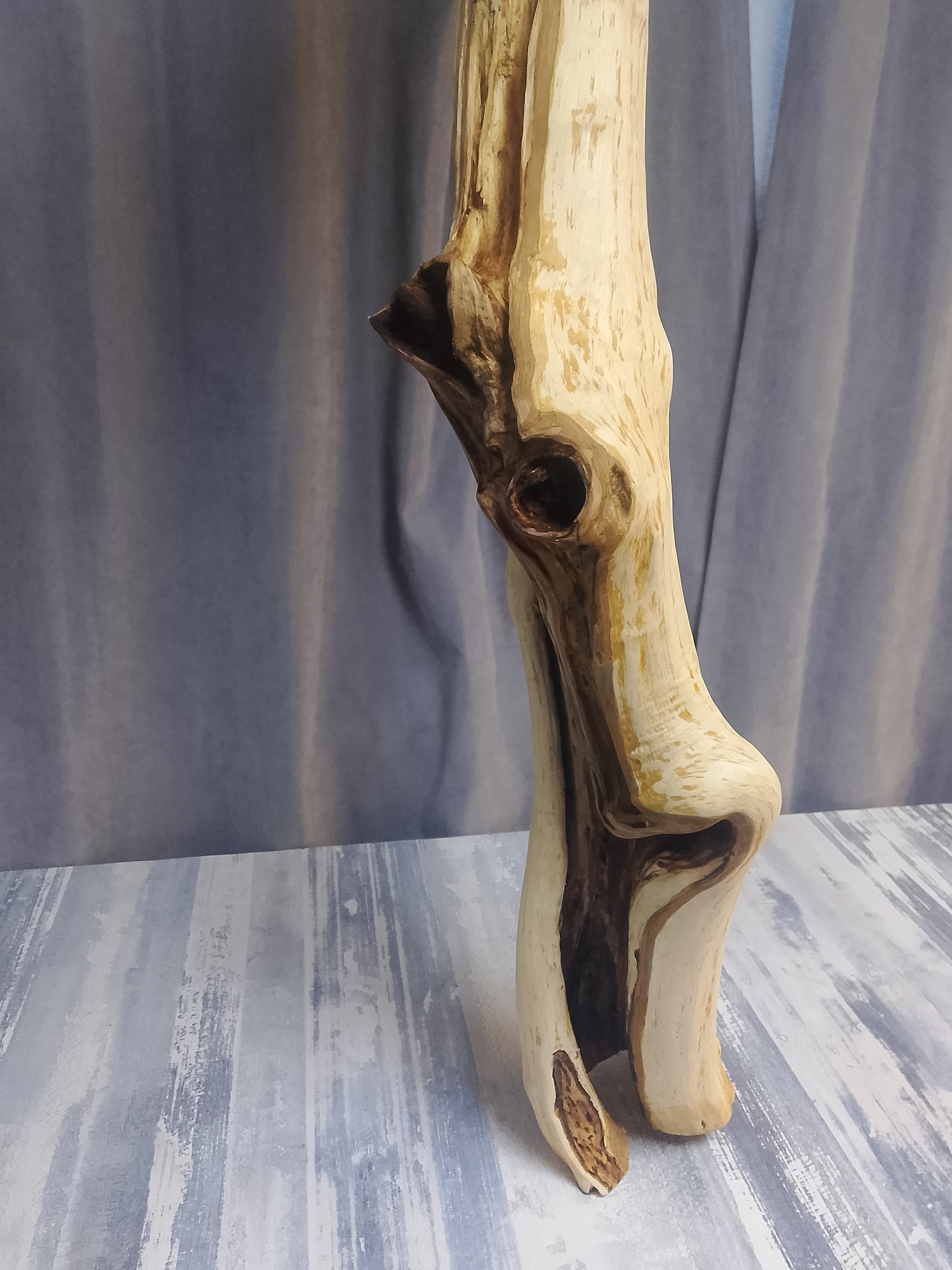 Заготовка прошла 3-х этапную очистку(нейлоновая корщетка- дремель-нождачная бумага) и полностью готова к финальному покрытию. Покрытие маслом по дереву "темный орех" представит вам ошеломительный результат, что называется дорого-богато. Данная заготовка идеально подойдёт для стойки элитного торшера, с предусмотренной подсветкой в полости ствола. Материал: Прибайкальский, горный боярышник. Высота - 1,2м; ширина верх - 0,5м; диаметр низ-середина-верх - 12х8х6 см. Нижняя часть очень массивная. Полости в стволе заготовки обеспечат вам лёгкий, скрытый монтаж кабеля. Структура ствола обеспечит вам высокую стоимость готового проекта.
