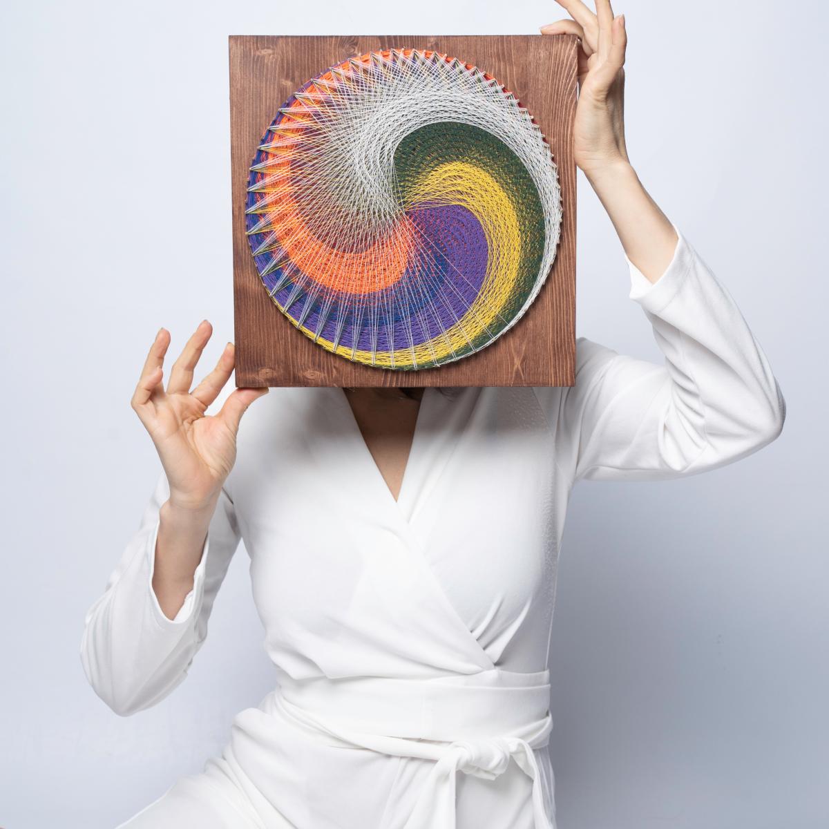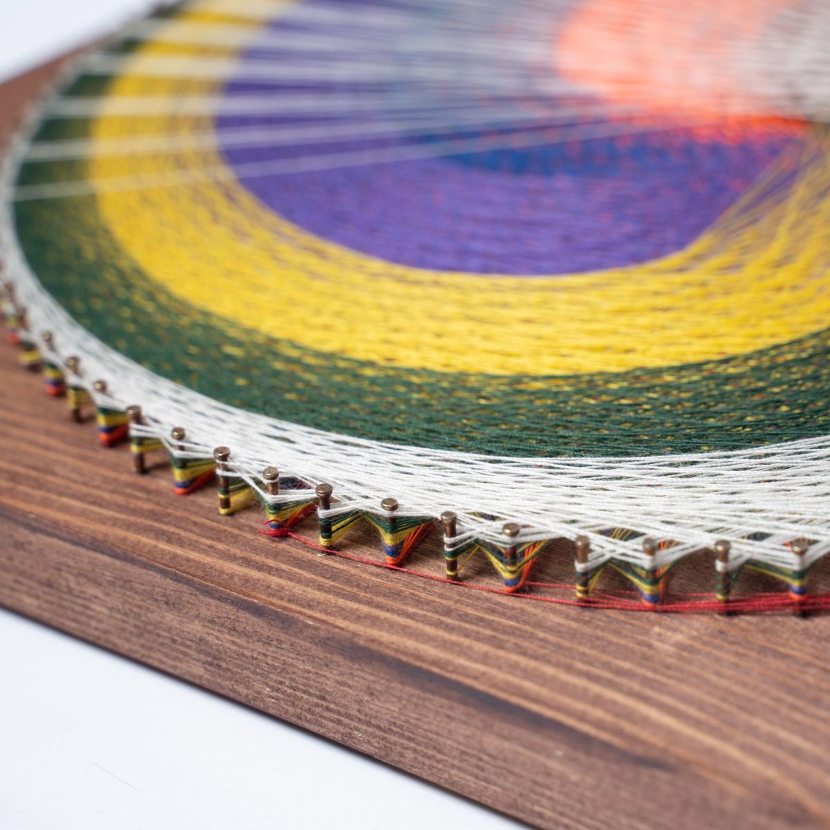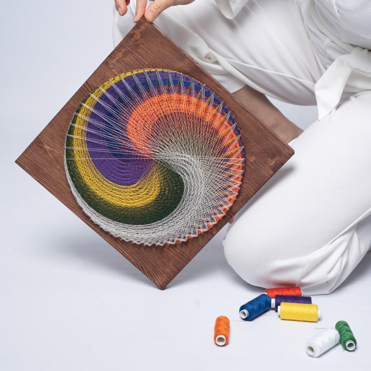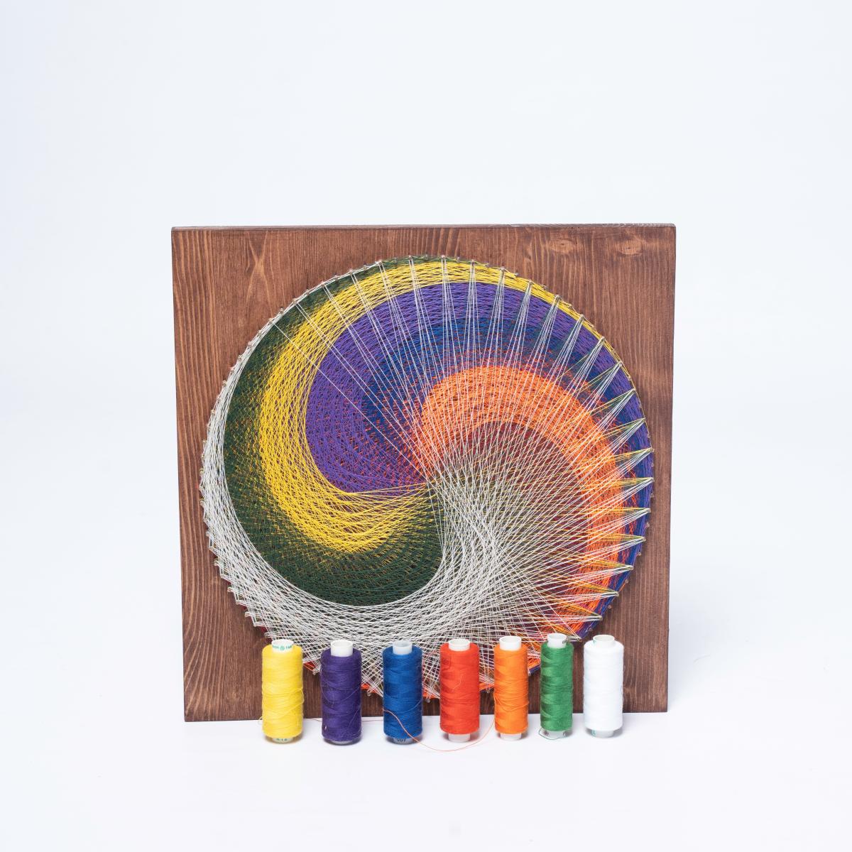 В наборе: деревянная основа с гвоздями, нитки швейные, инструкция бумажная, контакты автора, видео инструкция по запросу.