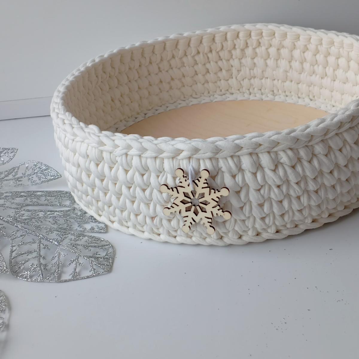 Корзина интерьерная из трикотажной пряжи,либо полиэфирного шнура.