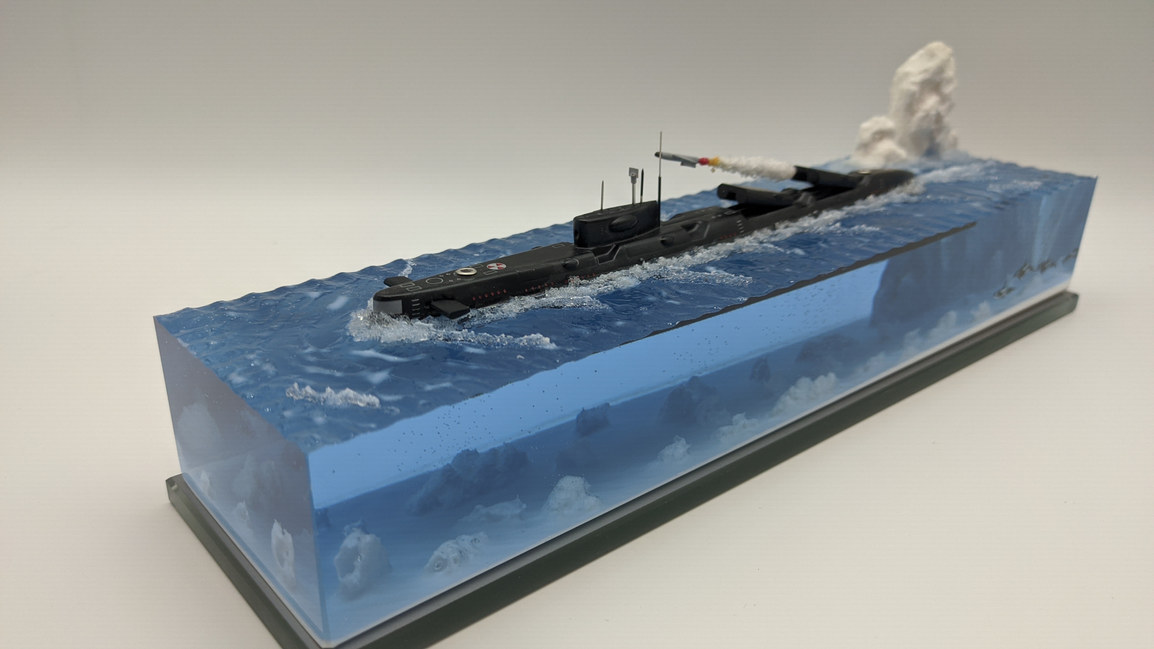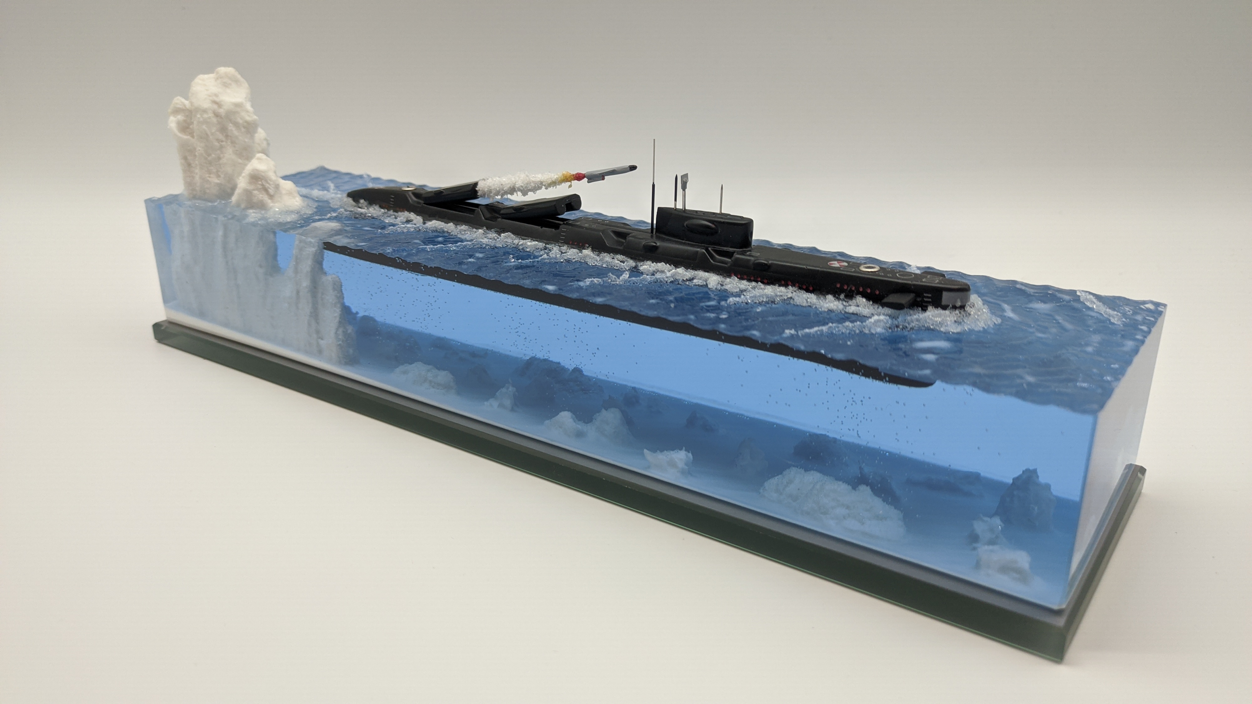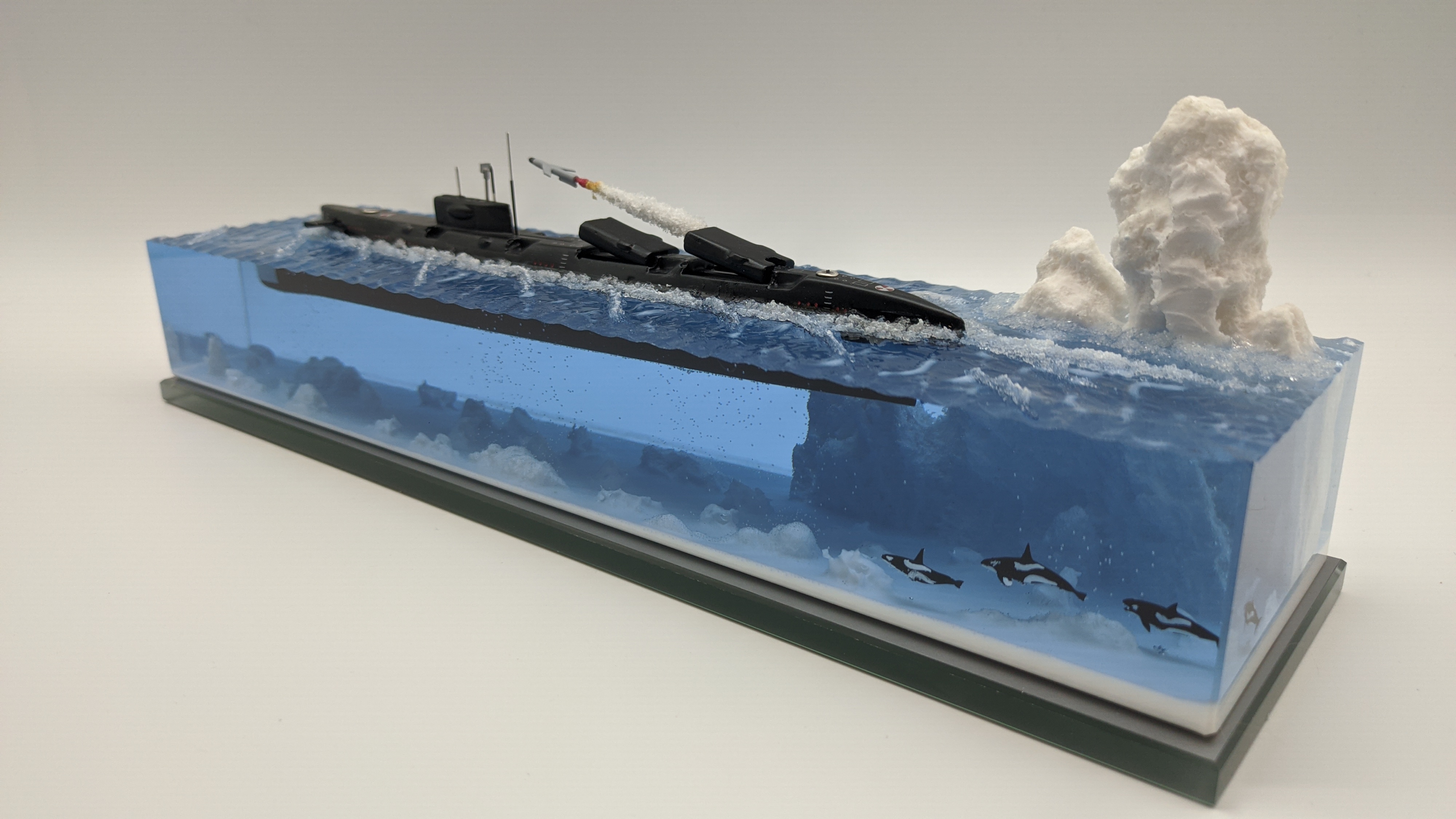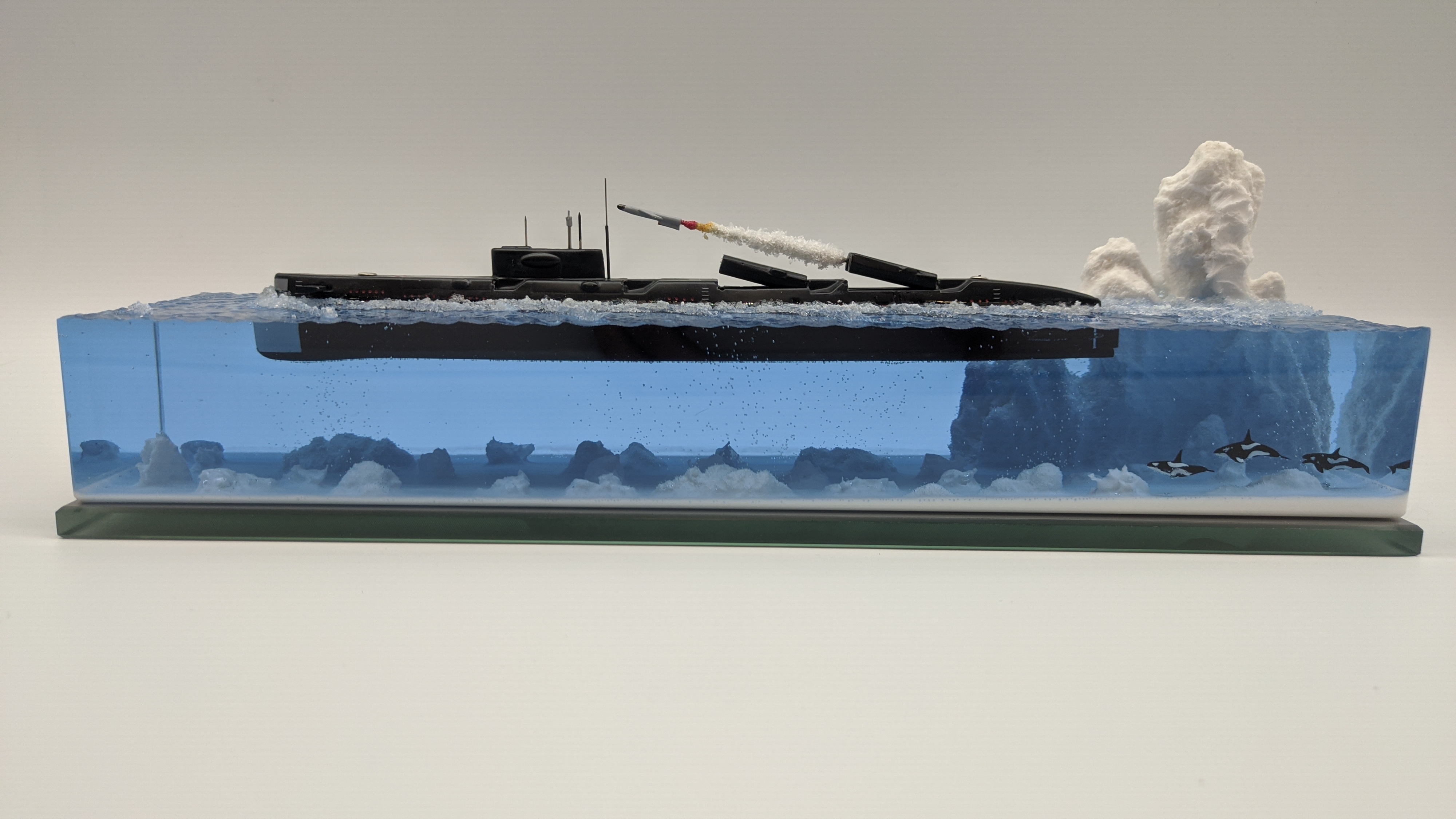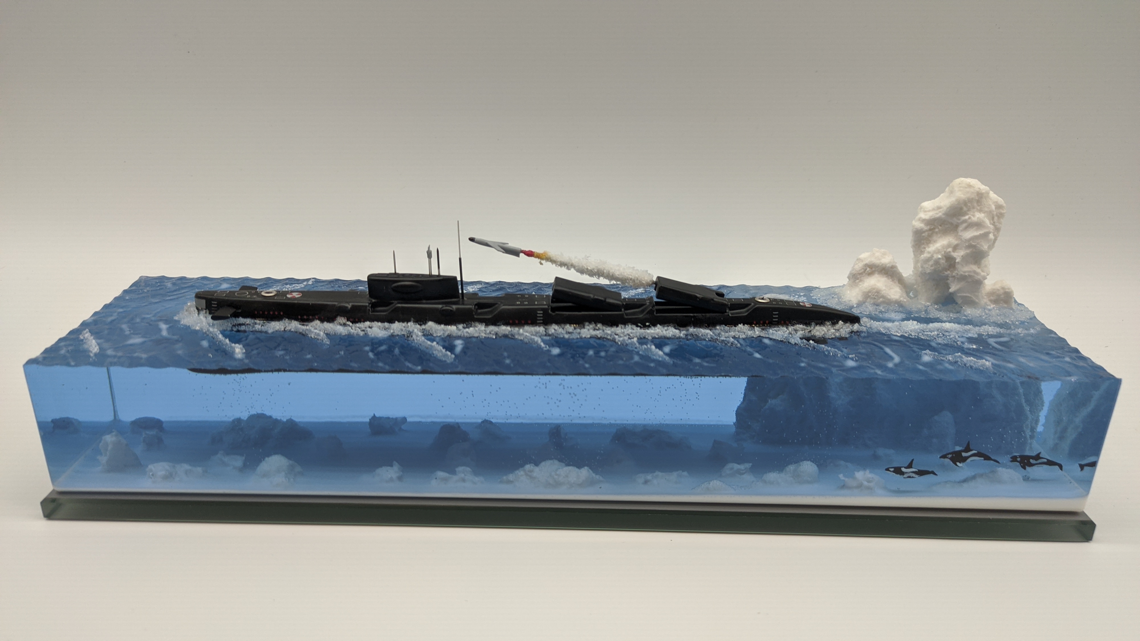 Модель подводной лодки 675 «Echo-II», идущая в надводном положении с имитацией пуска ракеты. На диораме так же представлены касатки. Всё выполнено в масштабе для сравнения размеров лодки с животными. Доставка в регионы компанией СДЕК. Можно изготовить изделие на заказ по Вашим пожеланиям.