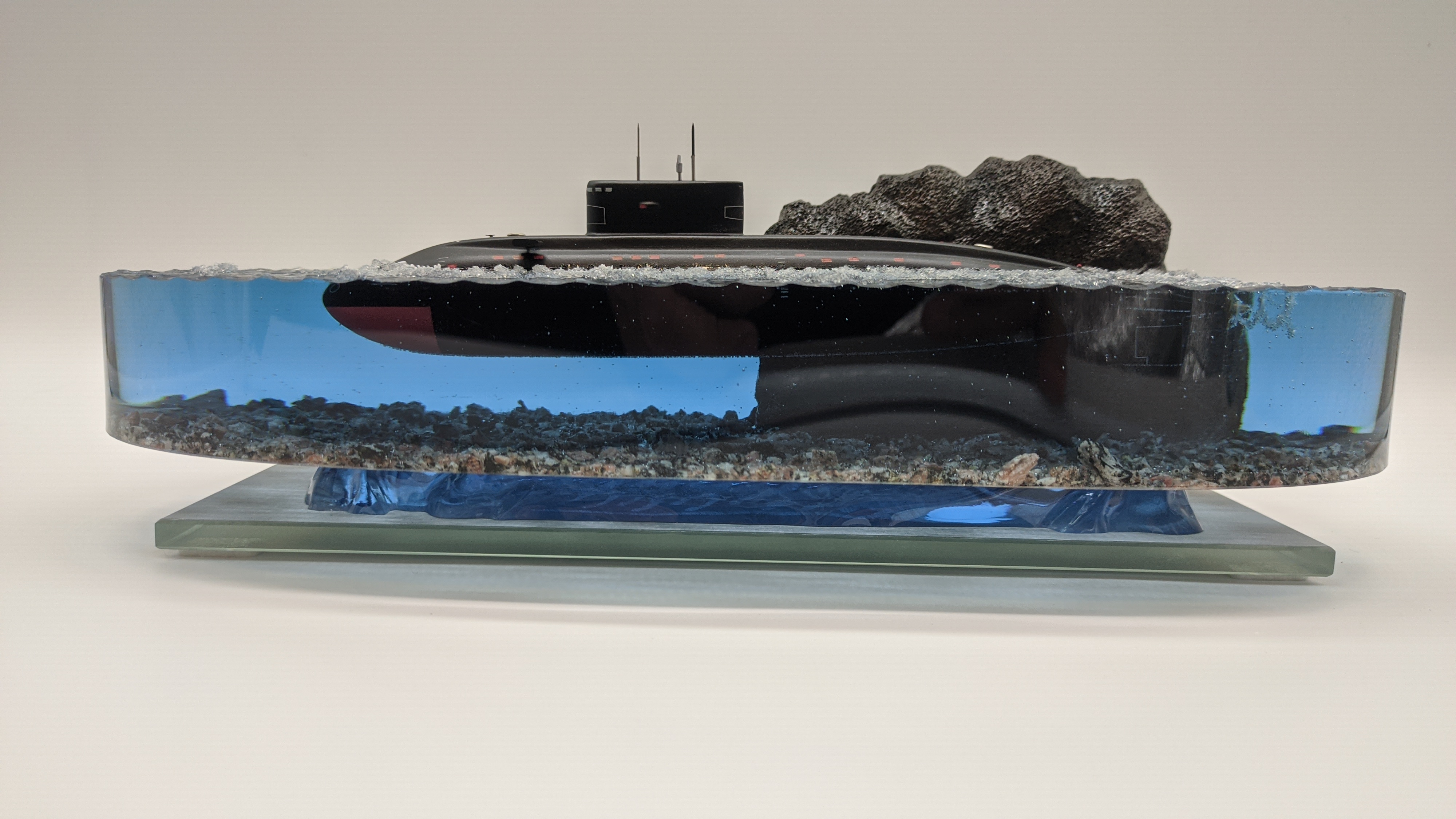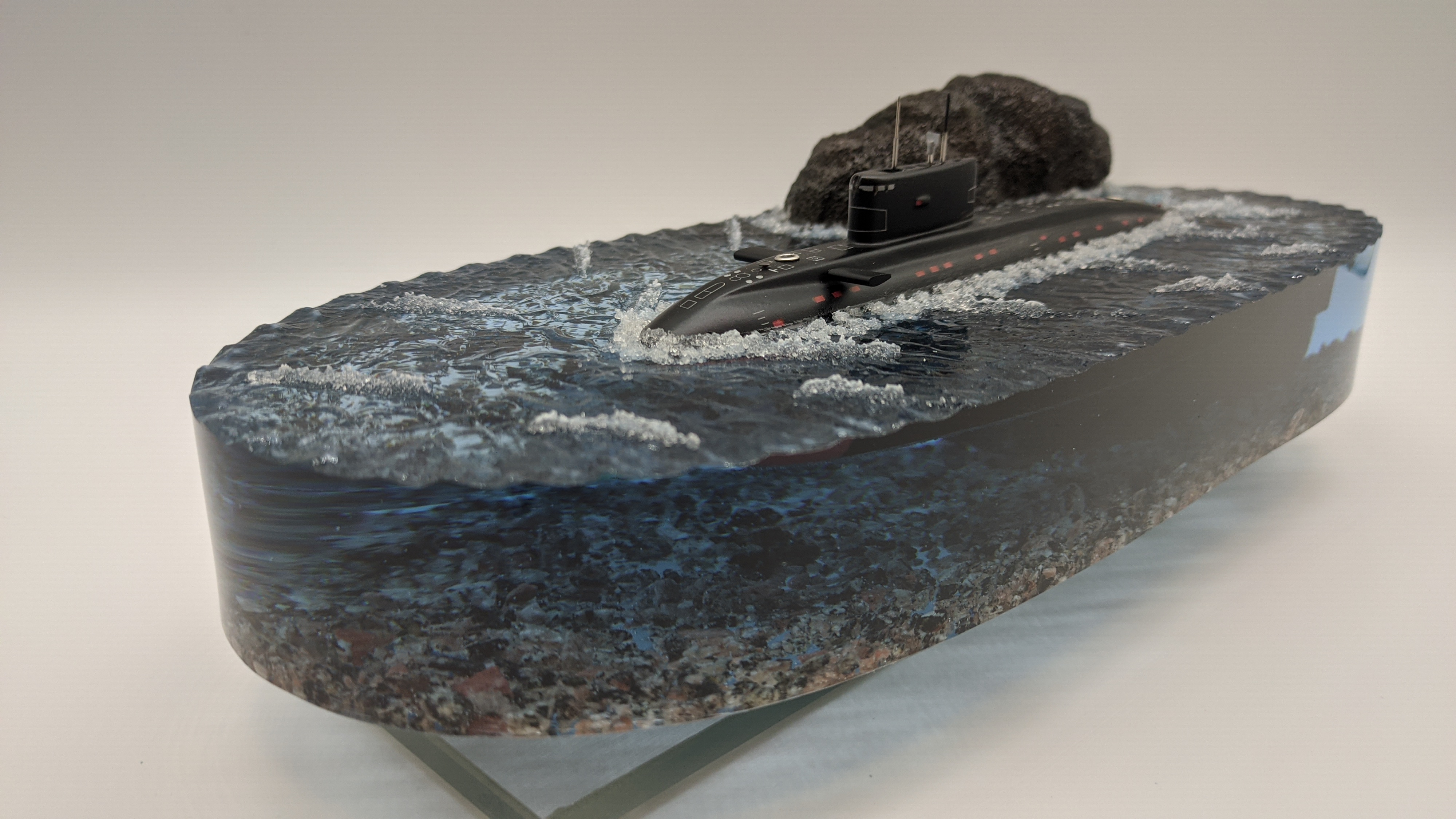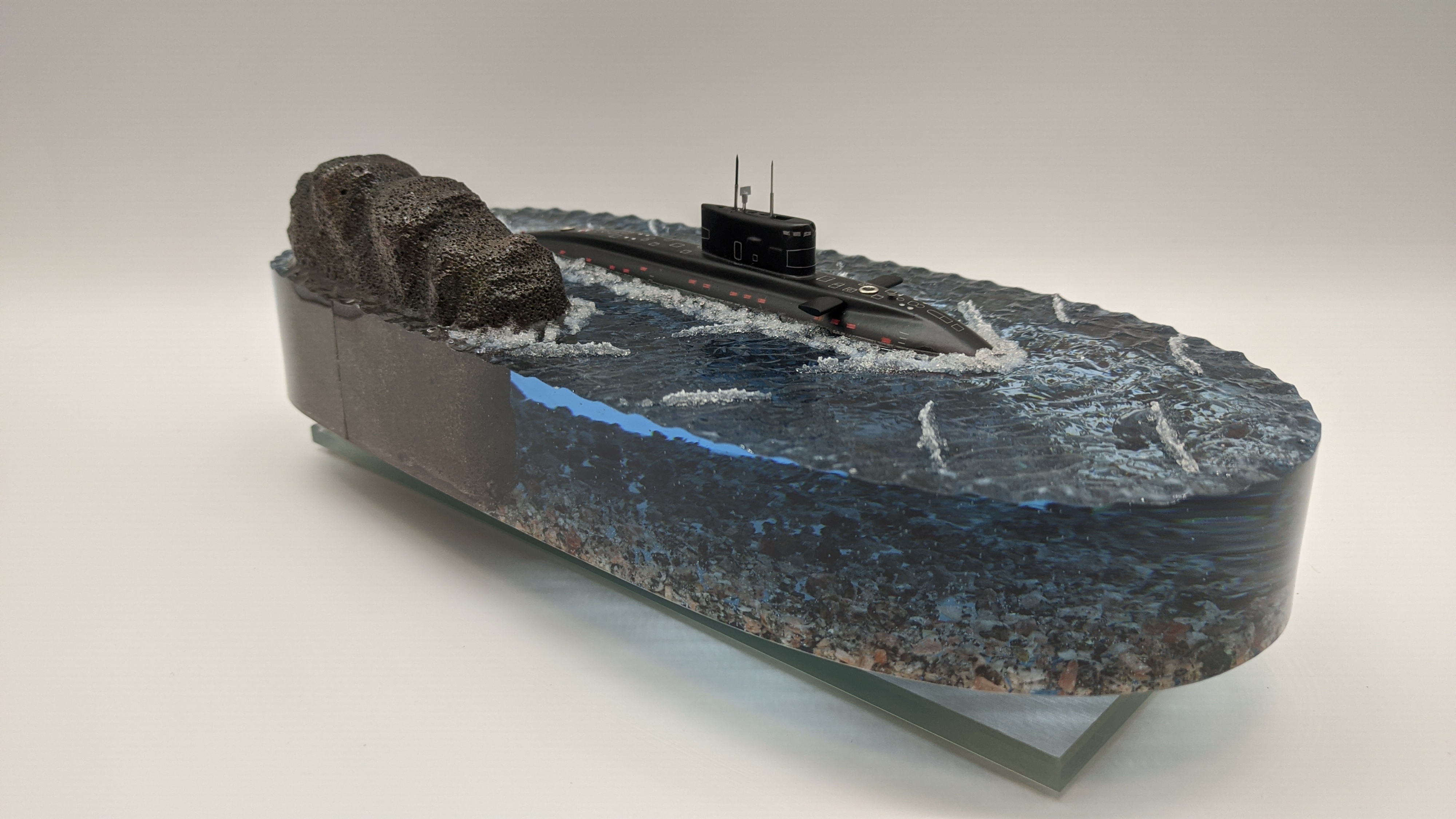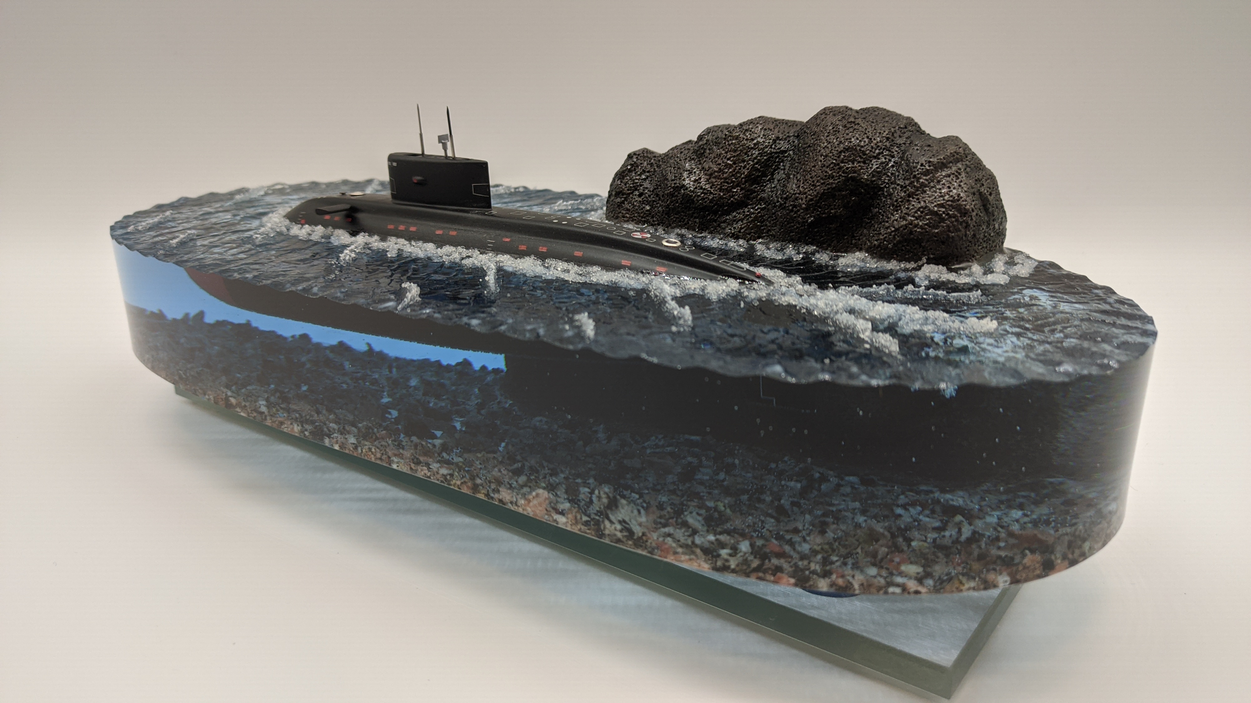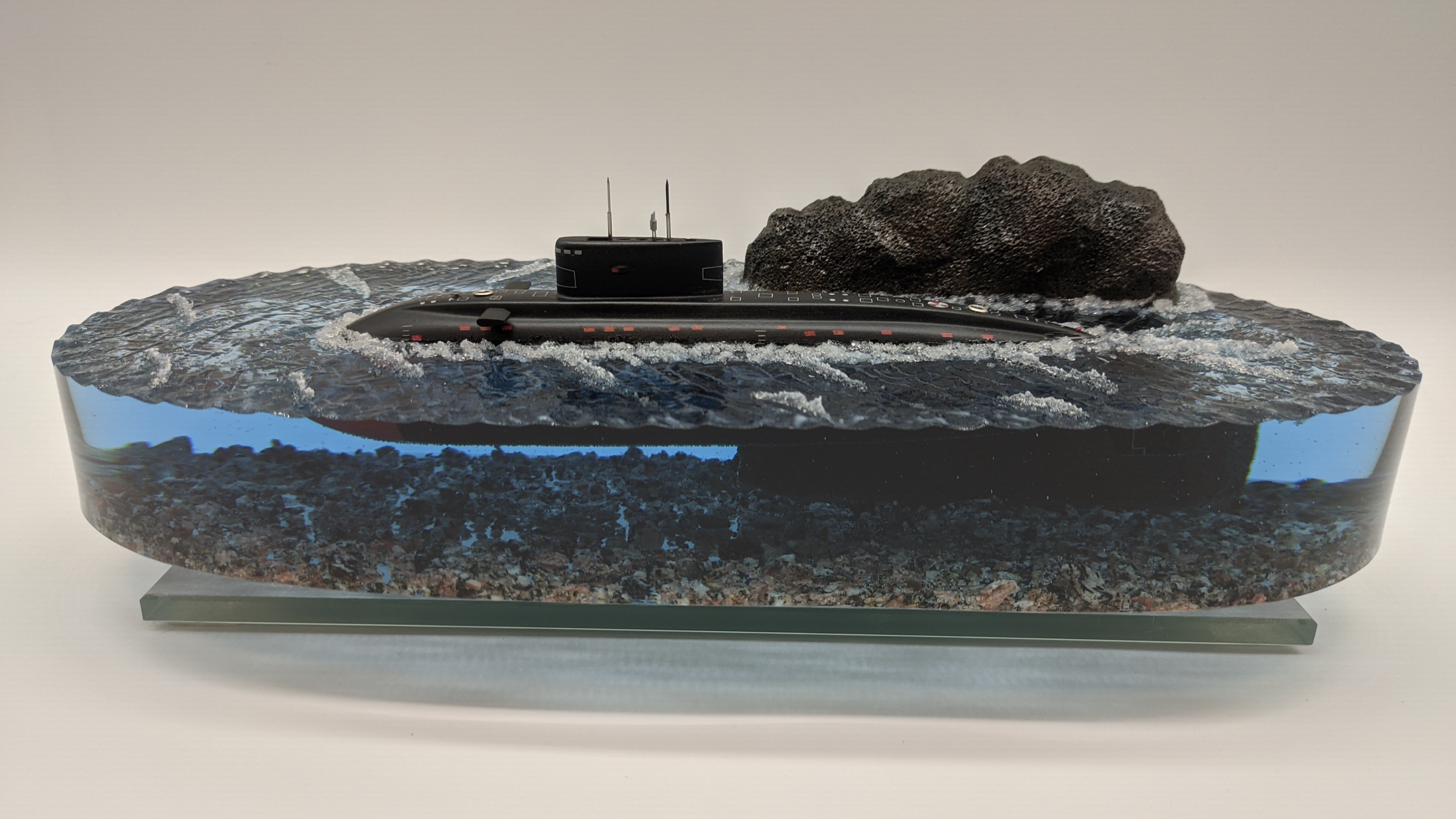 Подводная лодка "Варшавянка" Дно диорамы из натуральной гранитной крошки. Возможно добавление подсветки с питанием от аккумулятора и управлением с пульта (+3000р.)