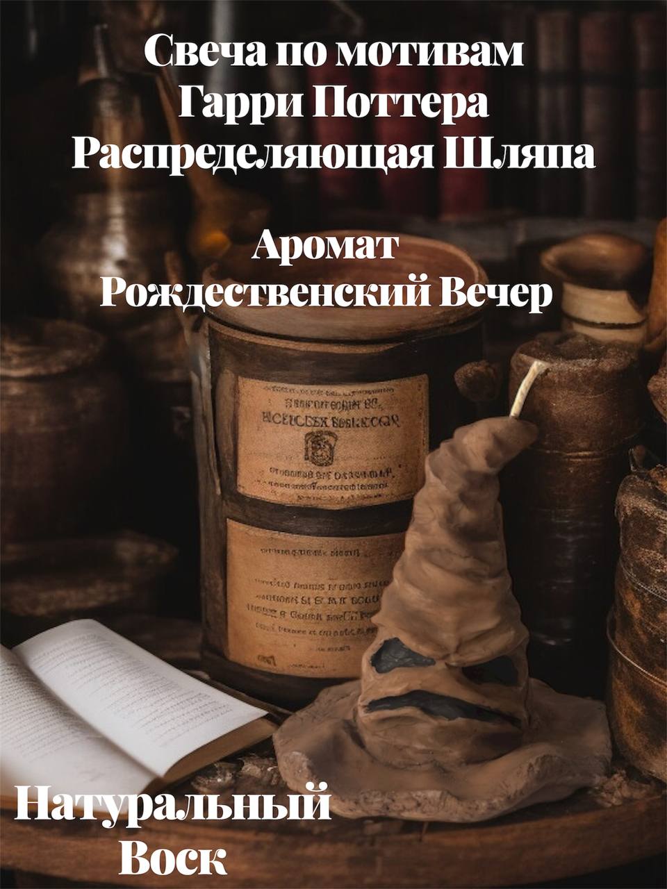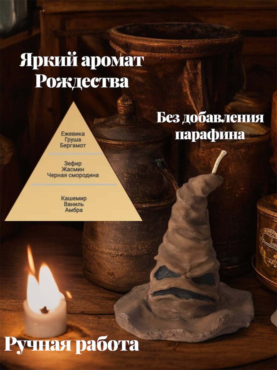 Свеча «Распределяющая Шляпа» с ароматом «Рождественский Вечер» — это магия уюта, тепла и праздничного волшебства, скрытая в форме легендарной шляпы, что веками определяла судьбы юных волшебников.
