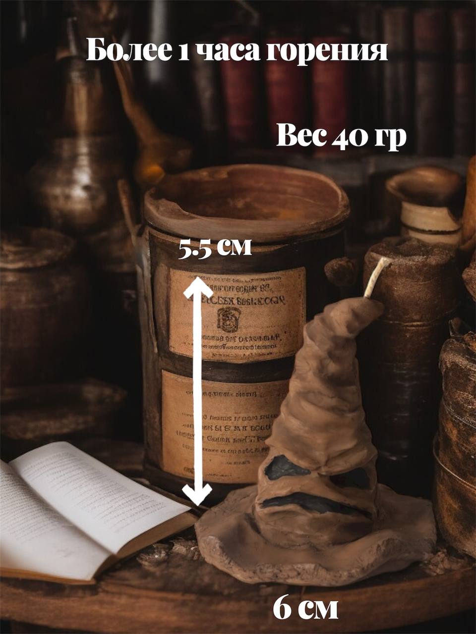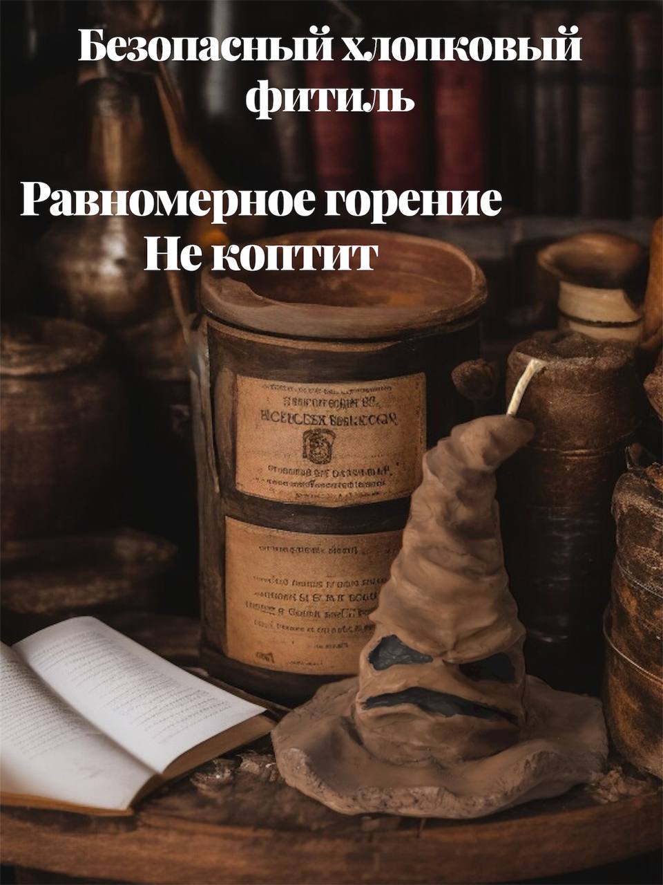 Хлопковый фитиль создаёт живое, трепетное пламя — будто дыхание самой Шляпы, которая тихо шепчет ваше предназначение в новогоднюю ночь.