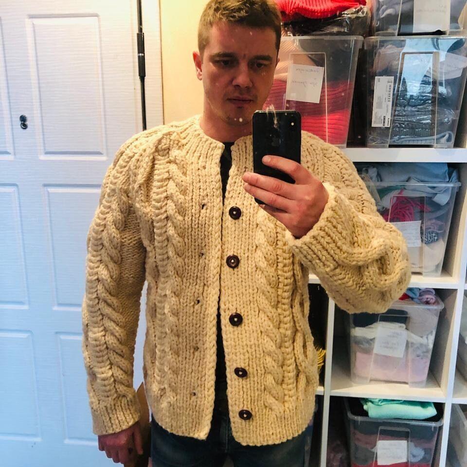Теплый мужской кардиган из полушерсти.