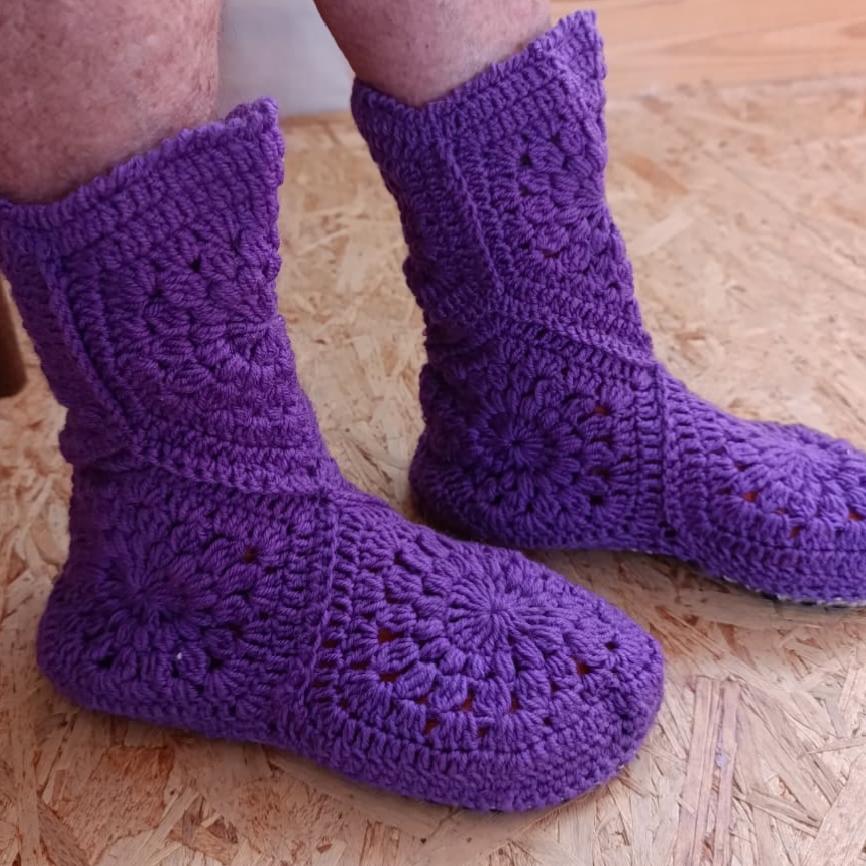 Такие уютные домашние тапочки годятся для всех членов семьи: для мужчин, женщин, детей и особенно для пожилых дедушек и бабушек. Ноги всегда находятся в теплых тапочках- сапожках, похожих на носки или гольфы.