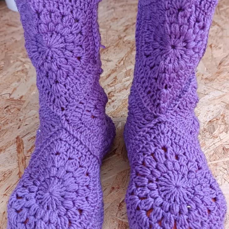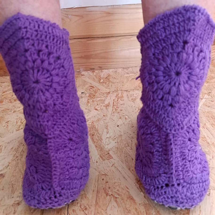Тапочки можно вязать высокие - сапожками и короткие - ботиночками. Стелька внутри войлочная.