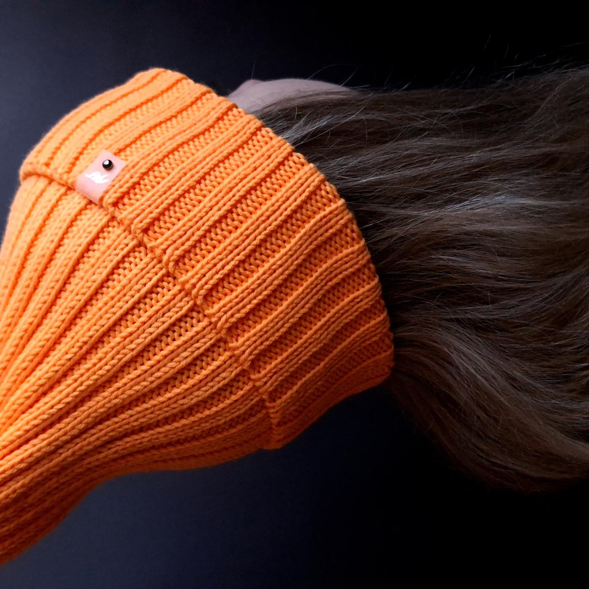 Шапка с удлинённой макушкой. 100% меринос, Италия. Обхват головы 56-58 см. Цвет: апельсин.
