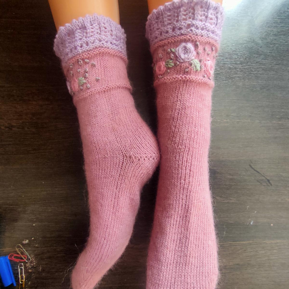 Носки ручной работы выполнены из пряжи в составе которой 65 % хлопок и 35% шерсть. Мягкие, теплые стильные.  С оригинальной вышивкой.