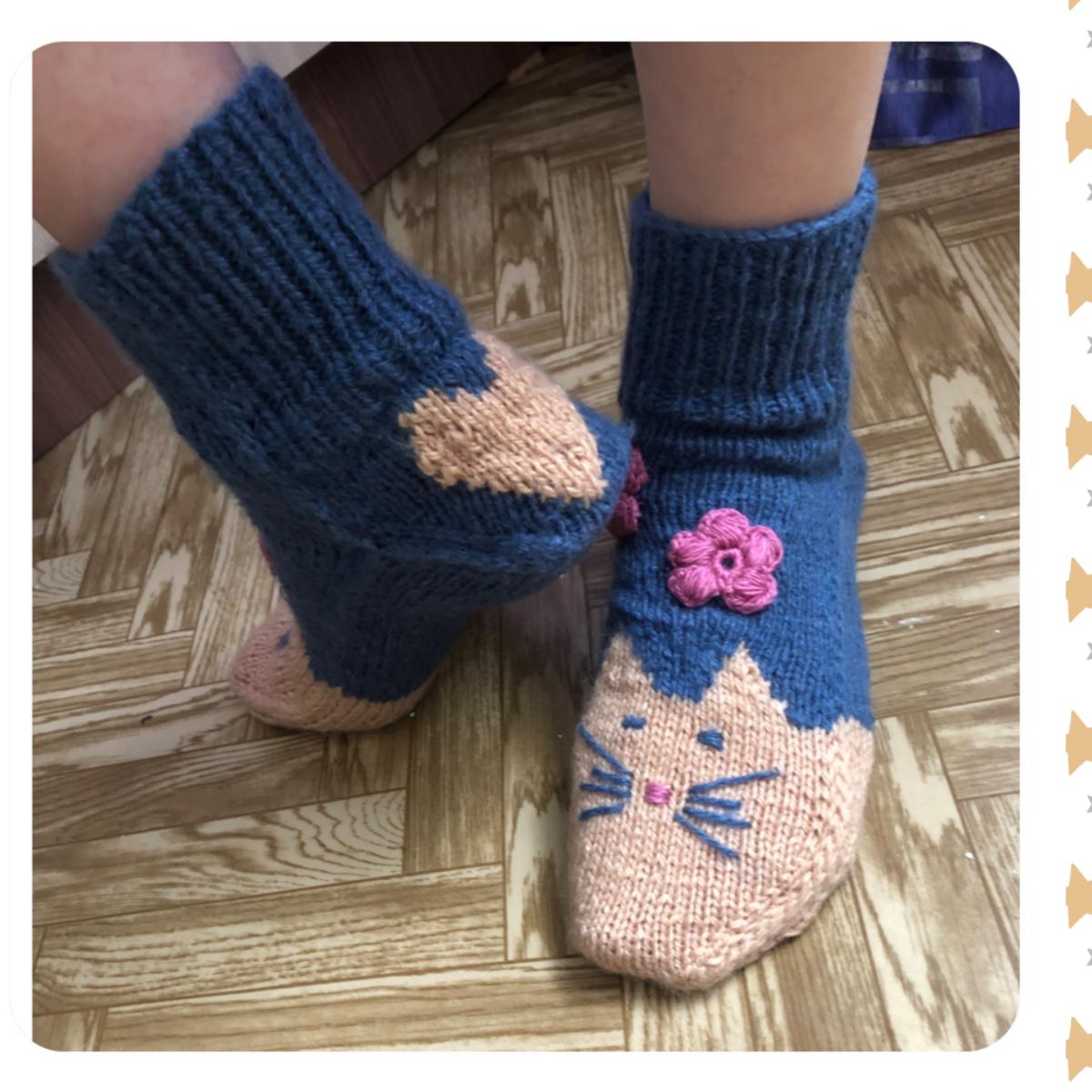 Носки ручной работы серые из 50% шерсти,50% акрила.