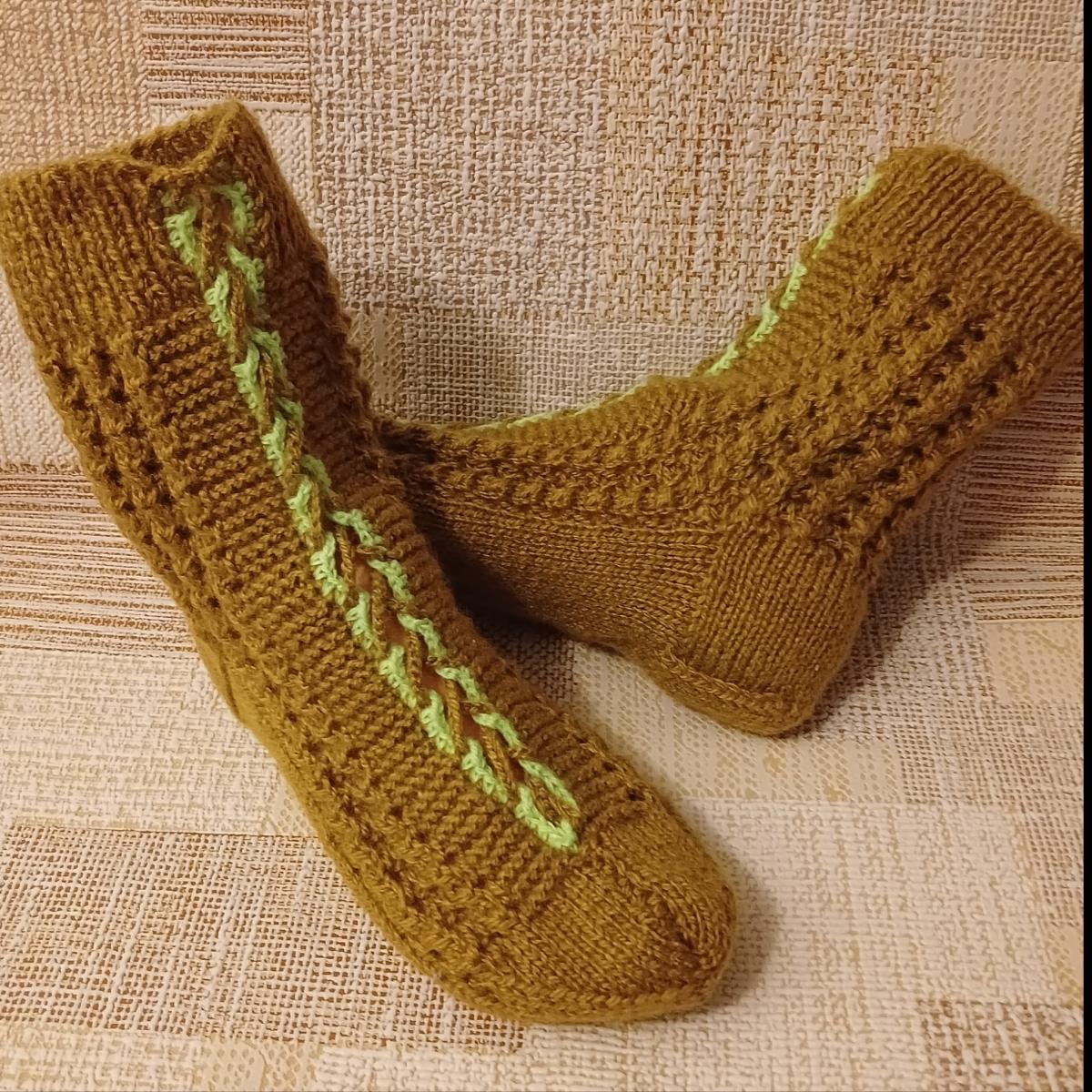 Носки ручной работы горчичного цвета из пряжи 50% шерсти,50% акрила