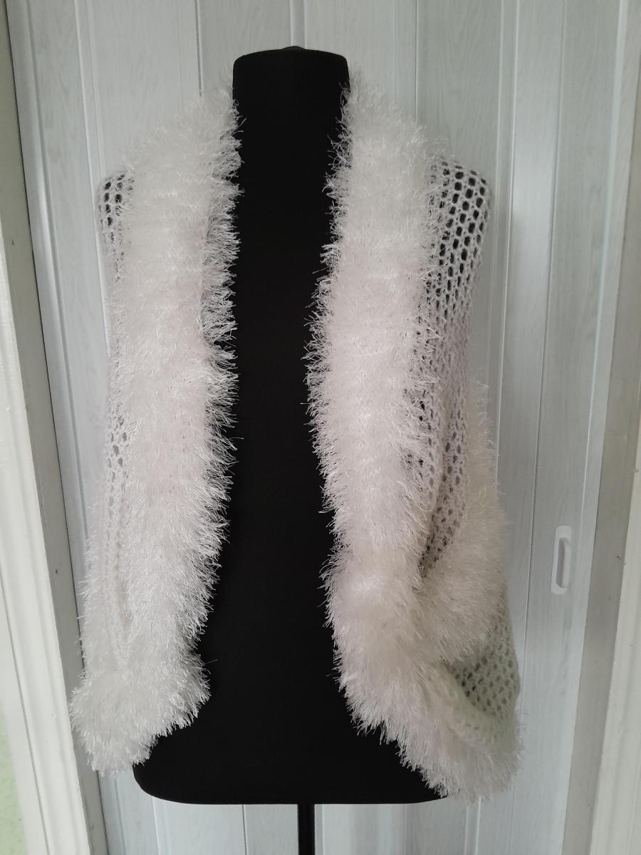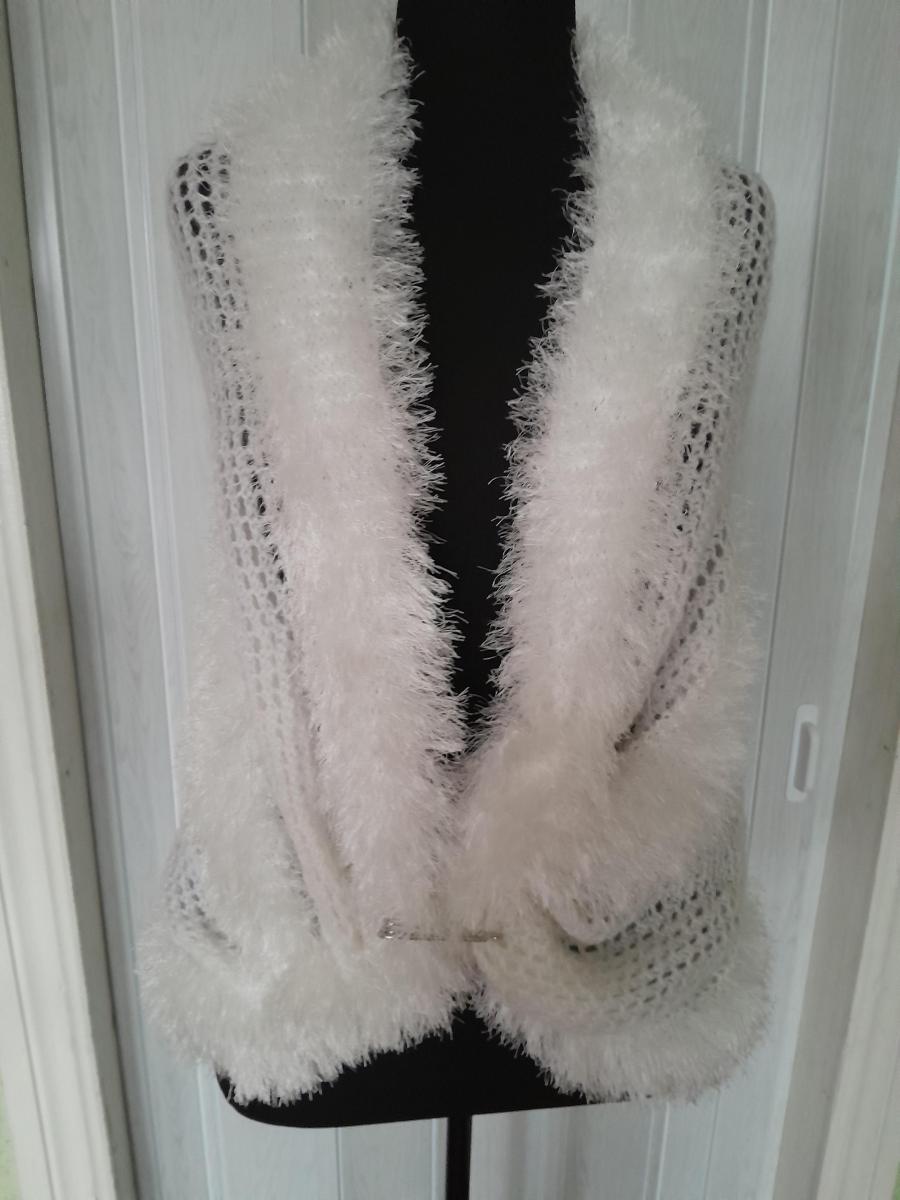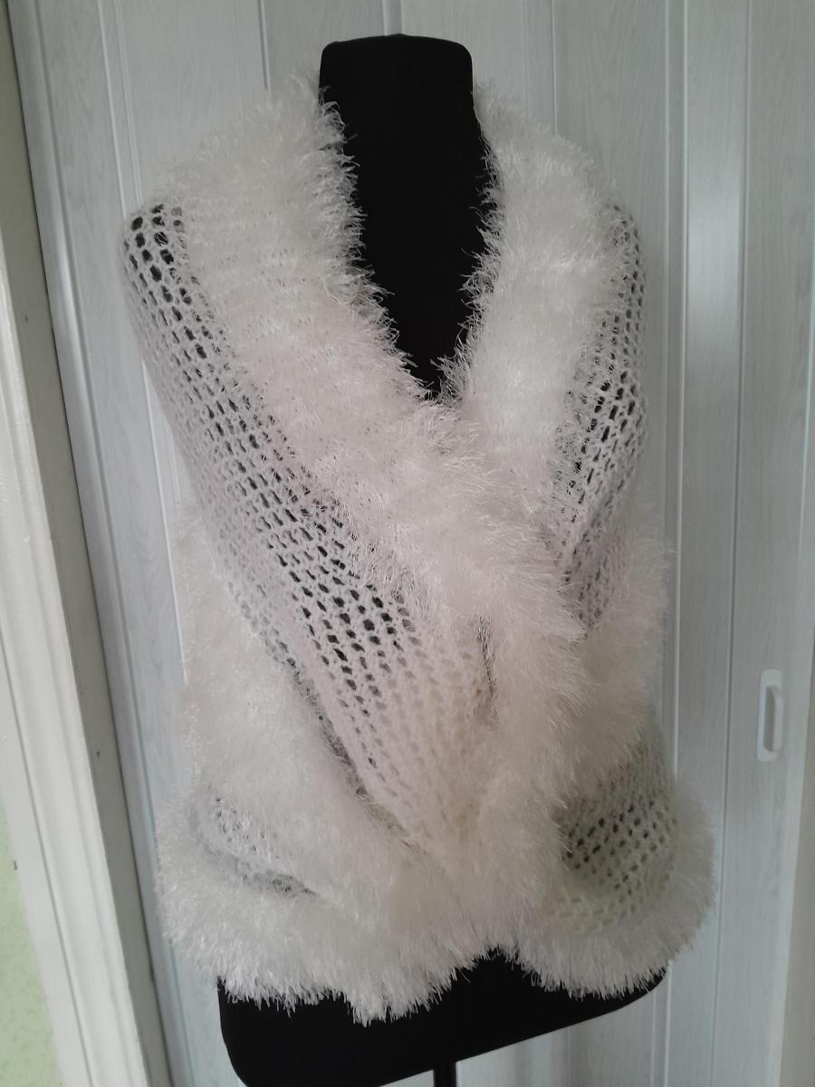 Палантин ручная работа, связан спицами из полушерсти и пряжи травка. У вас ожидается важное событие в жизни,свадьба,а на улице довольно прохладно,этот палантин не только согреет,но и внесёт элегантную нотку в ваш образ.