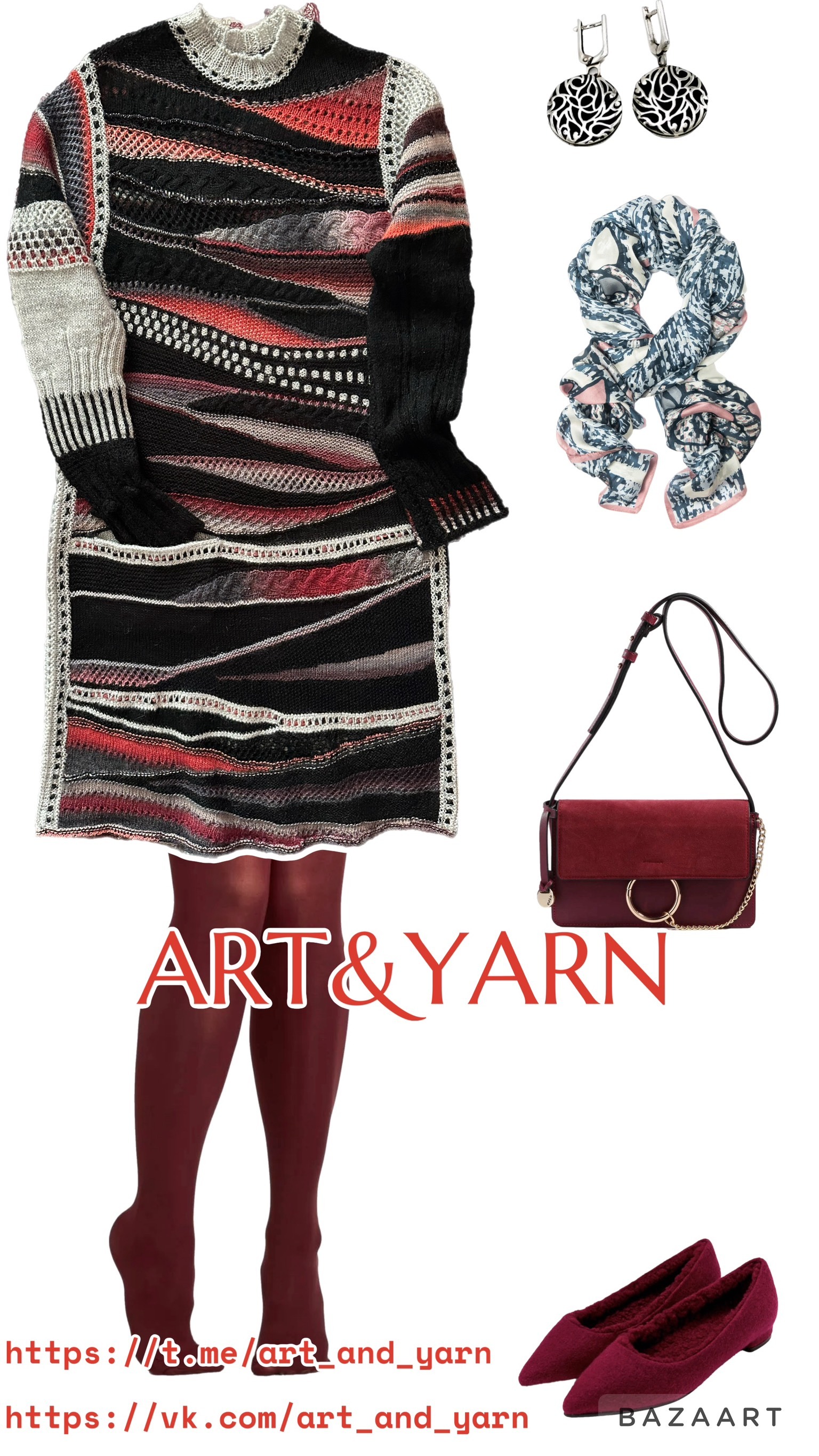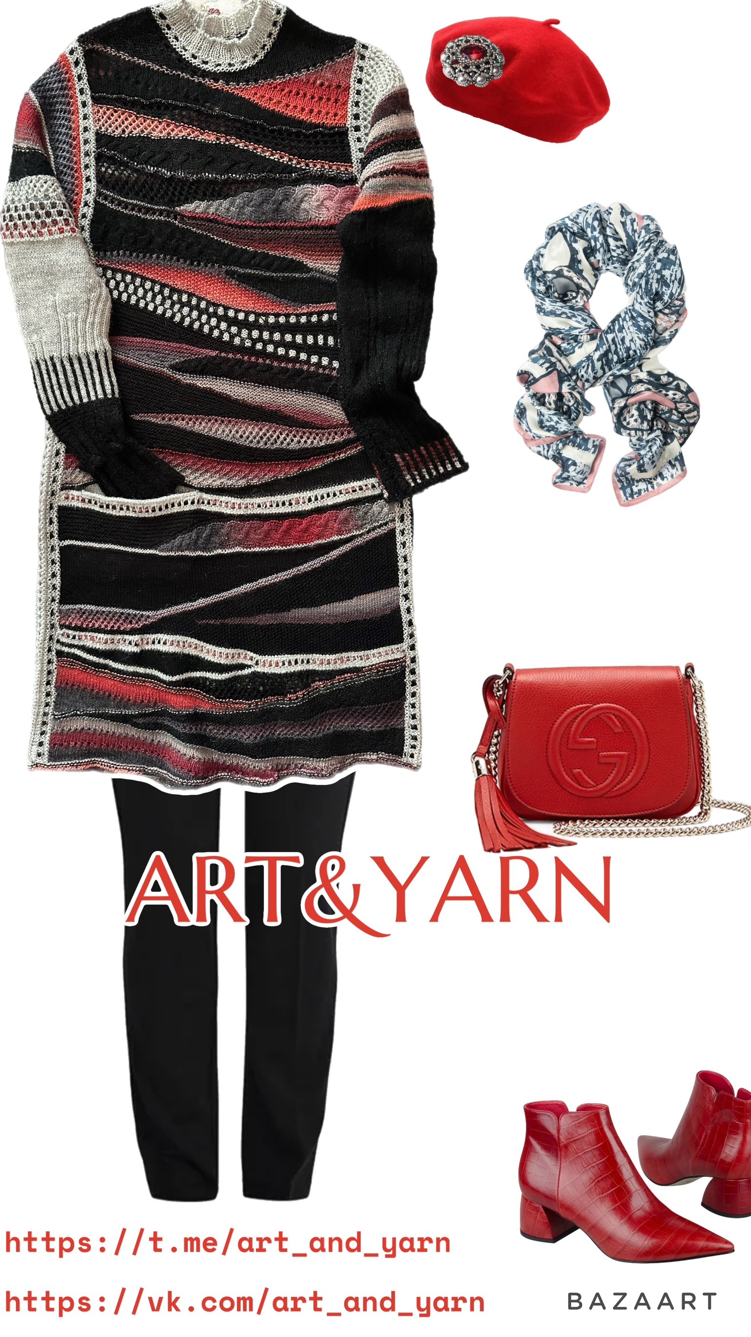 Выполнена из премиальной пряжи итальянского производства (альпака, вискоза, бобинный мохер, меринос), декорирована лентами из индийского шелка, используемого в производстве сари.
