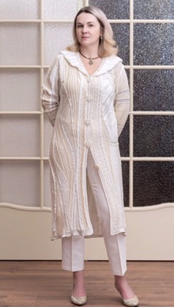 Представь прохладный летний вечер... Ты наслаждаешься прогулкой, и этот кардиган нежно согревает тебя благодаря натуральному составу пряжи. Итальянский шелк, хлопок и меринос – это роскошь и комфорт в одном изделии. А элегантный капюшон, плотно прилегающий к голове, защитит от прохладного бриза и добавит изысканности твоему образу.