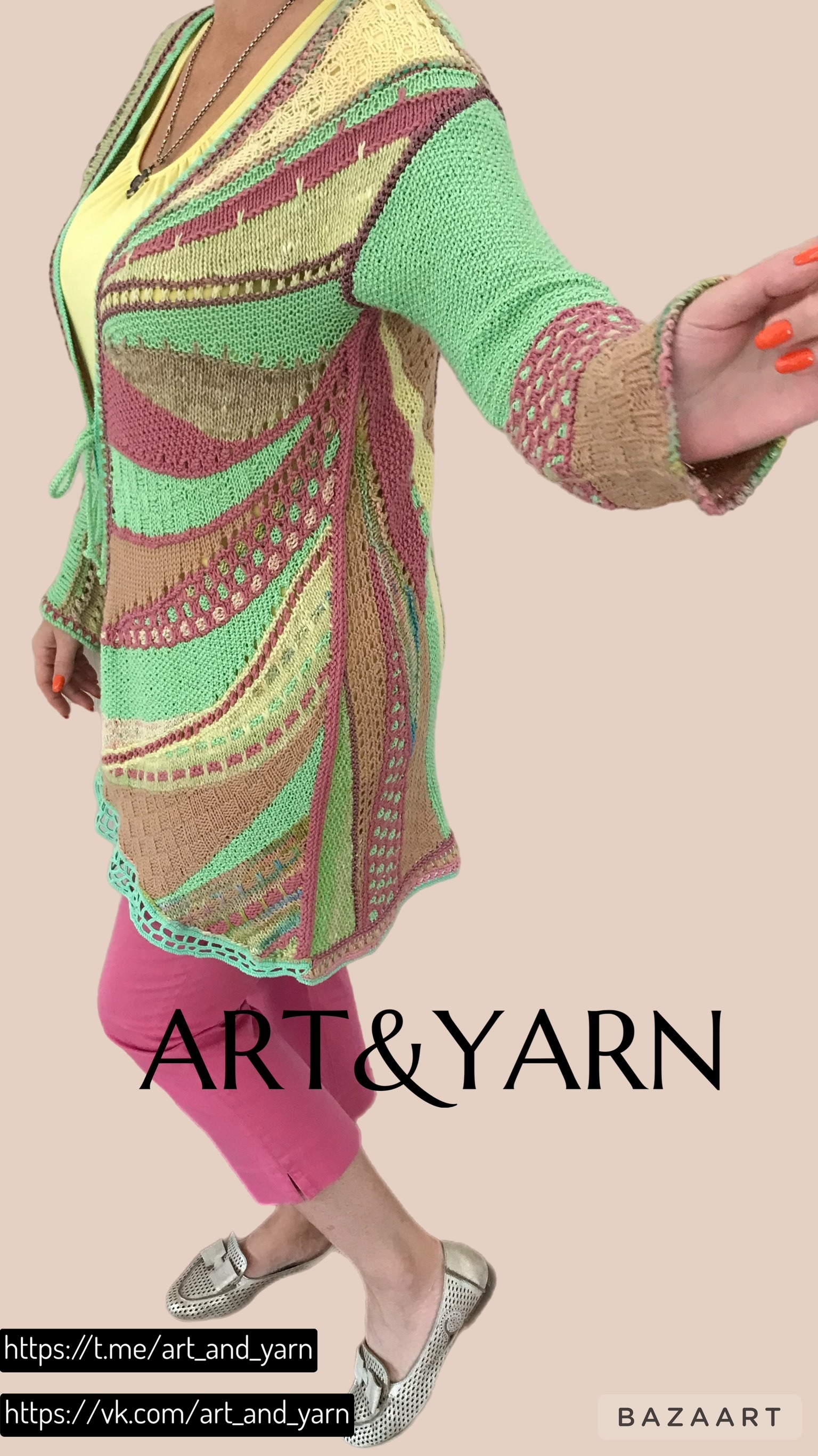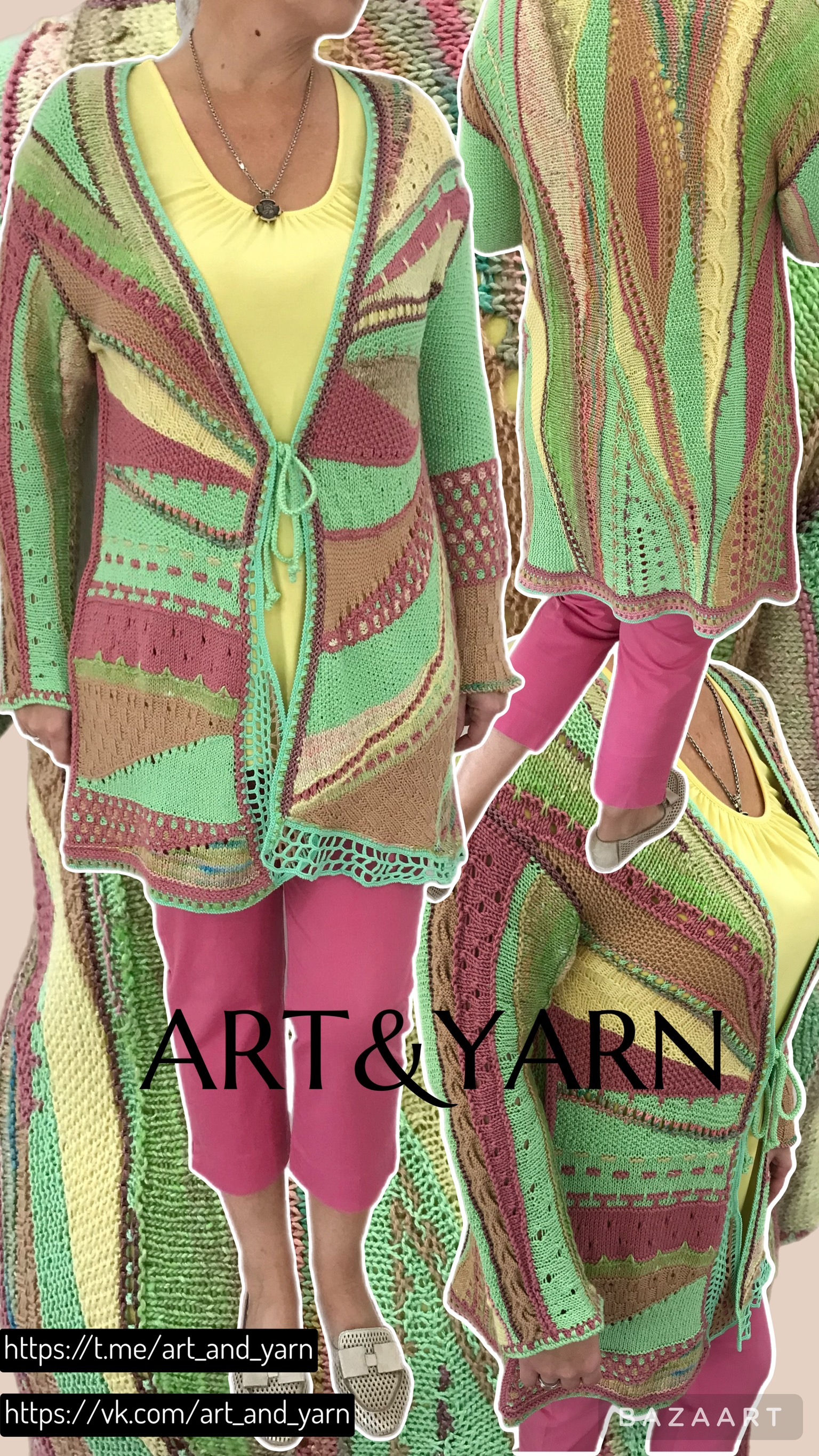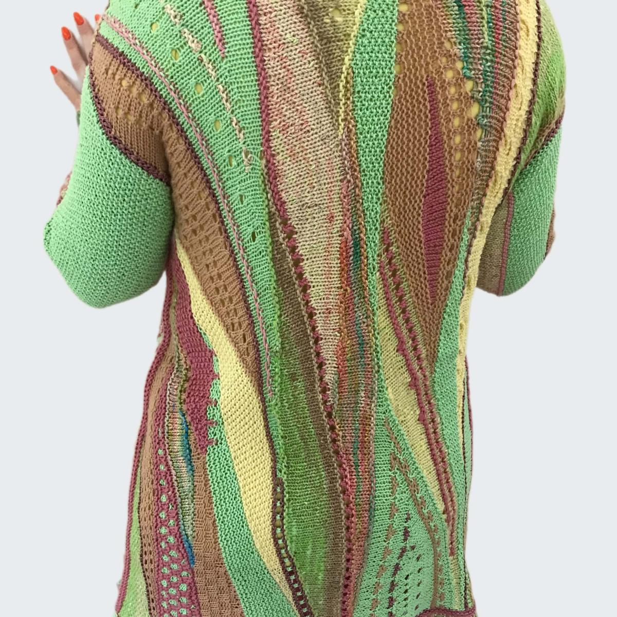 (!)Летний кардиган-жакет "НЕЖНОЕ ЛЕТО" — ваш идеальный спутник для теплых дней и прохладных вечеров. Созданный вручную из натурального шелка, вискозы, хлопка и мериноса, он дарит ощущение комфорта и нежности на коже. Благодаря технике freeformknitting - уникален и неповторим.