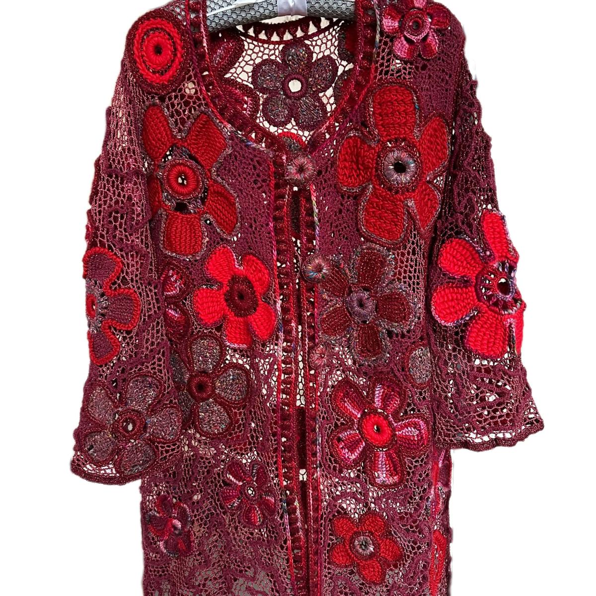 Представляю вам уникальный женский жакет-кардиган слегка трапециевидного фасона, который станет жемчужиной вашего гардероба. Этот винтажный шедевр, связанный вручную из натуральной пряжи премиум качества, существует в единственном экземпляре. В его изготовлении использованы шелк, вискоза и мериносовая пряжа, что придает изделию невероятную мягкость и комфорт.