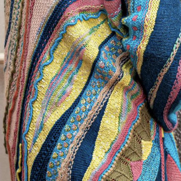 Связан вручную из натуральной пряжи высшего качества: альпака, мохер, шелк, кашемир, хлопок и вискоза. Этот джемпер не только потрясающе выглядит, но и обладает необычайной мягкостью и теплотой. Декорированный люрексом, он напоминает своими красками и орнаментом итальянские карнавалы, добавляя нотку волшебства в ваш образ.