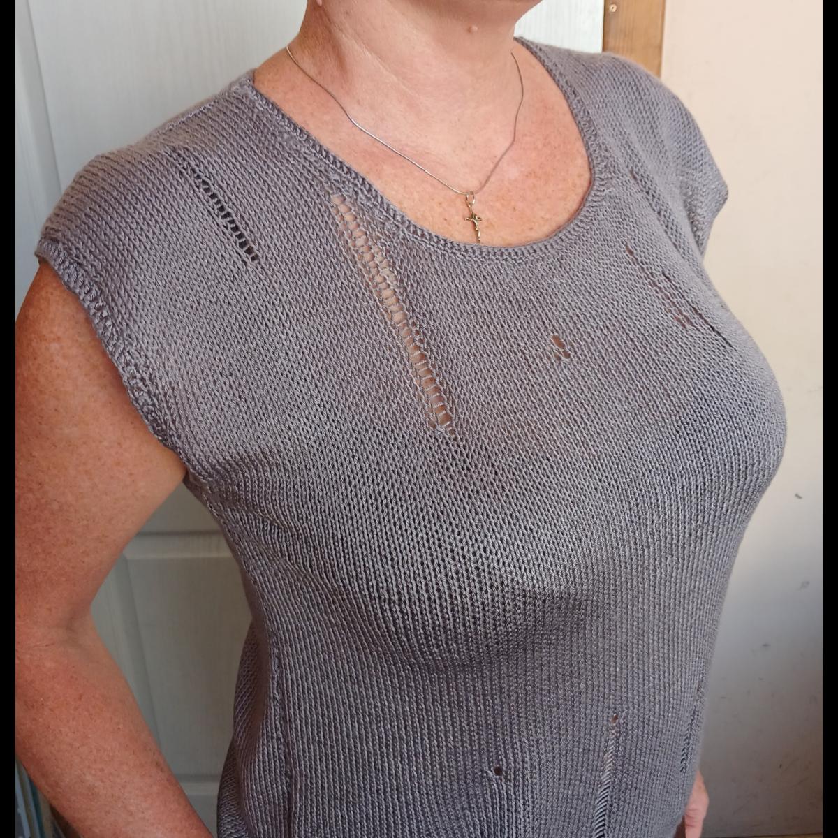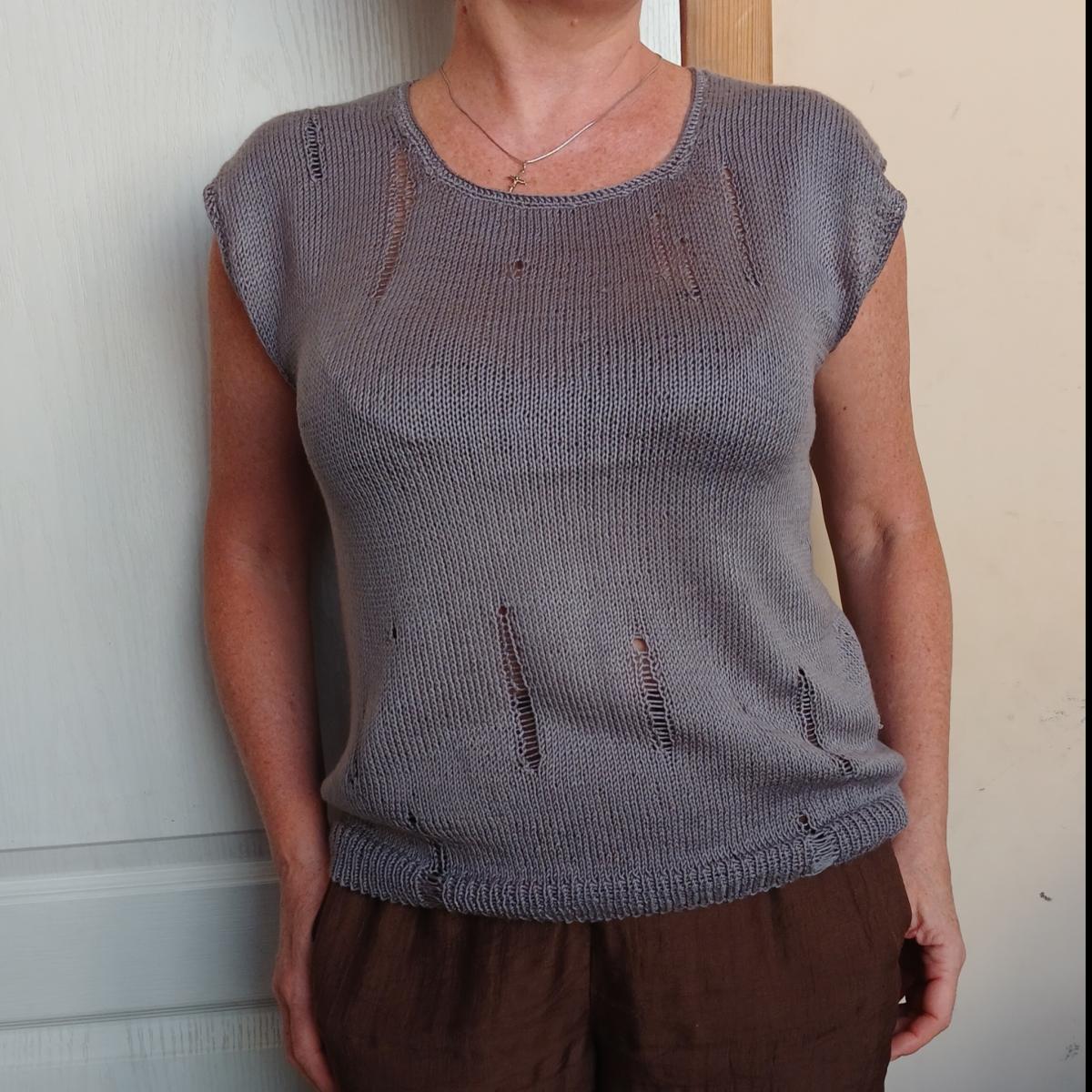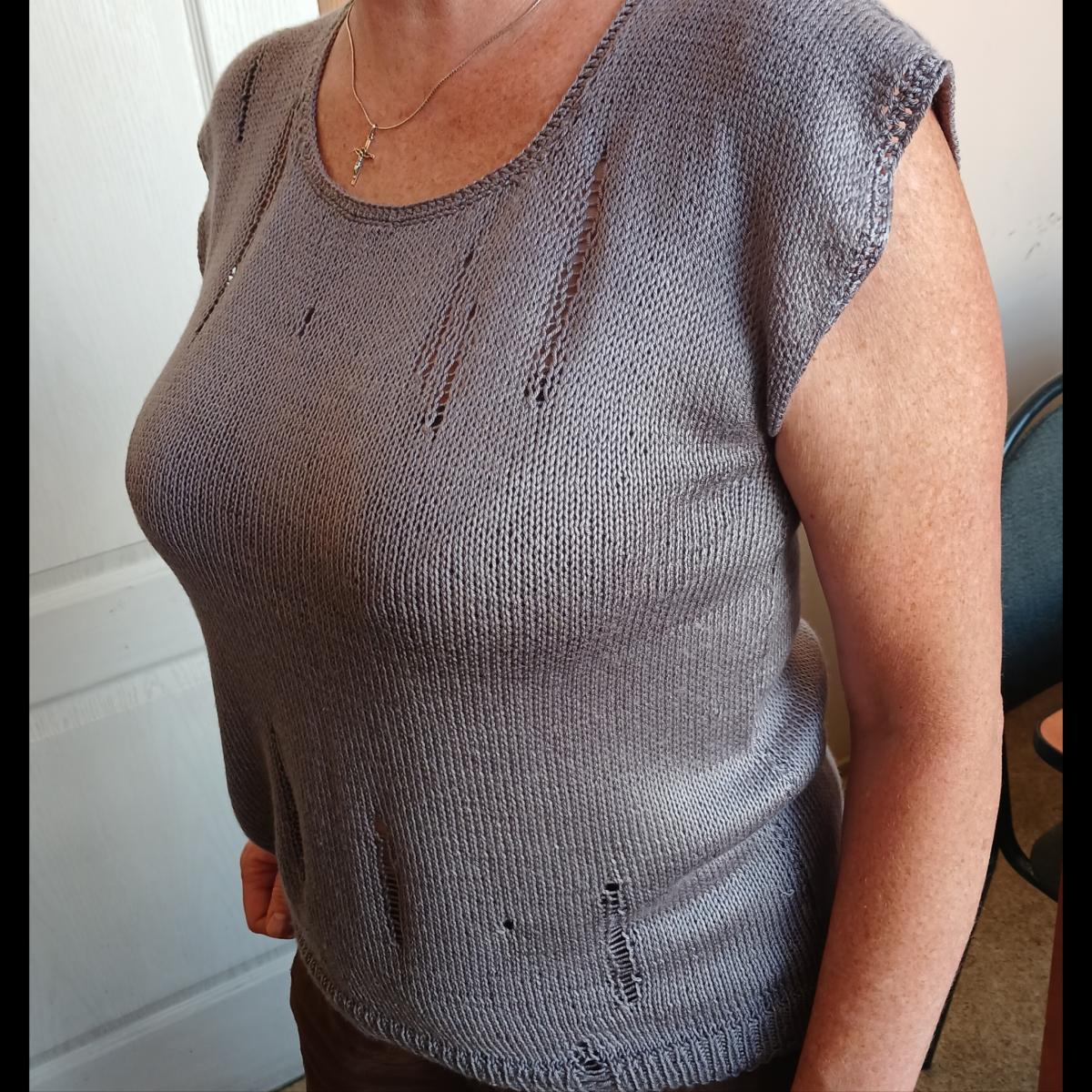 Блузка с коротким рукавом ручной работы из пряжи микрофибра.Пряжа лёгкая,шелковистая,приятная к телу.Не тянется.