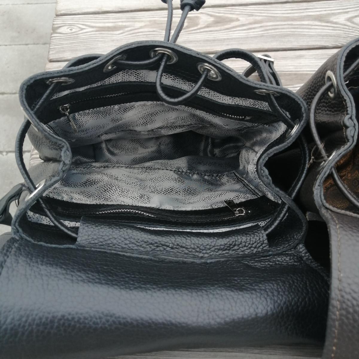 Женский рюкзак из натуральной кожи небольшого размера с двумя внутренними карманами на молнии. Выполнен из плотной мягкой кожи. Подкладка из ткани. Городской рюкзак на каждый день. Лямки регулируются по длине. Закрываться рюкзак на шнурок и клапан на магните. Цвета:черный и темно коричневый