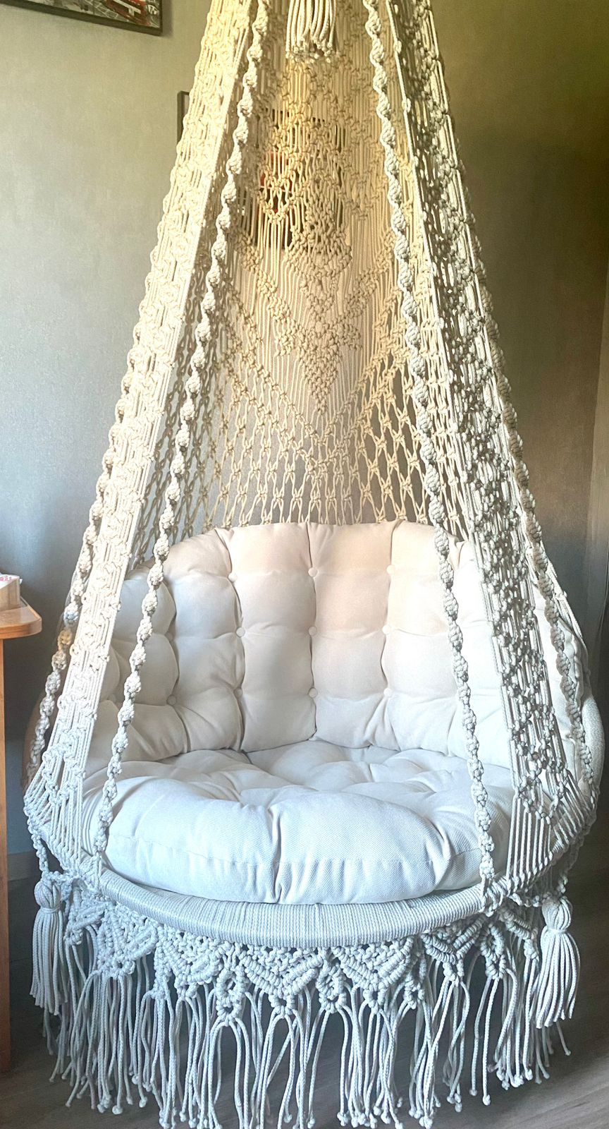 Подвесное кресло из высококачественного полиэфирного шнура с сердечником — идеальный выбор для отдыха на свежем воздухе.