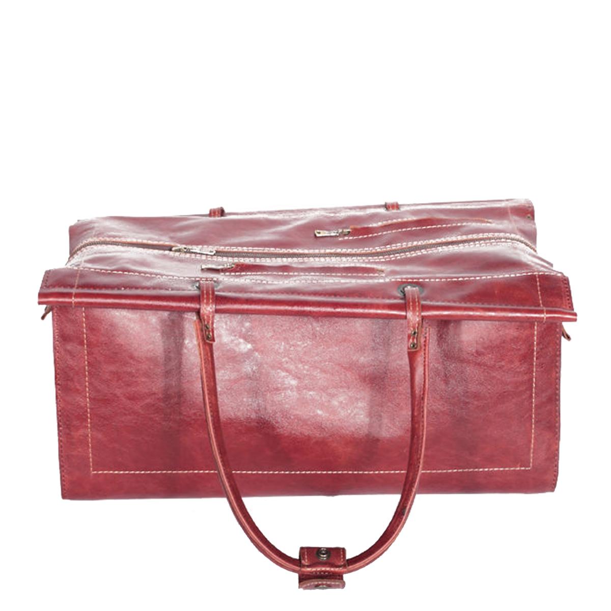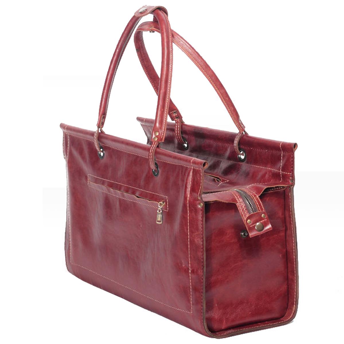 Цвет: бордовый (красно-коричневый). Размер сумки 500х250х200мм. Сумка имеет фасадный внешний карман,  на  молнии. В верхней части сумки имеются два оперативных кармана размером 460х80мм, на молнии. Основная молния - металлическая, концы молнии фиксируются на кнопки к торцам сумки.