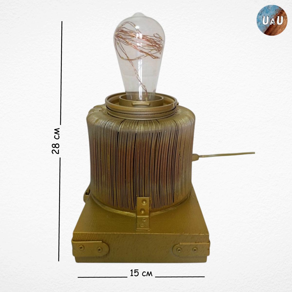 Светильник ручной работы "СССР" изготовлен из дерева и металла.