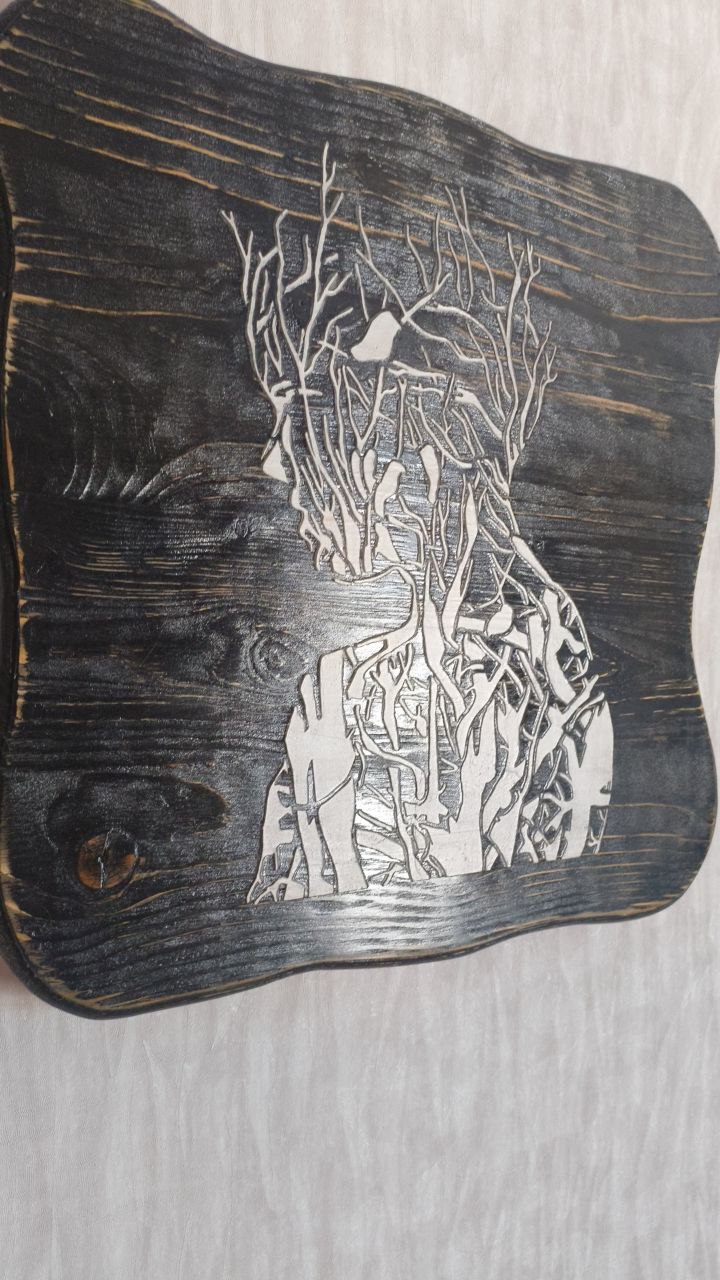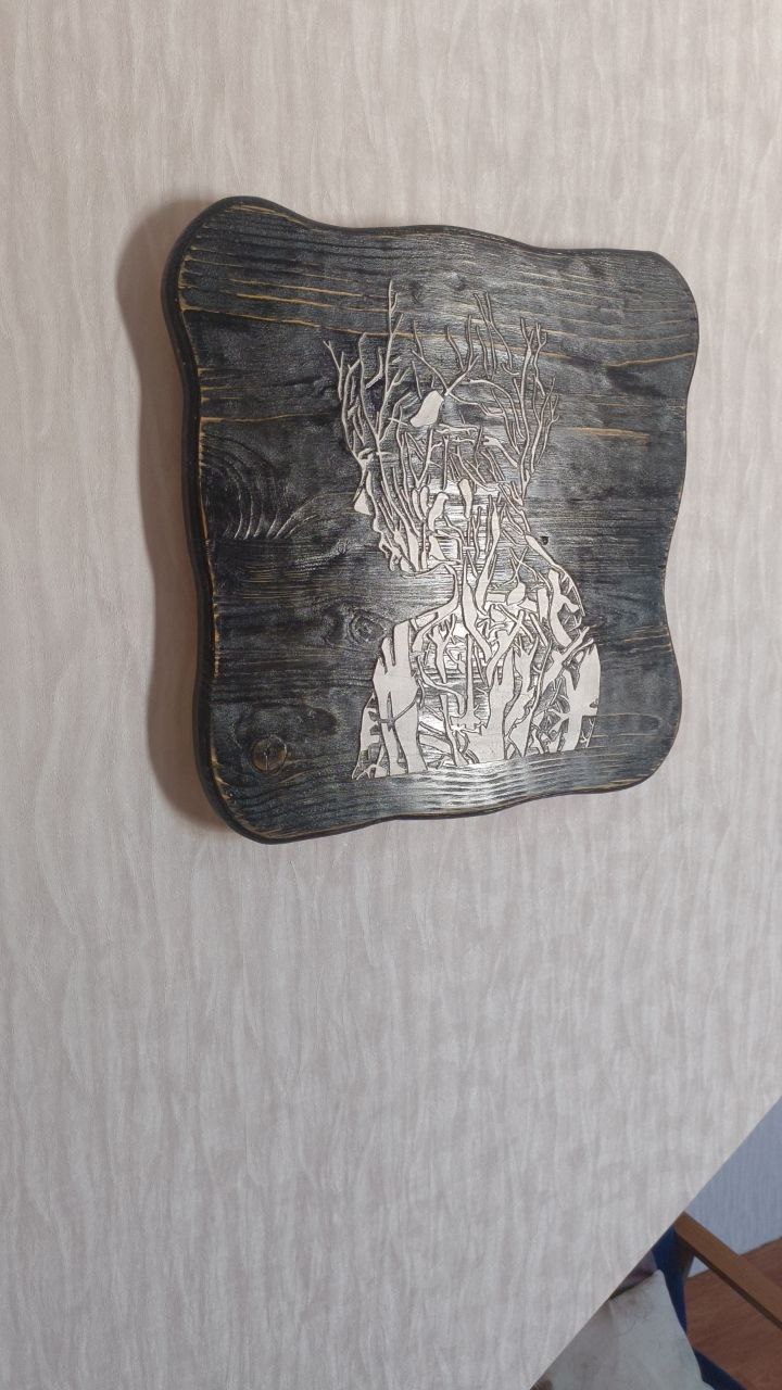 Панно из массива дерева сосна, структурная паста, под лаком