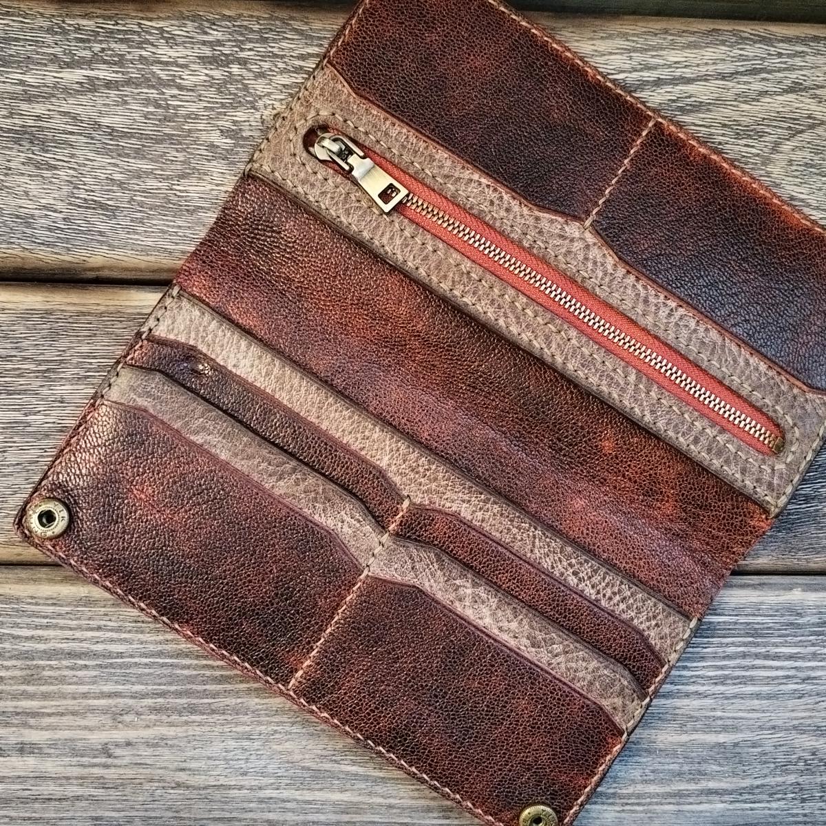 Натуральная кожа. Ручная работа, покраска, сборка. 8 карточек, два больших отделения + отделение на молнии. Паспорт поместится тоже. а также водительское удостоверение и много чего другого.