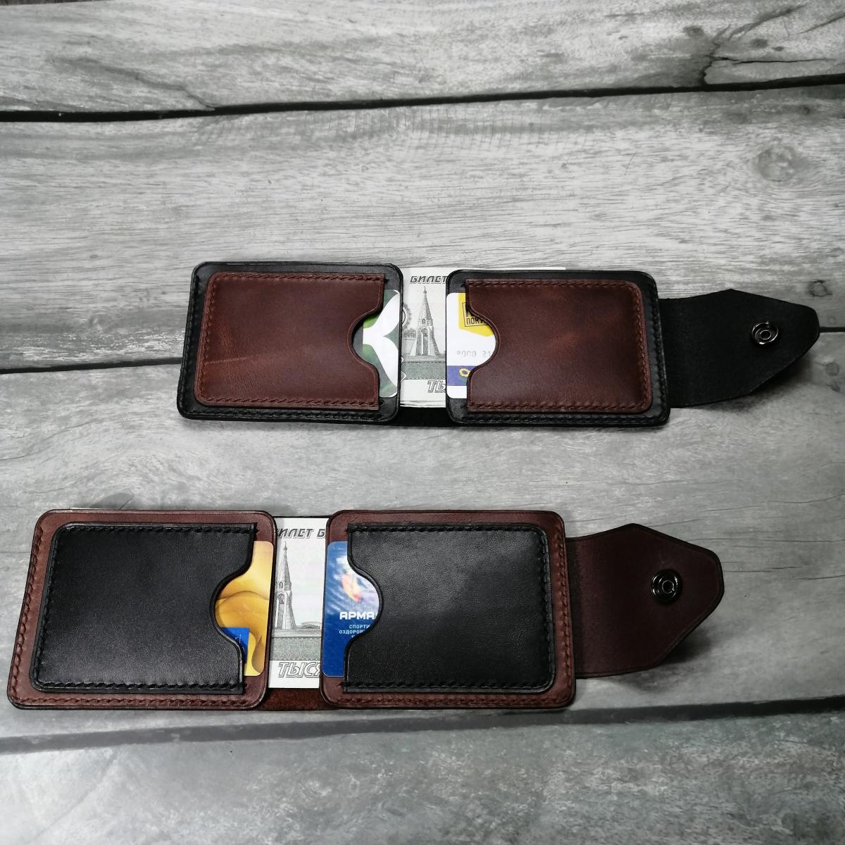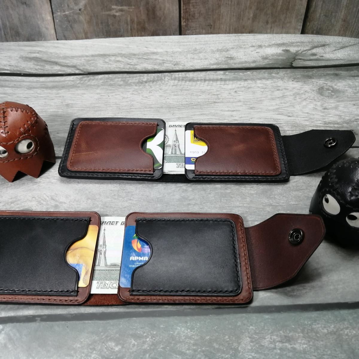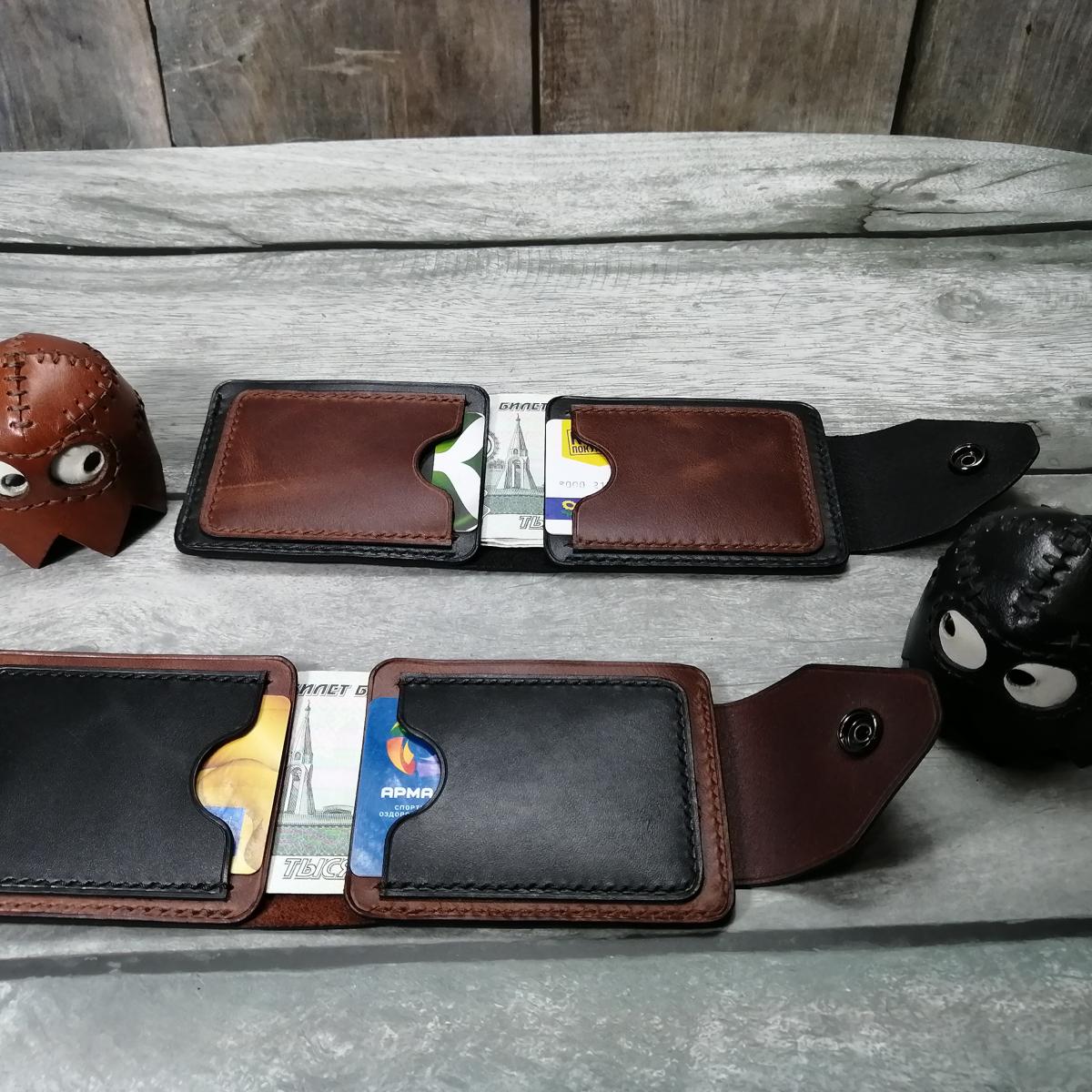 Кошелек из кожи.Компактная и удобная модель,стильный и удобный кошелек из натуральной кожи.Имеет 4 кармана для карт и очень легкий доступ к бумажным банкнотам.